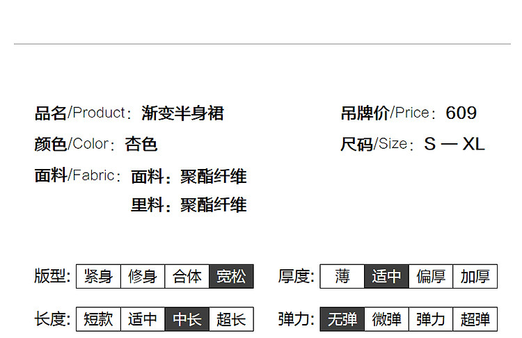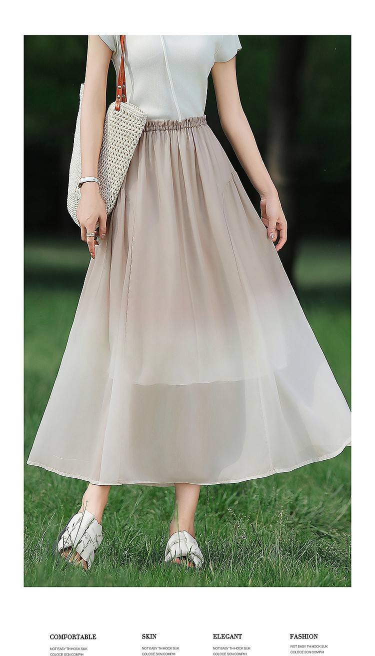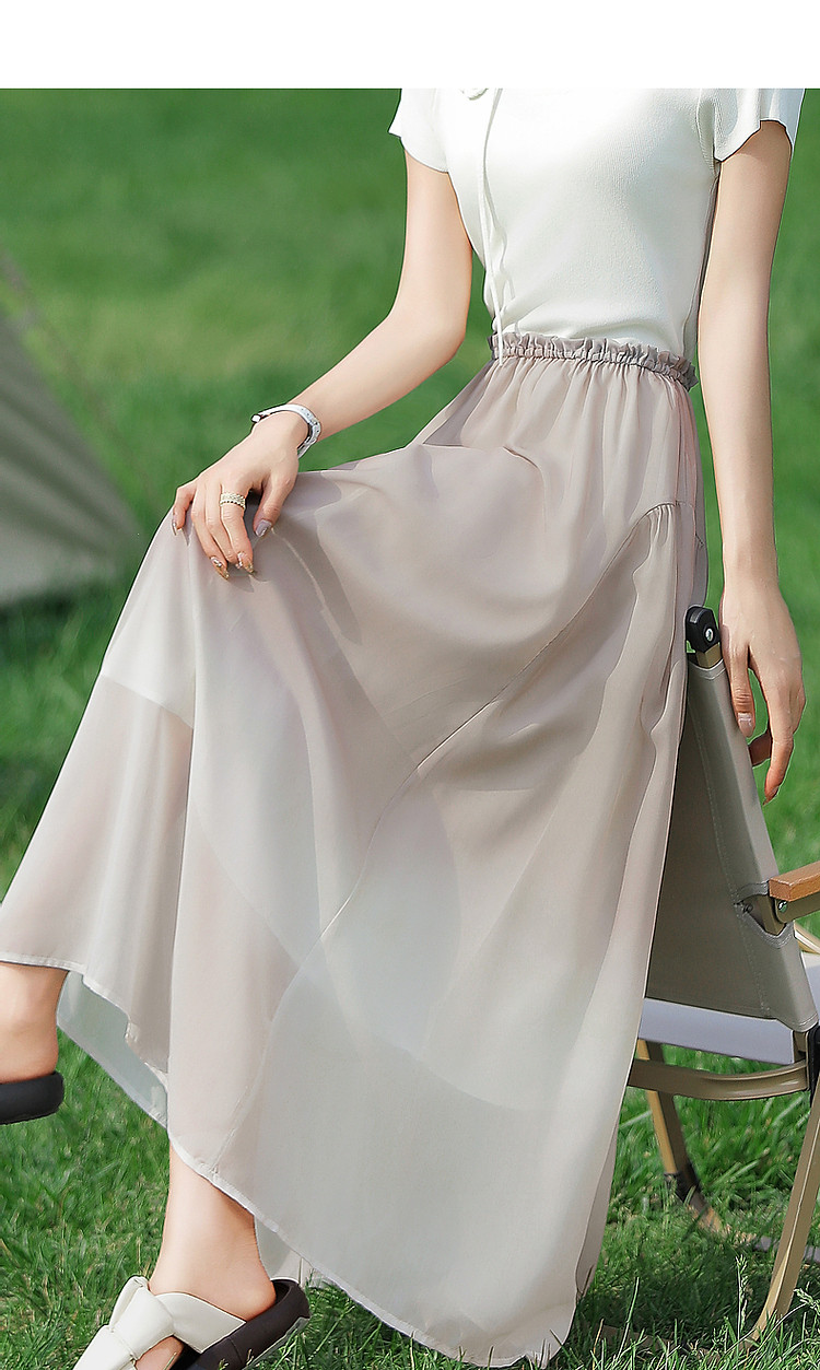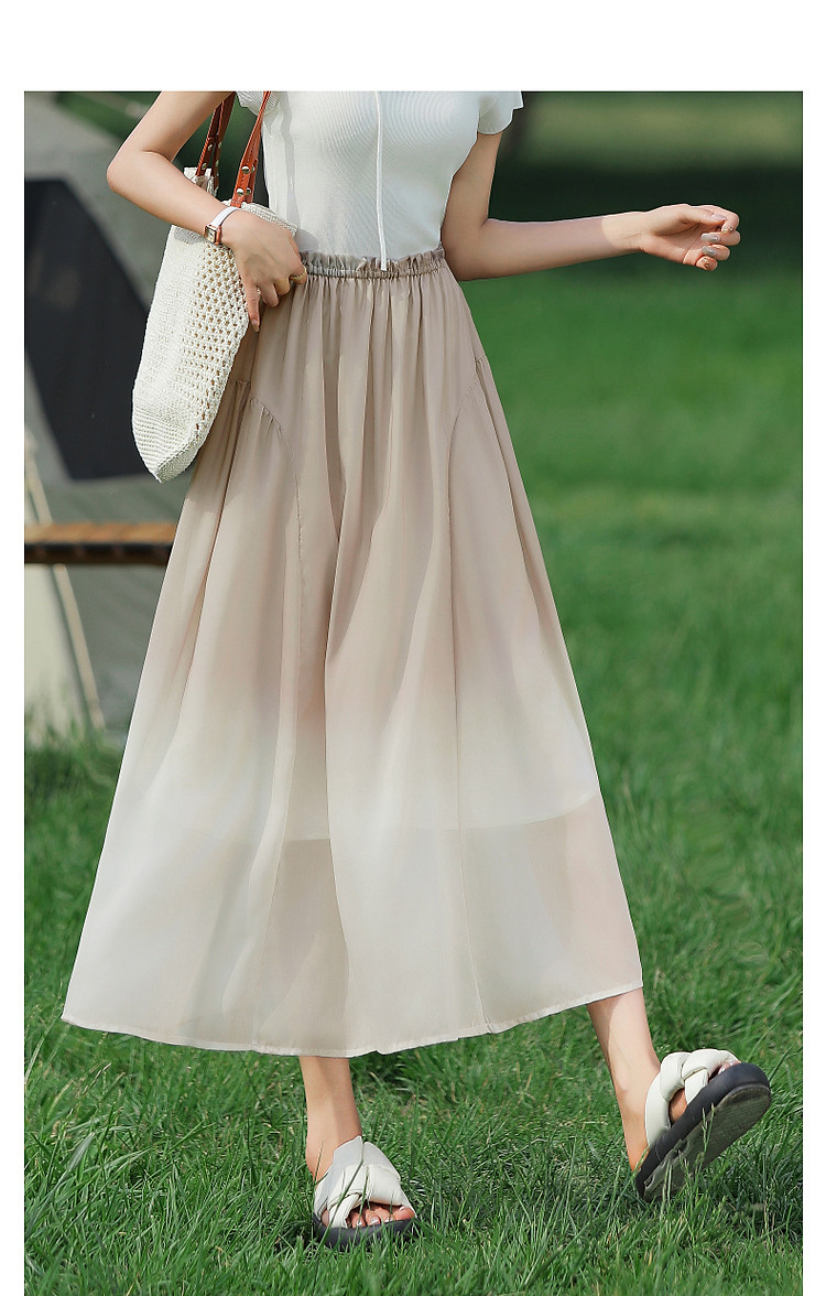 商品名称:【丁达尔穿搭】夏渐变艺术舒适松紧腰爽滑飘逸a字藏肉半身裙女 408577