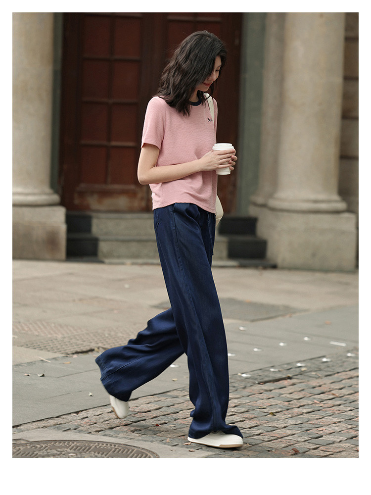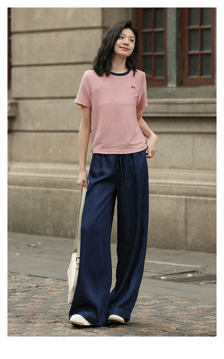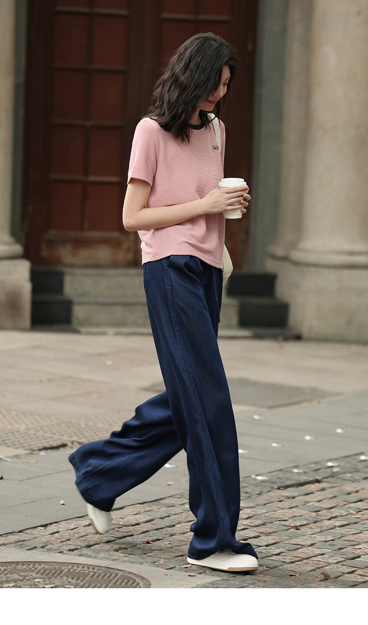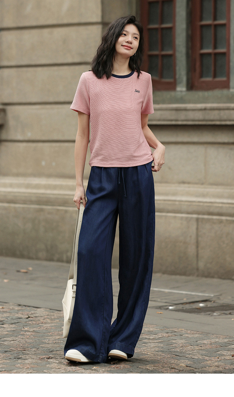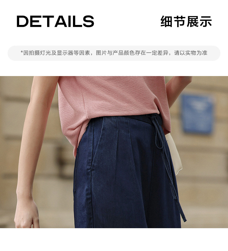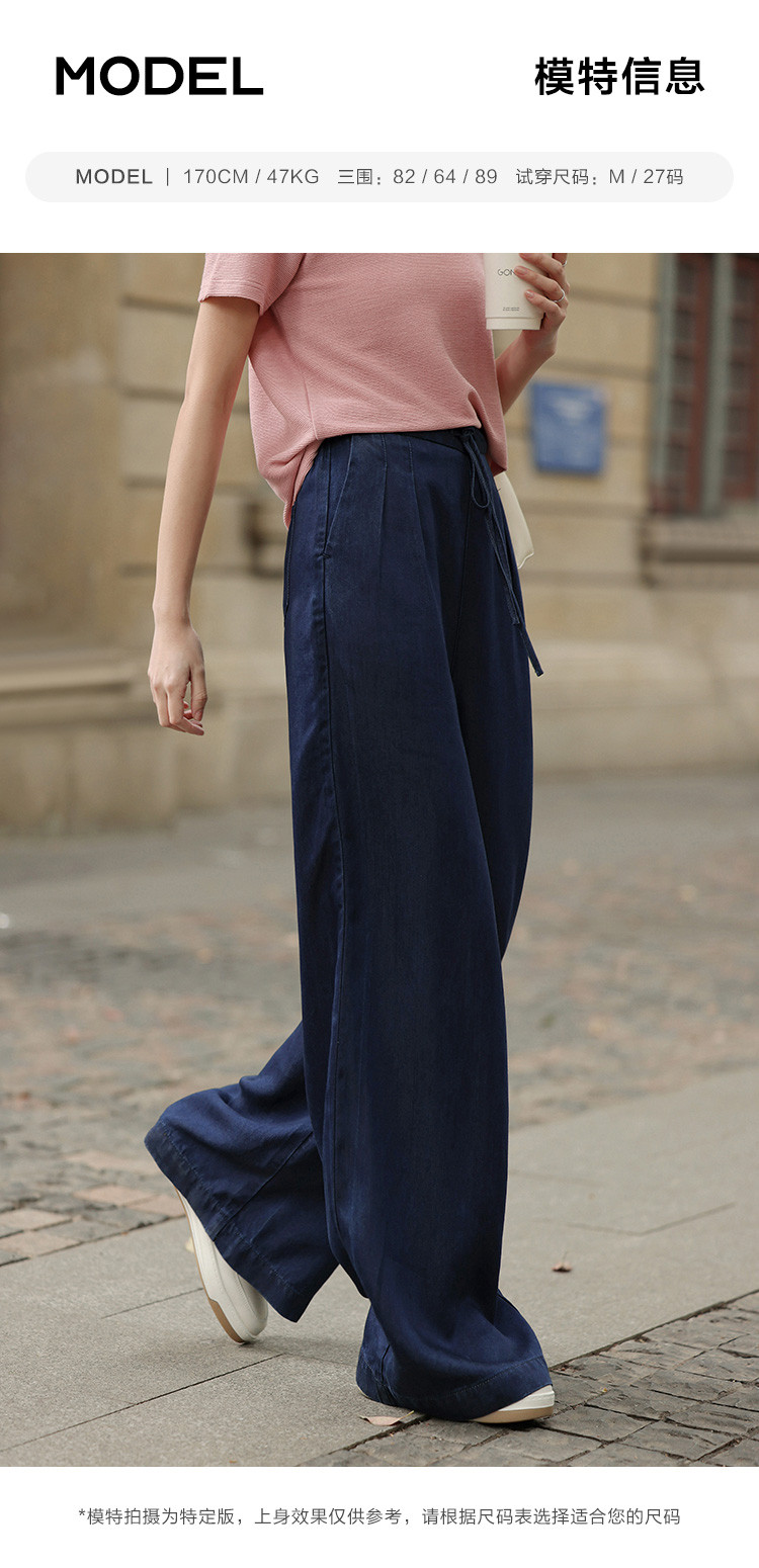 商品名称:【垂坠感阔腿长裤】夏款裤腰抽绳遮肉显腿长阔腿牛仔裤女 564354