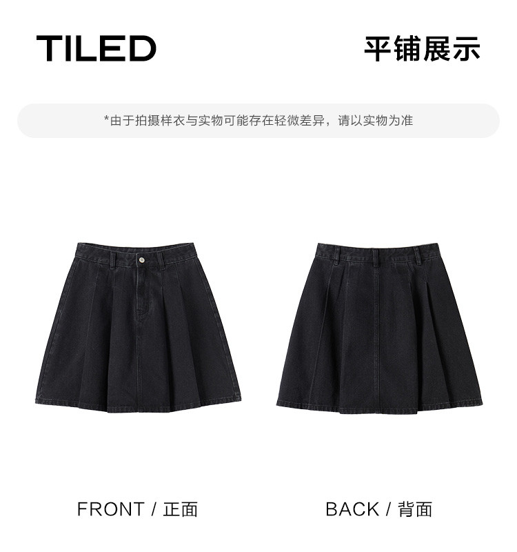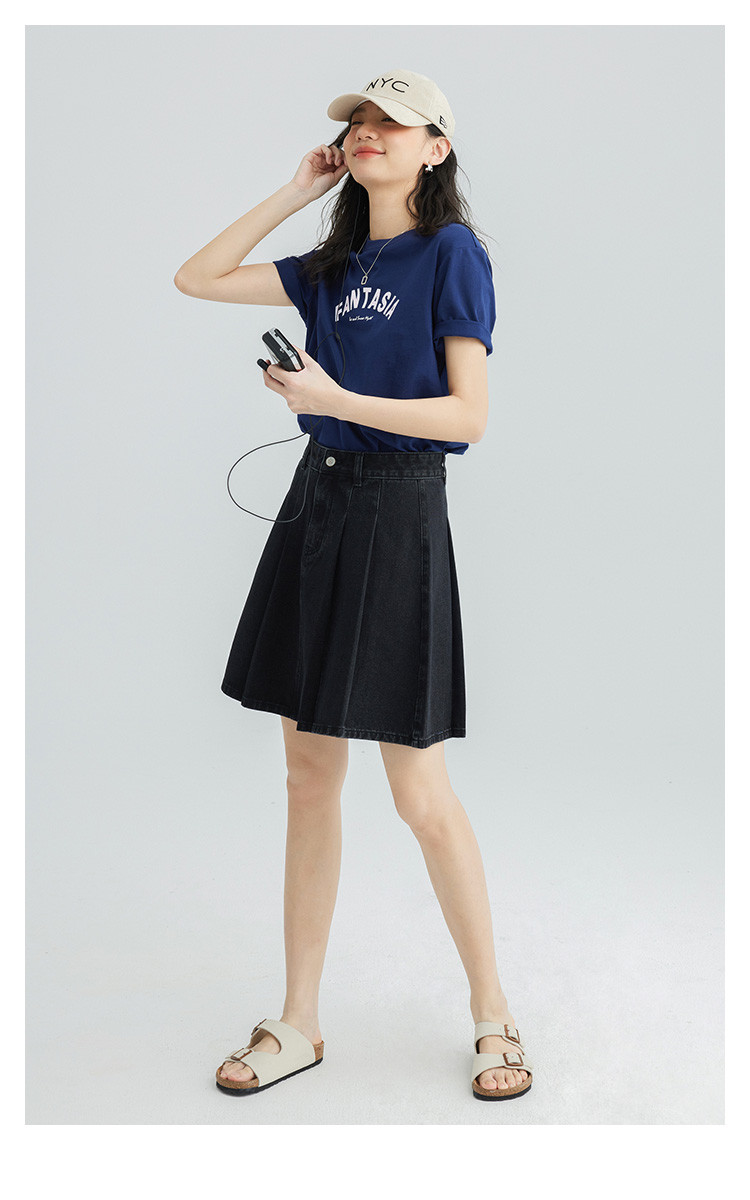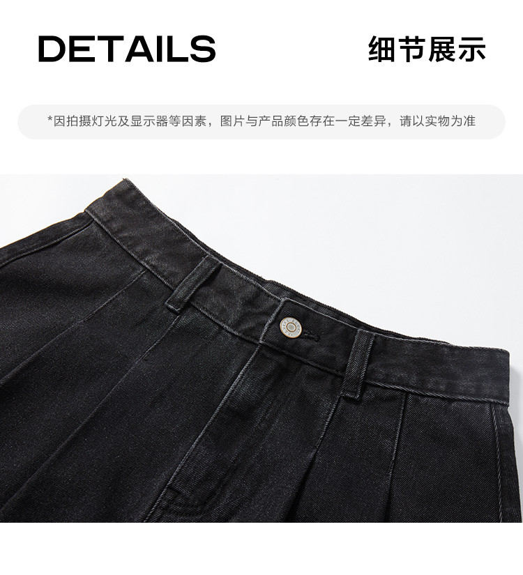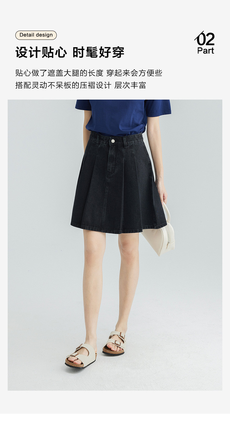 商品名称:【压褶牛仔半裙】夏款百搭现代学院风黑色基础减龄显腿长 724098