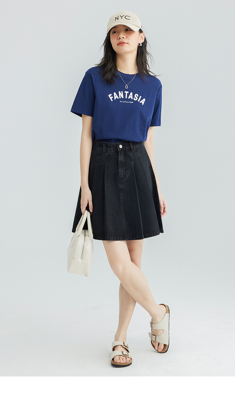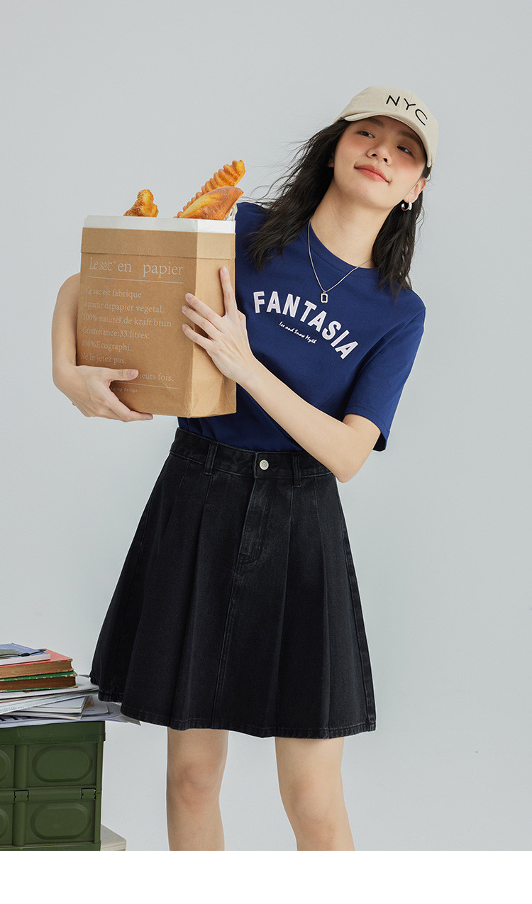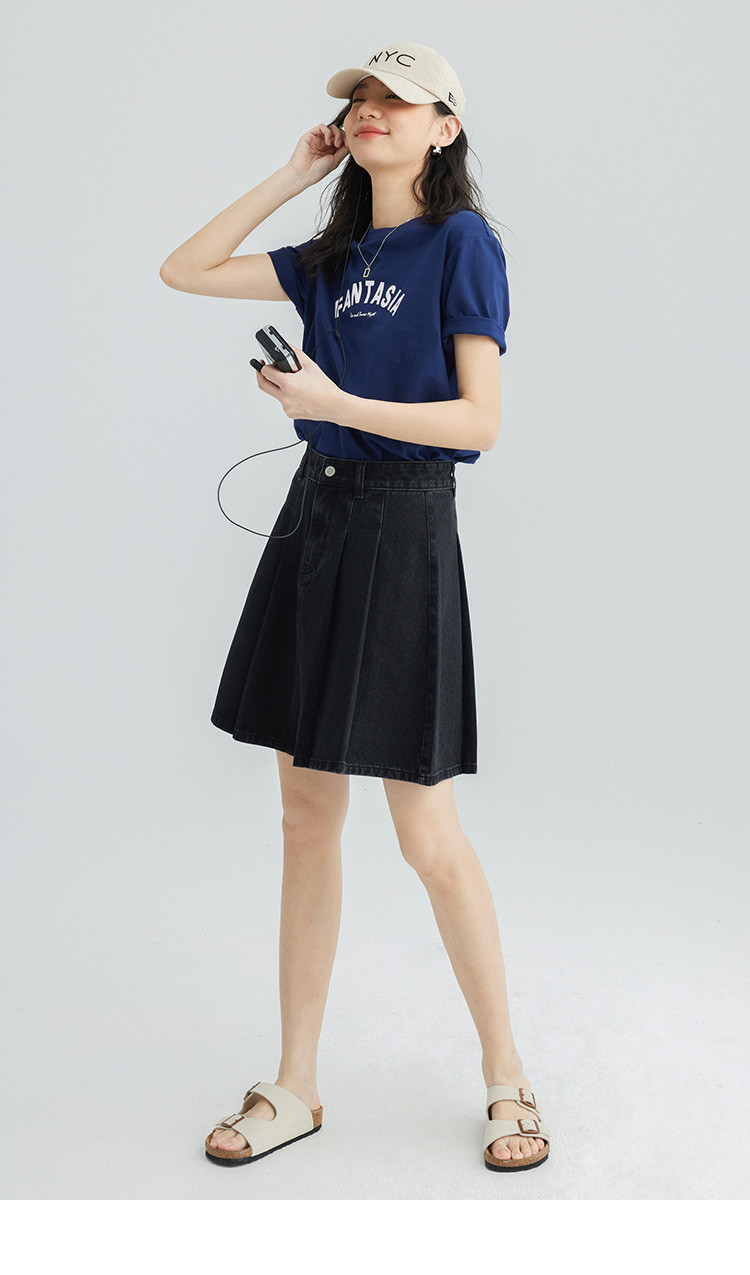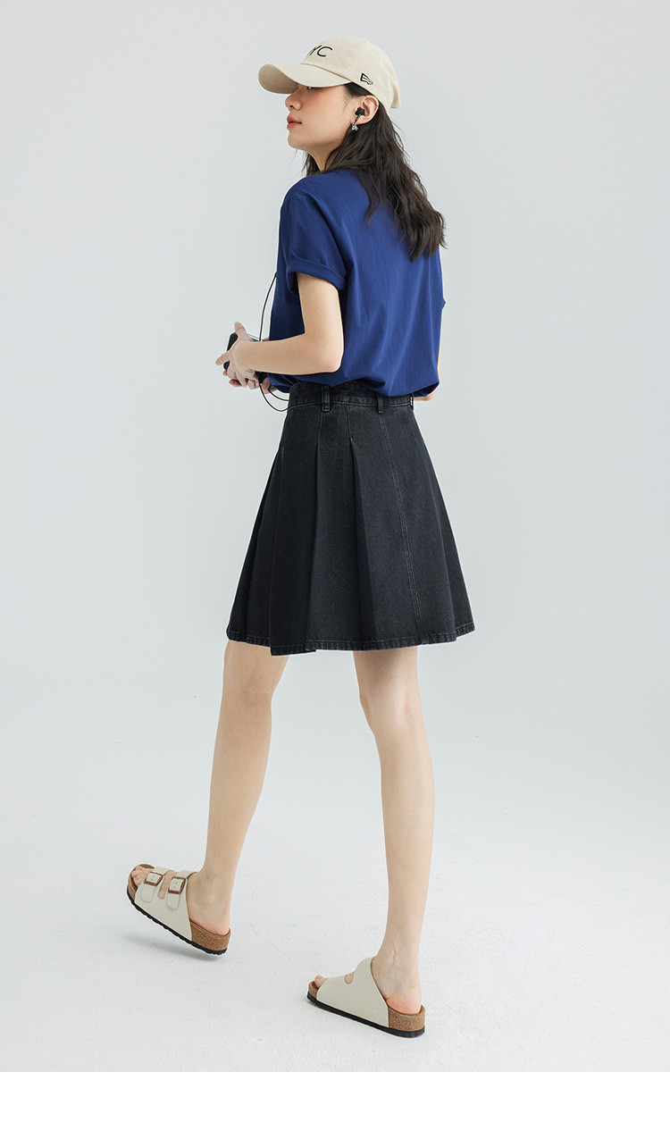 【压褶牛仔半裙】夏款百搭现代学院风黑色基础减龄显腿长 724098