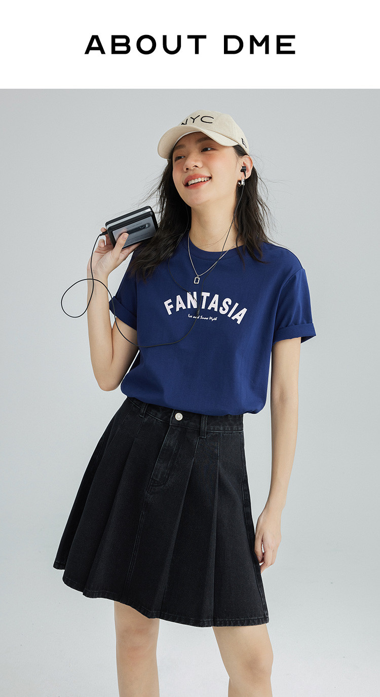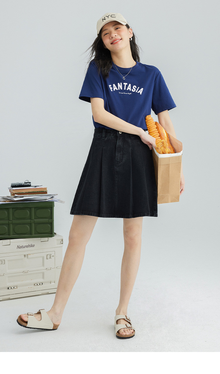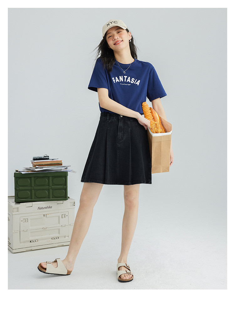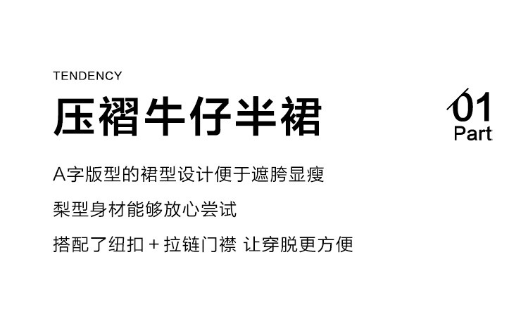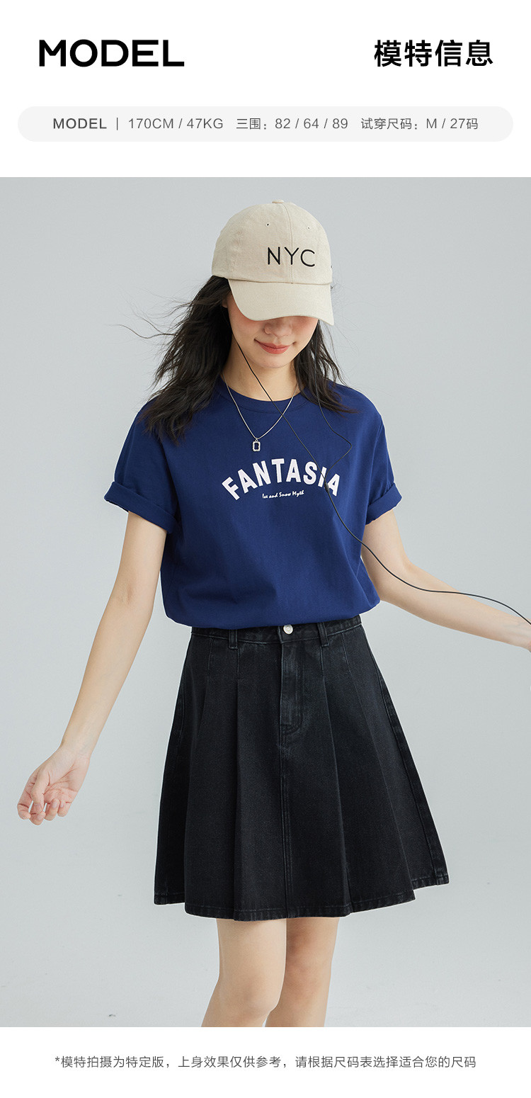 【压褶牛仔半裙】夏款百搭现代学院风黑色基础减龄显腿长 724098