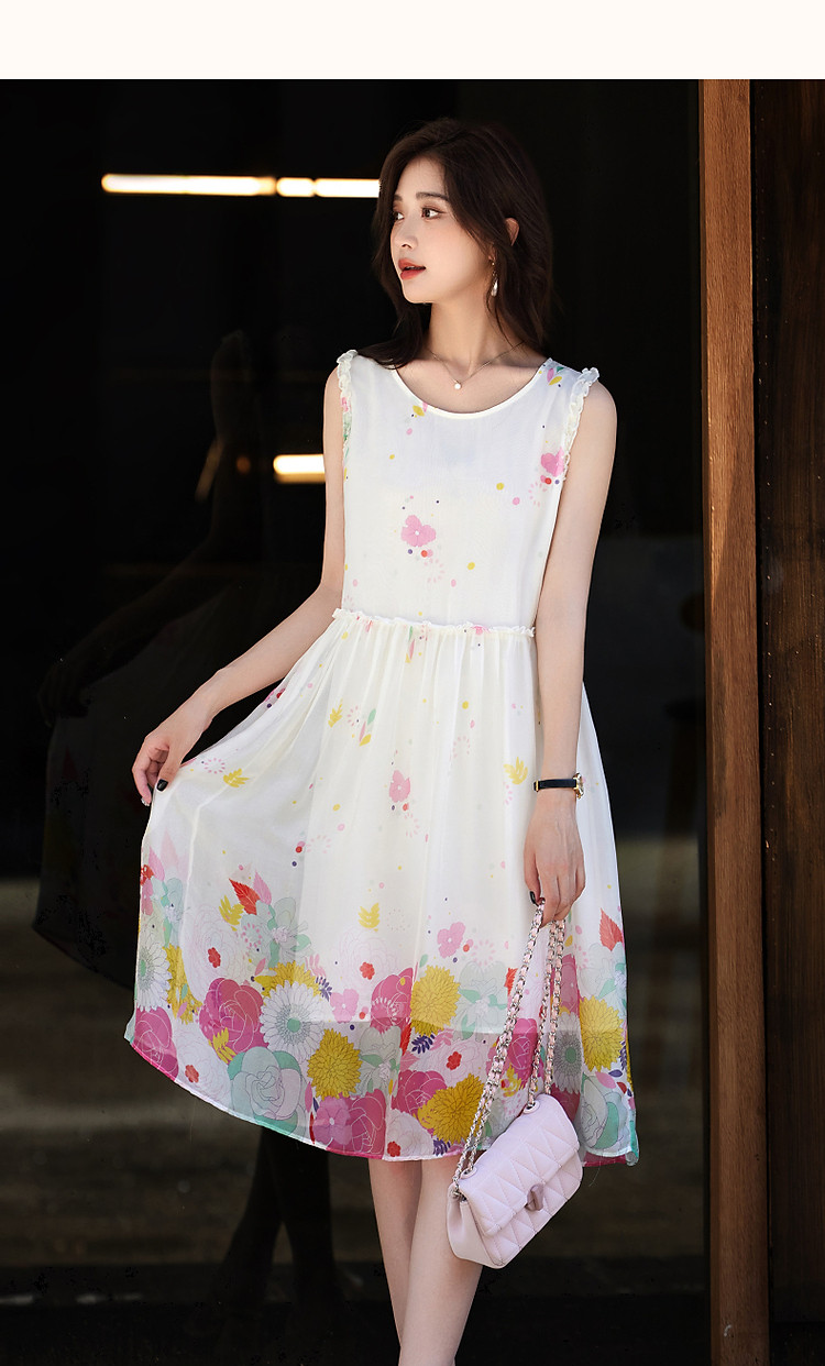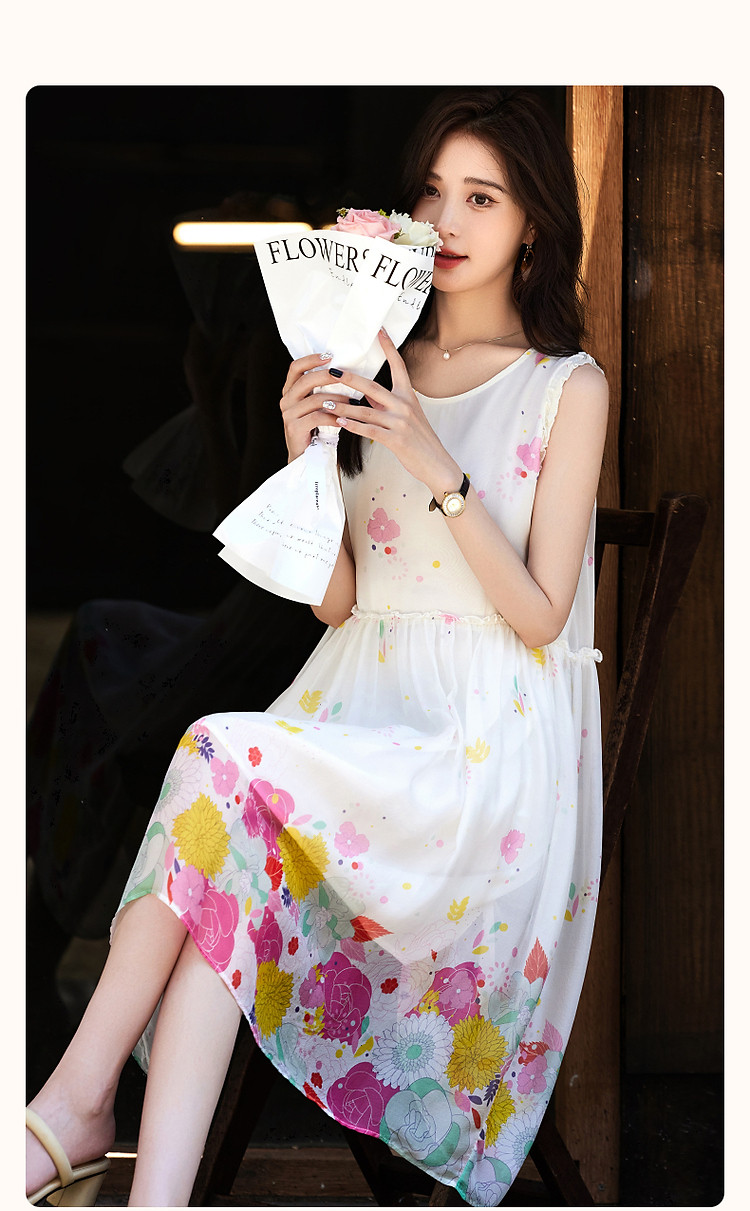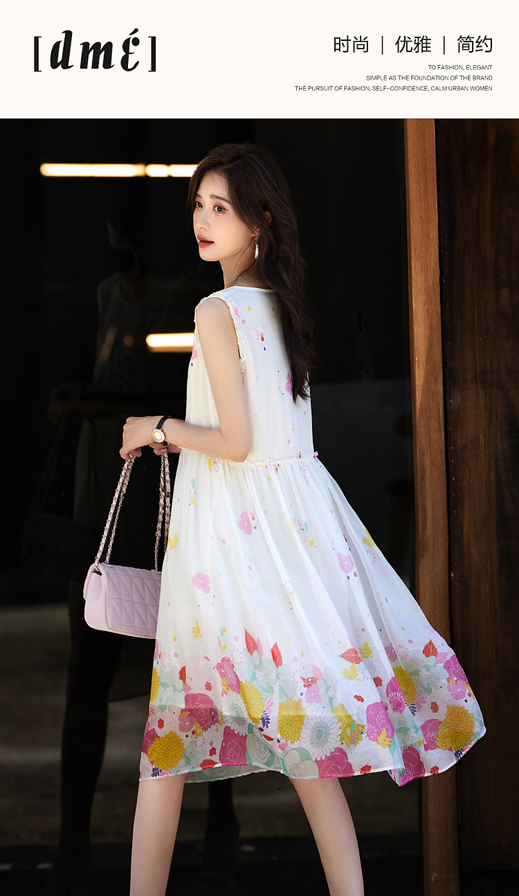 商品名称:【陷入温柔秘境】夏法式高奢100%桑蚕定位印花无袖连衣裙 088961