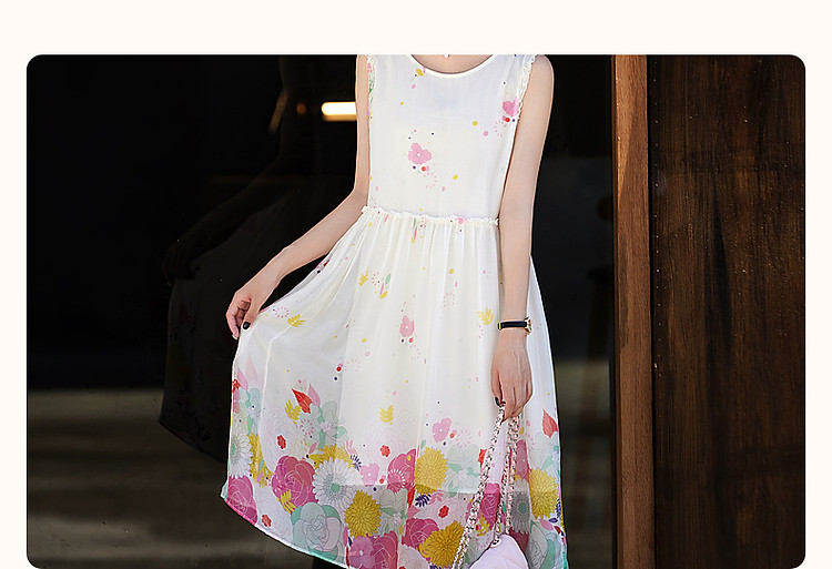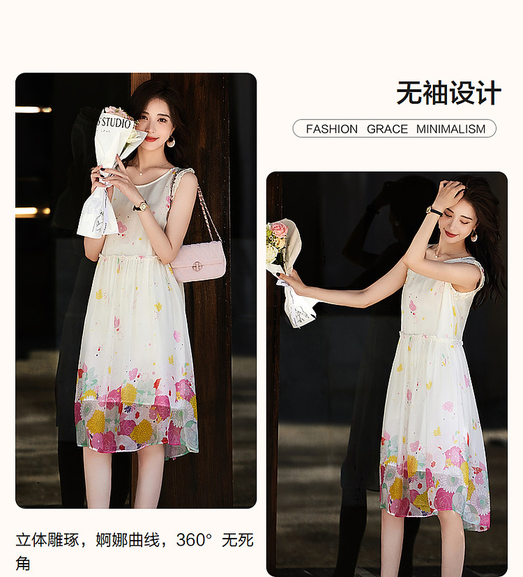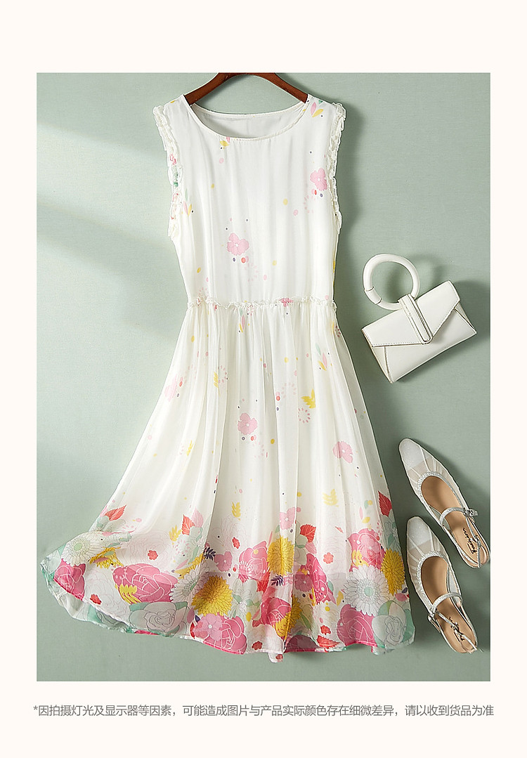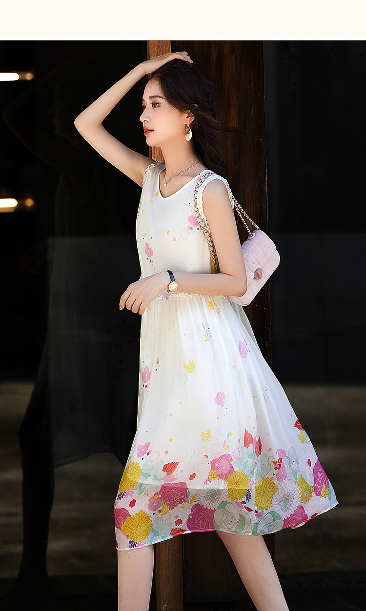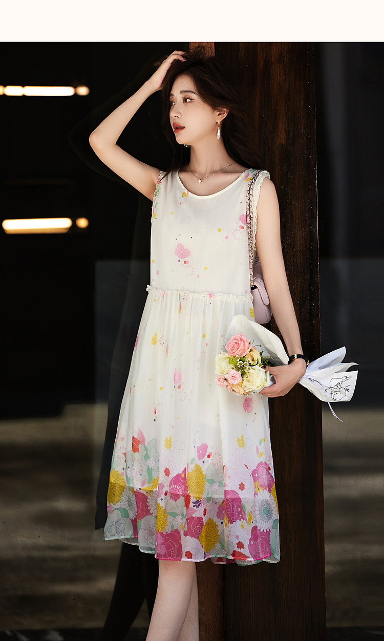 商品名称:【陷入温柔秘境】夏法式高奢100%桑蚕定位印花无袖连衣裙 088961