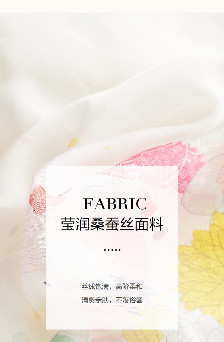 【名媛仙女】春圆领桑蚕丝真丝印花松紧腰连衣裙女中长款 195649