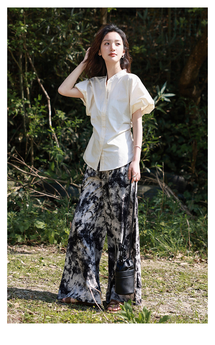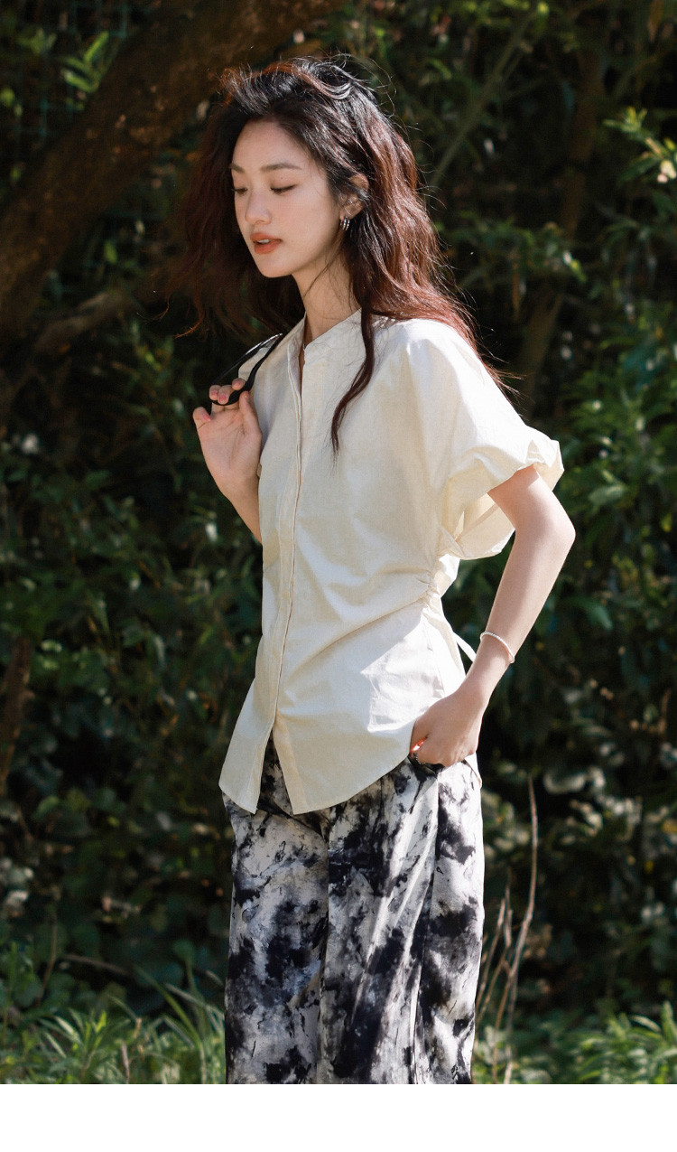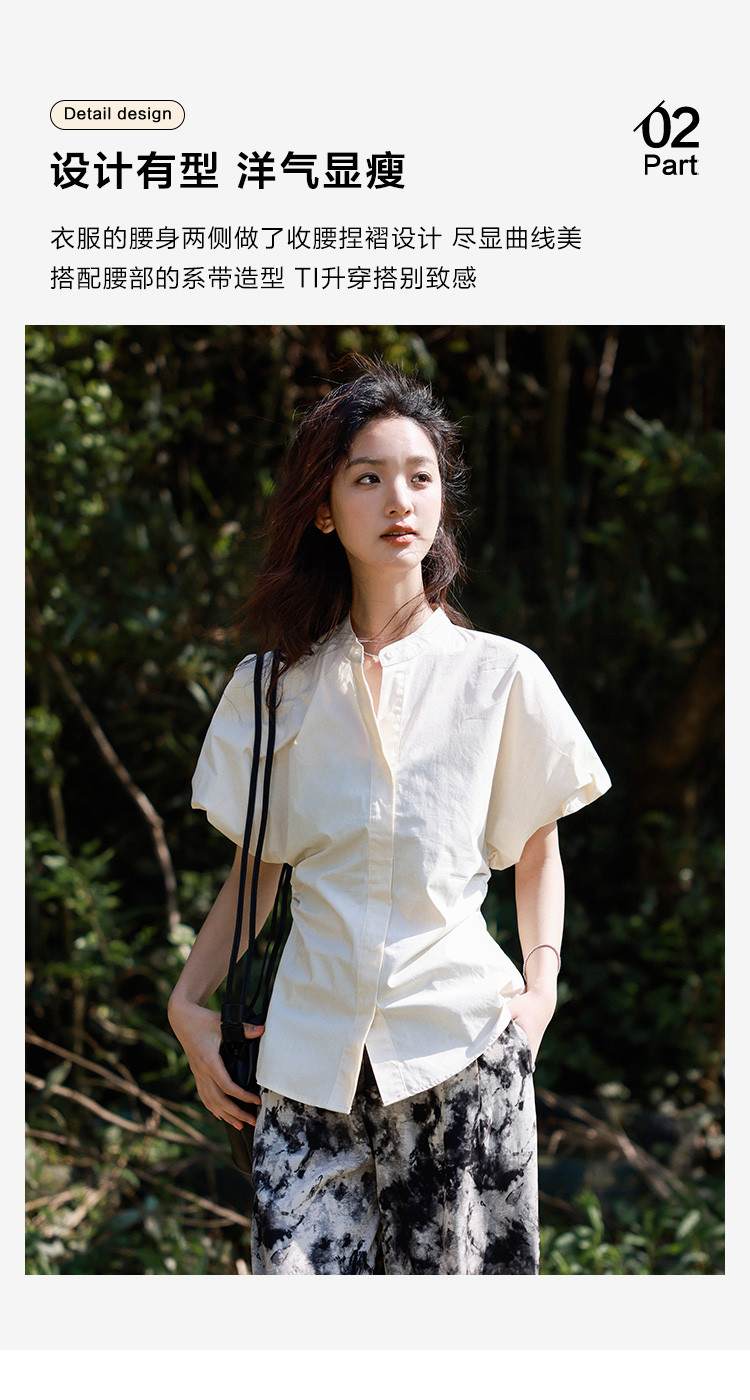【云朵泡泡上衣】夏款气质通勤新中式温柔收腰衬衫女 916610