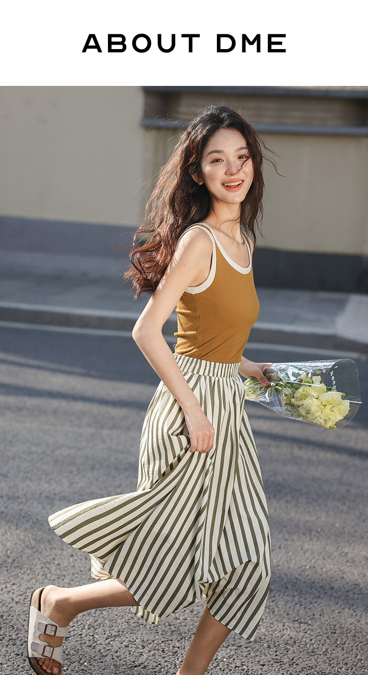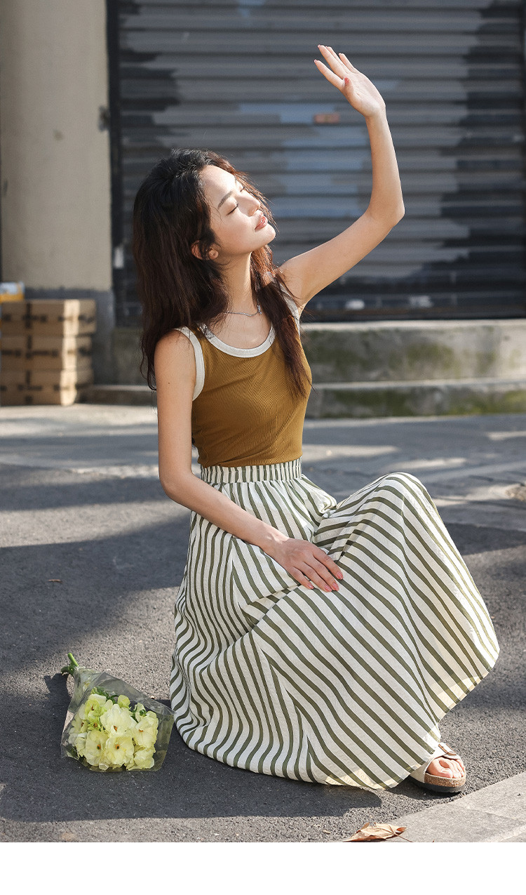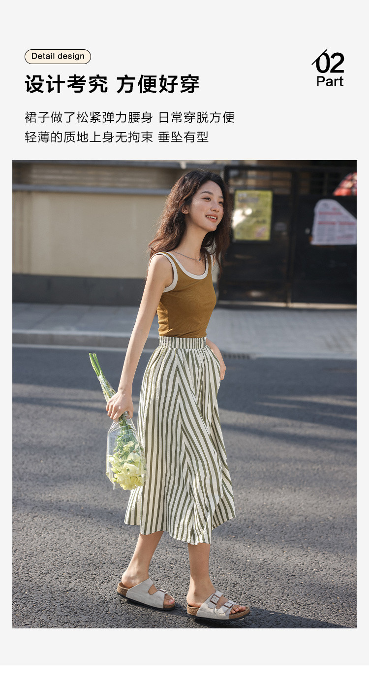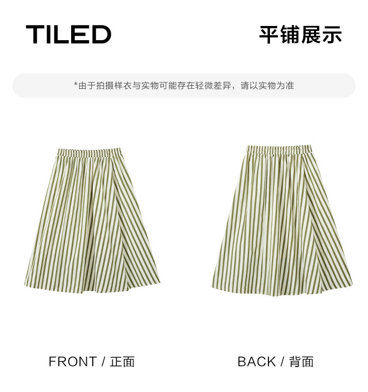 商品名称:【基础款条纹半身裙】夏松紧绿条纹基础百搭长款半身裙 165762