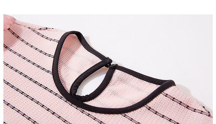 【环保莱赛尔】夏季复古风圆领条纹泡泡袖拼接小个子气质女式t恤 142785