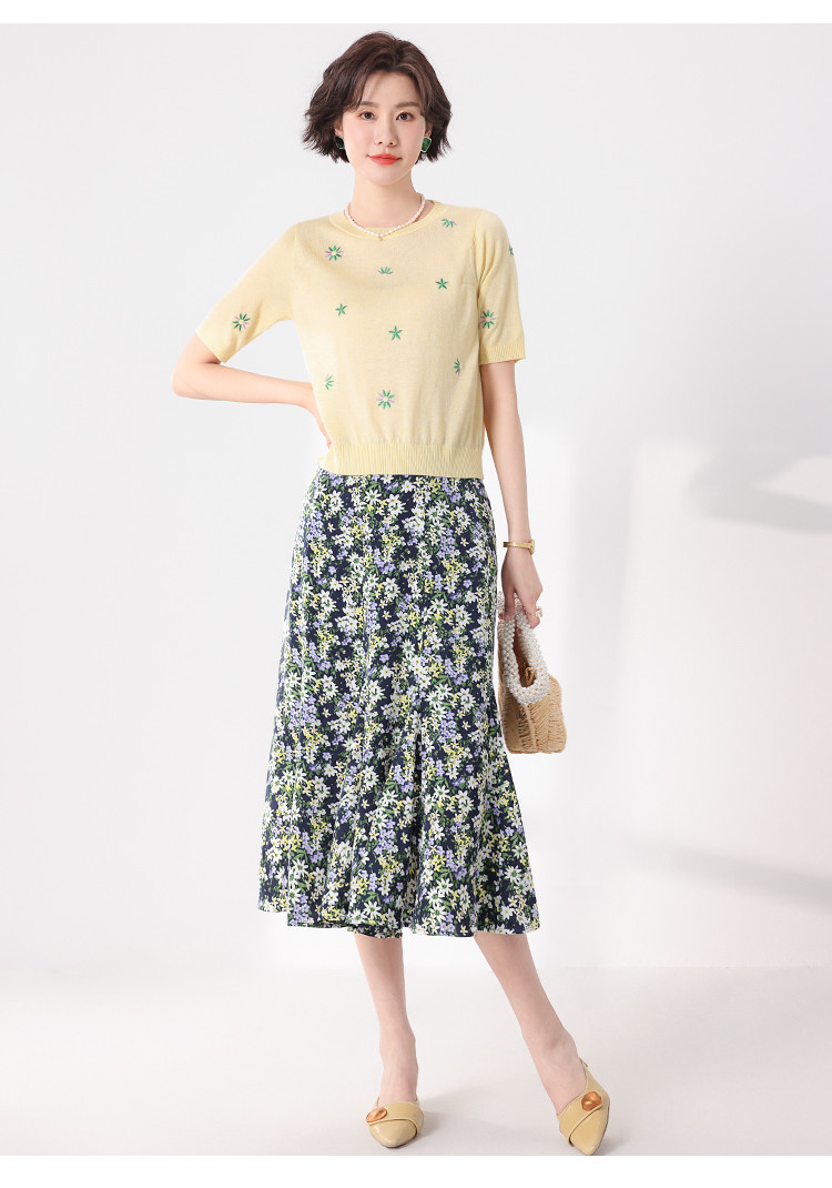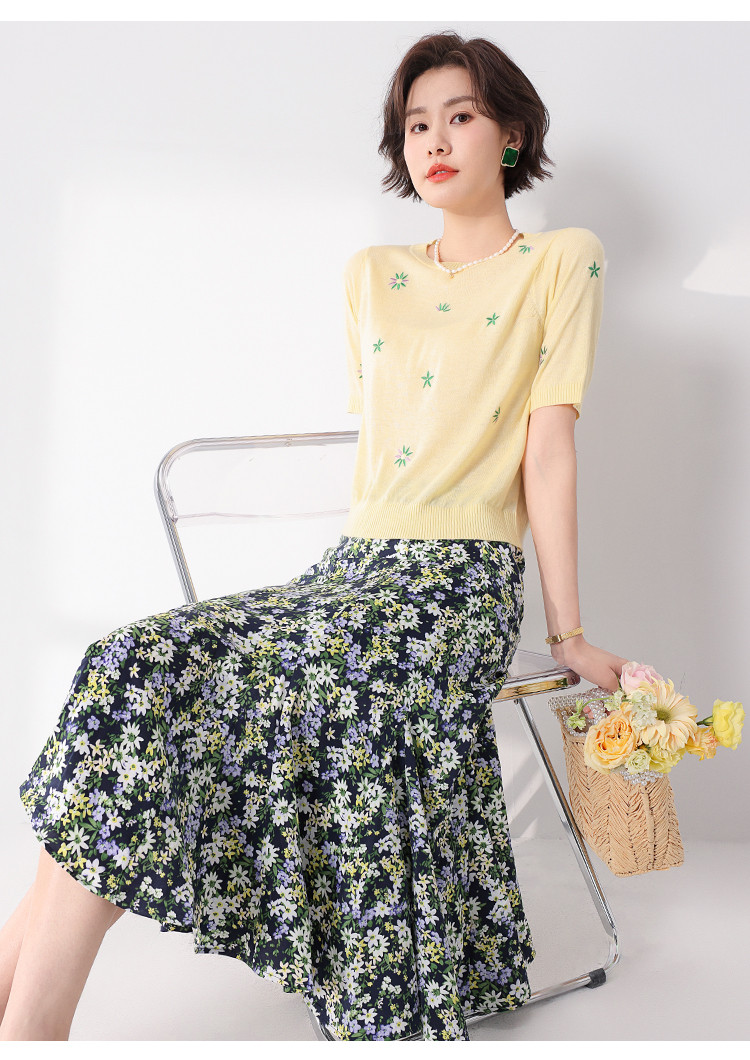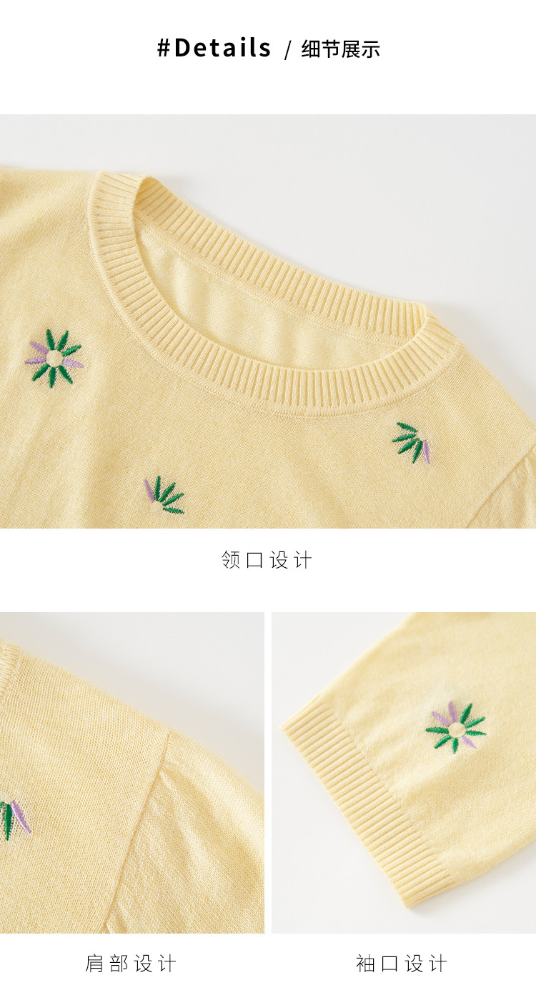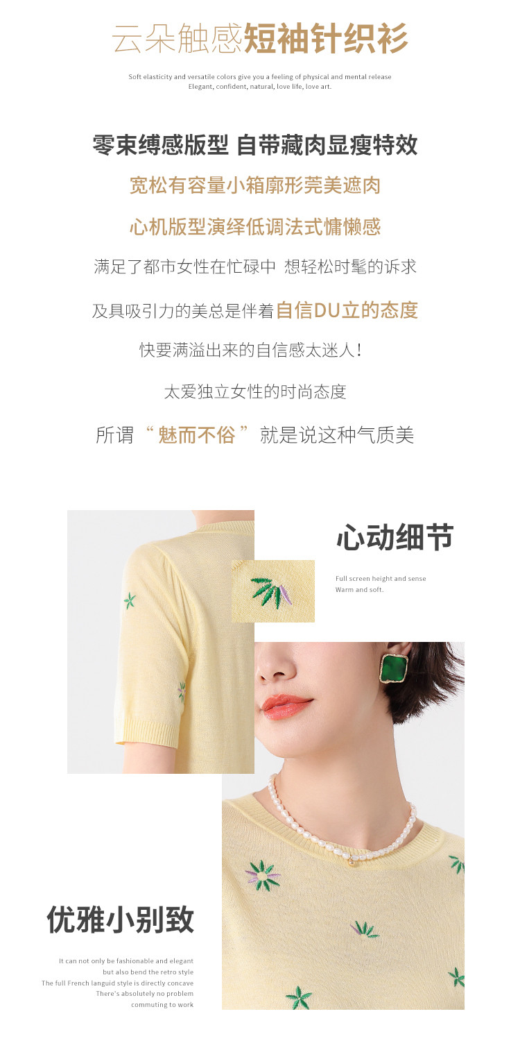 商品名称:轻薄透气简约绣花圆领针织打底短袖T恤羊毛衫毛衣 069139