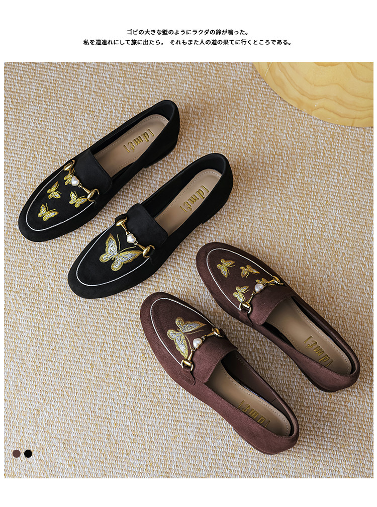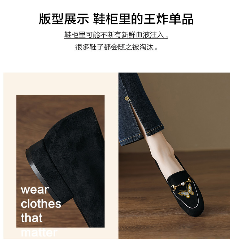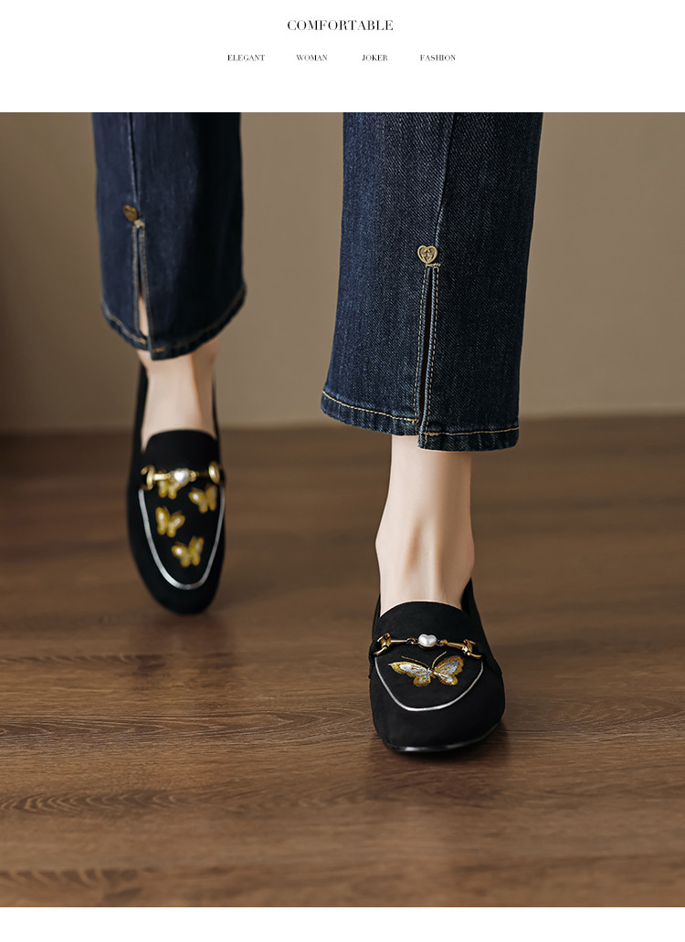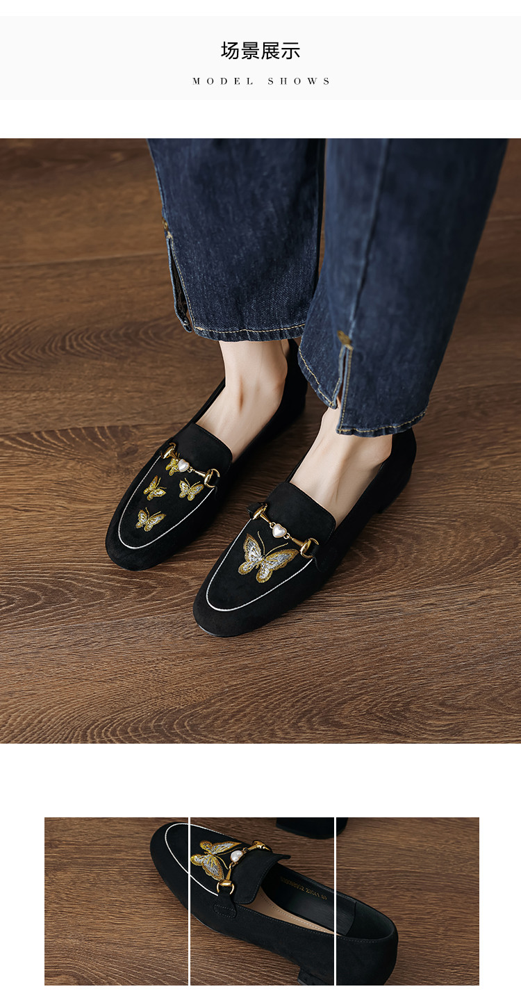 商品名称:春夏时尚复古国风蝴蝶刺绣爱心珍珠饰扣时装乐福鞋女单鞋 862785