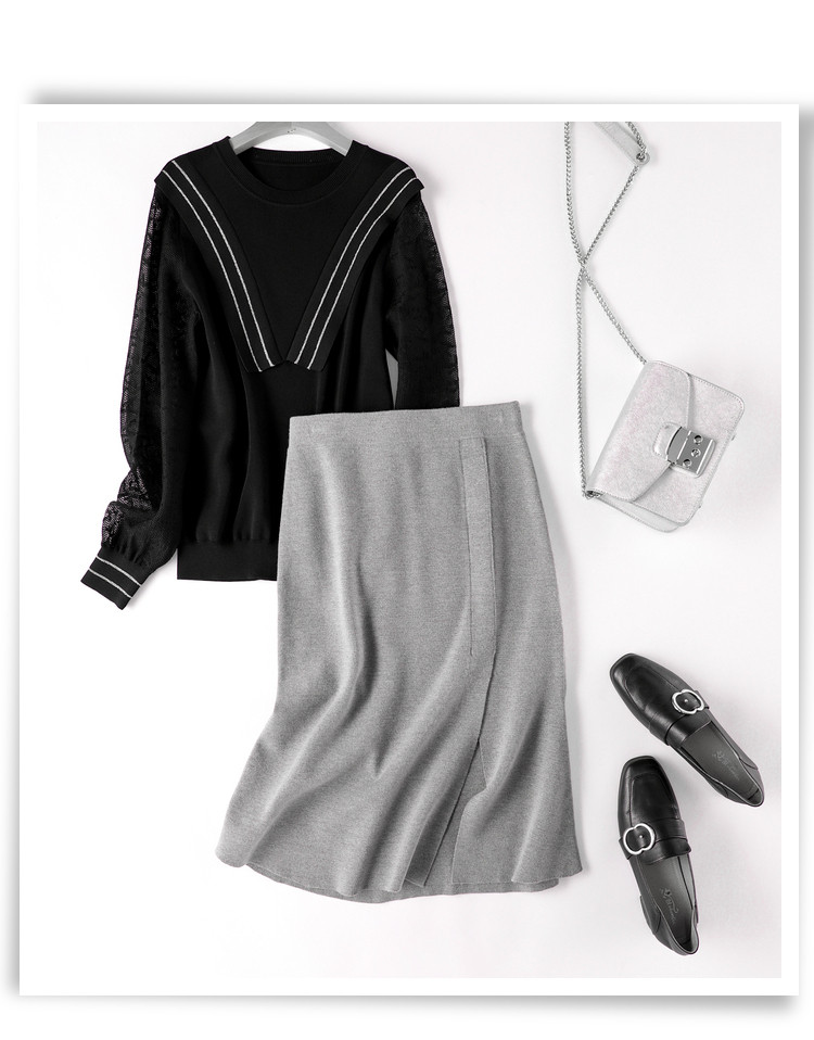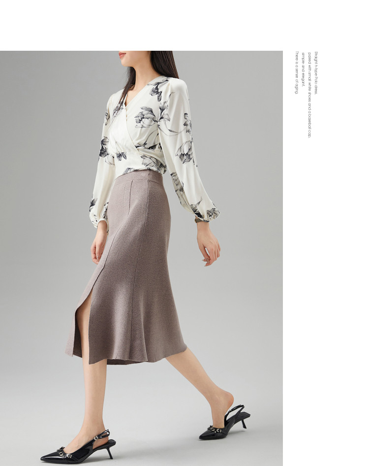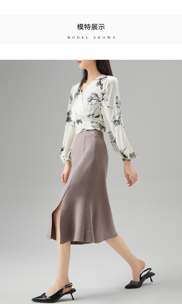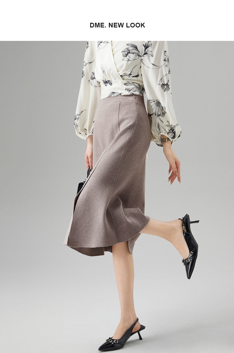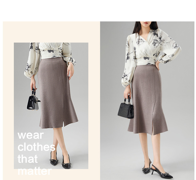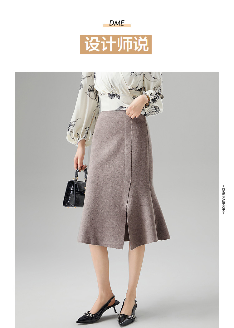 商品名称:【陷入优雅秘境】秋冬办公室通勤时髦开叉设计感鱼尾针织女半身裙 553473