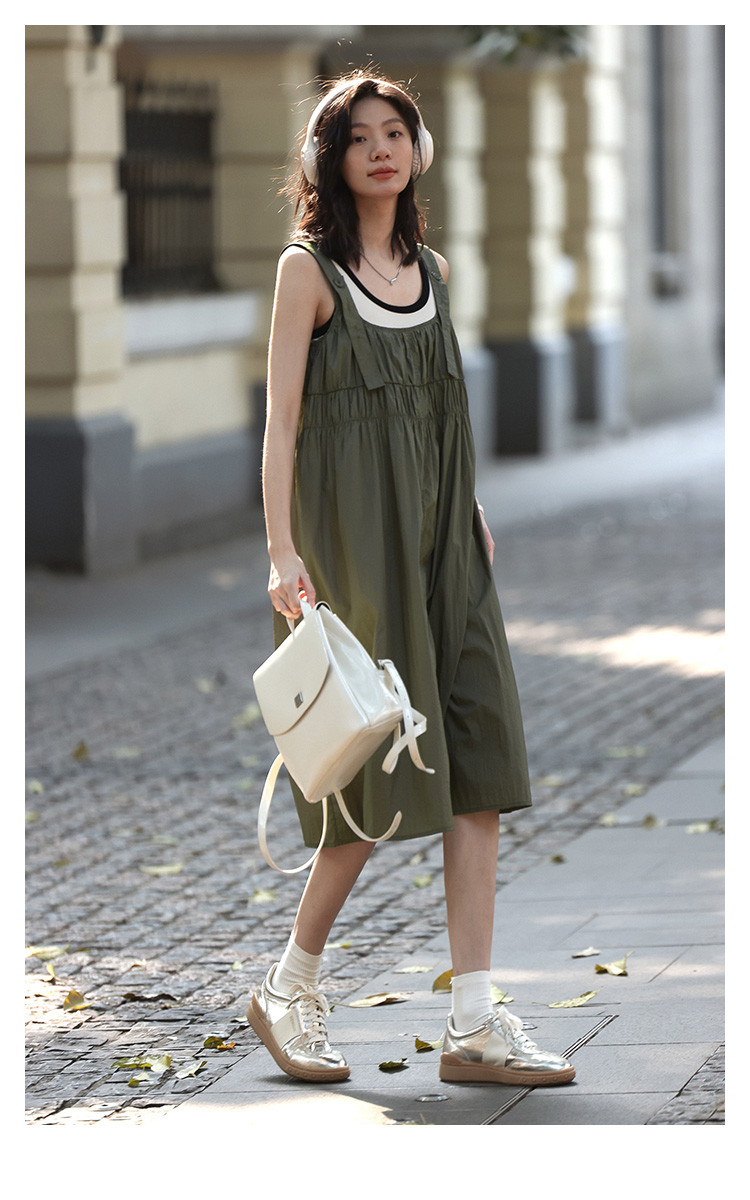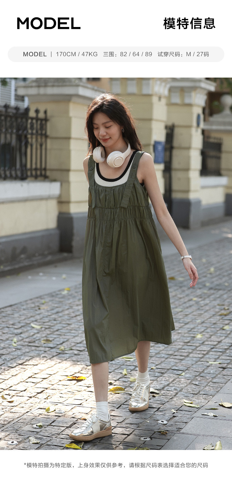 【松弛感军绿背带裙】夏款肩带可调节中长款背带裙 575618