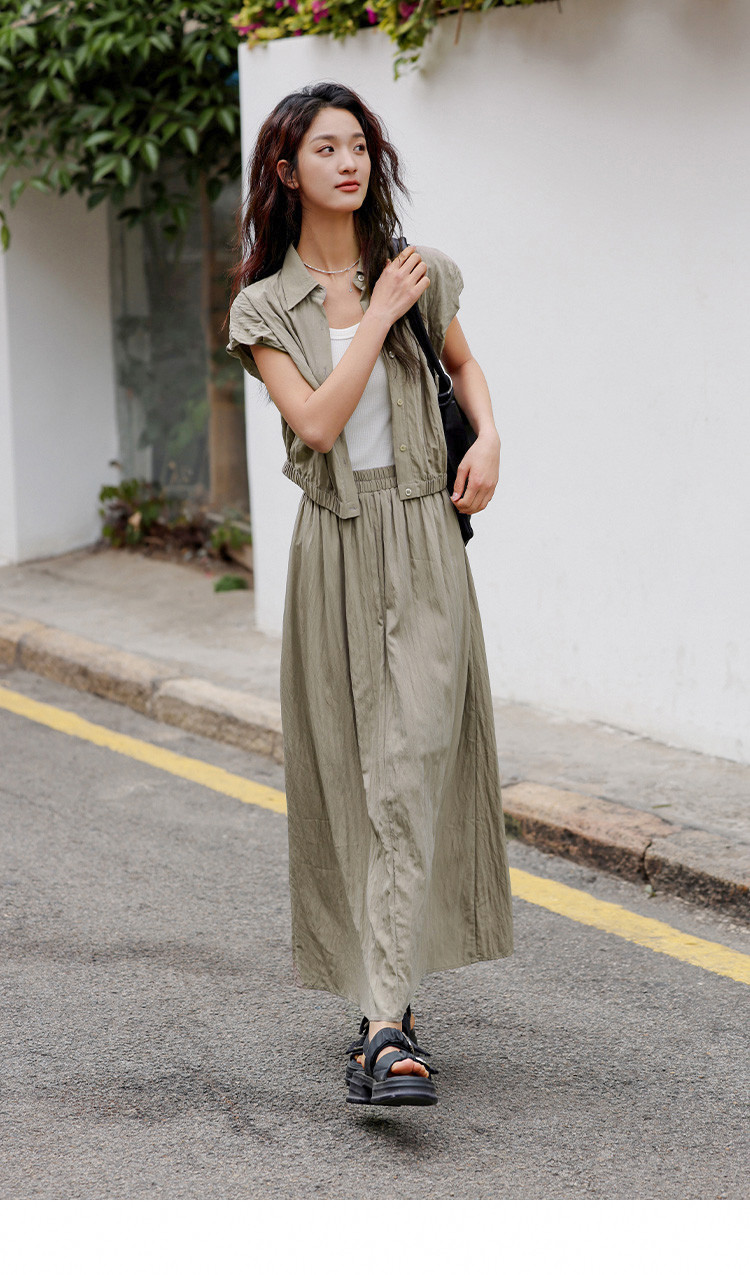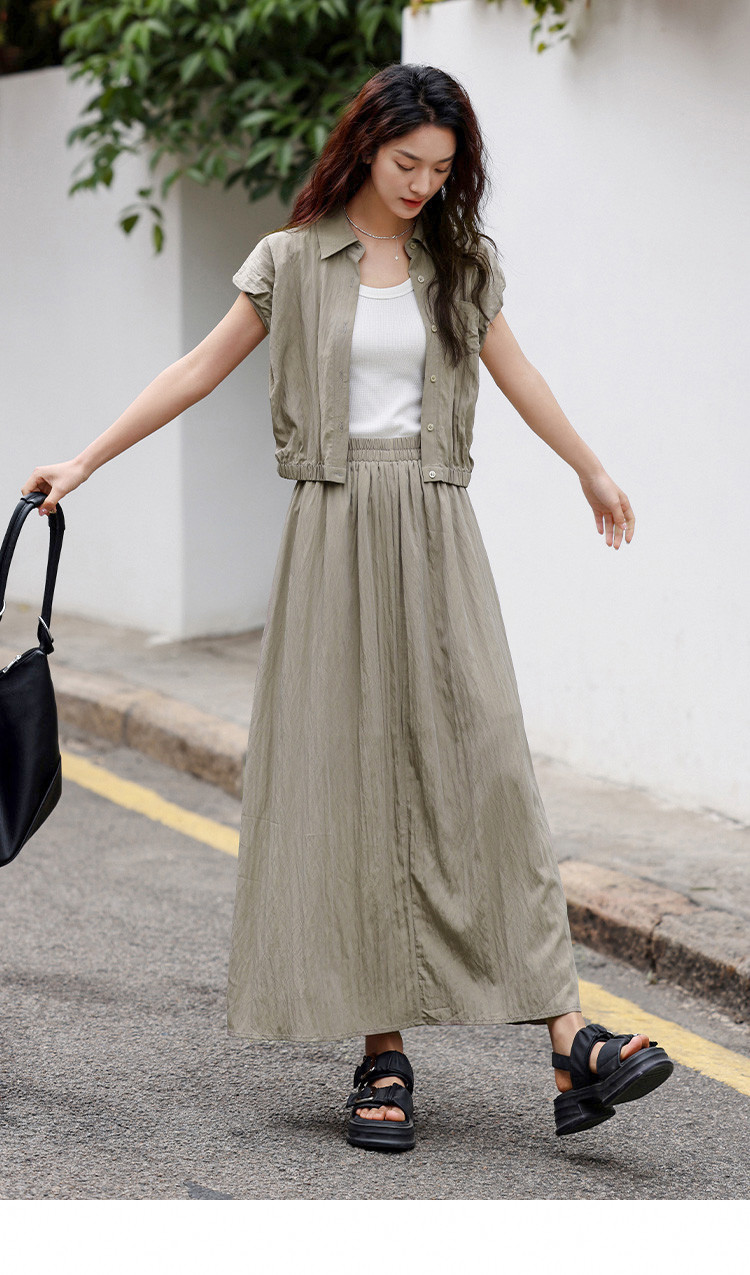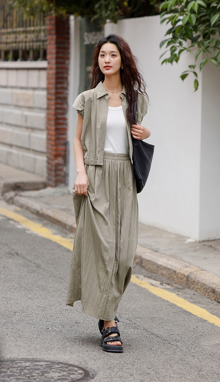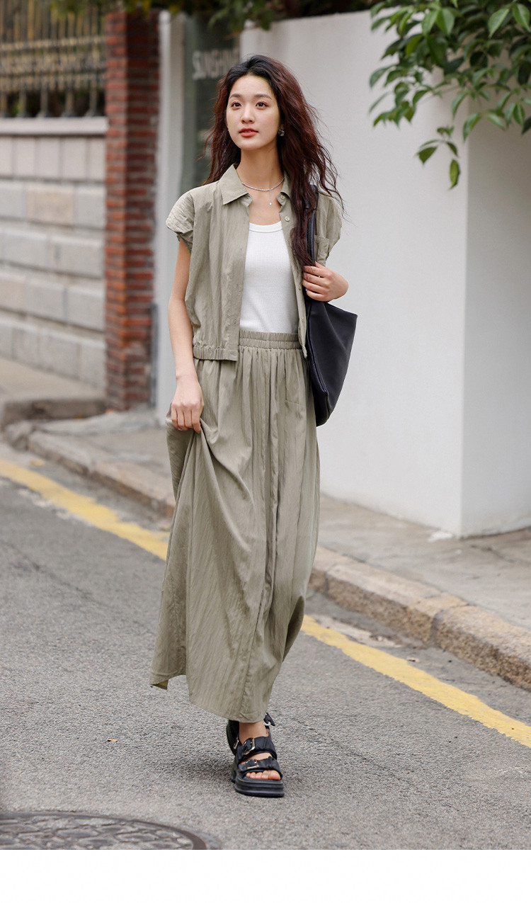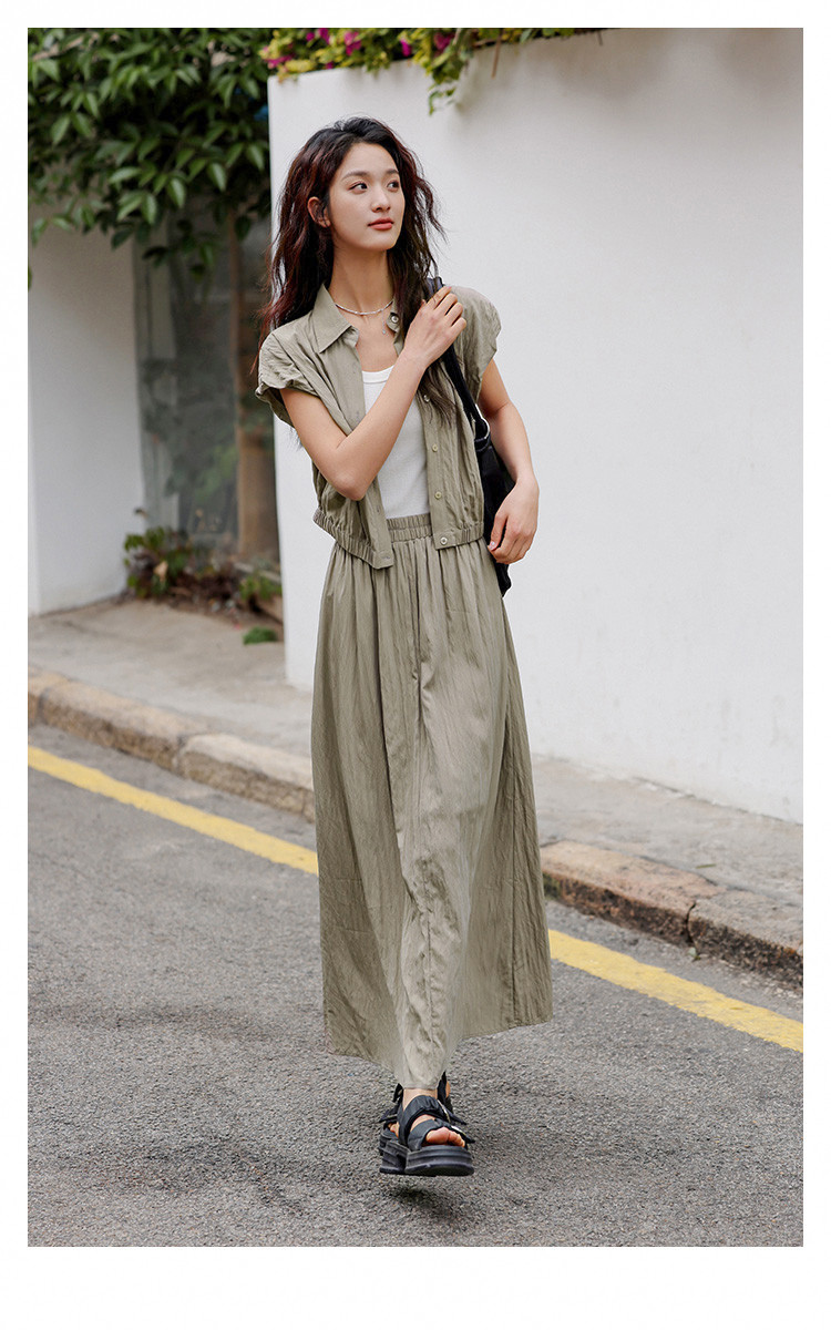 【气质卡其套装裙】艺术感褶皱通勤休闲风松弛感显瘦显高女士套装 871554
