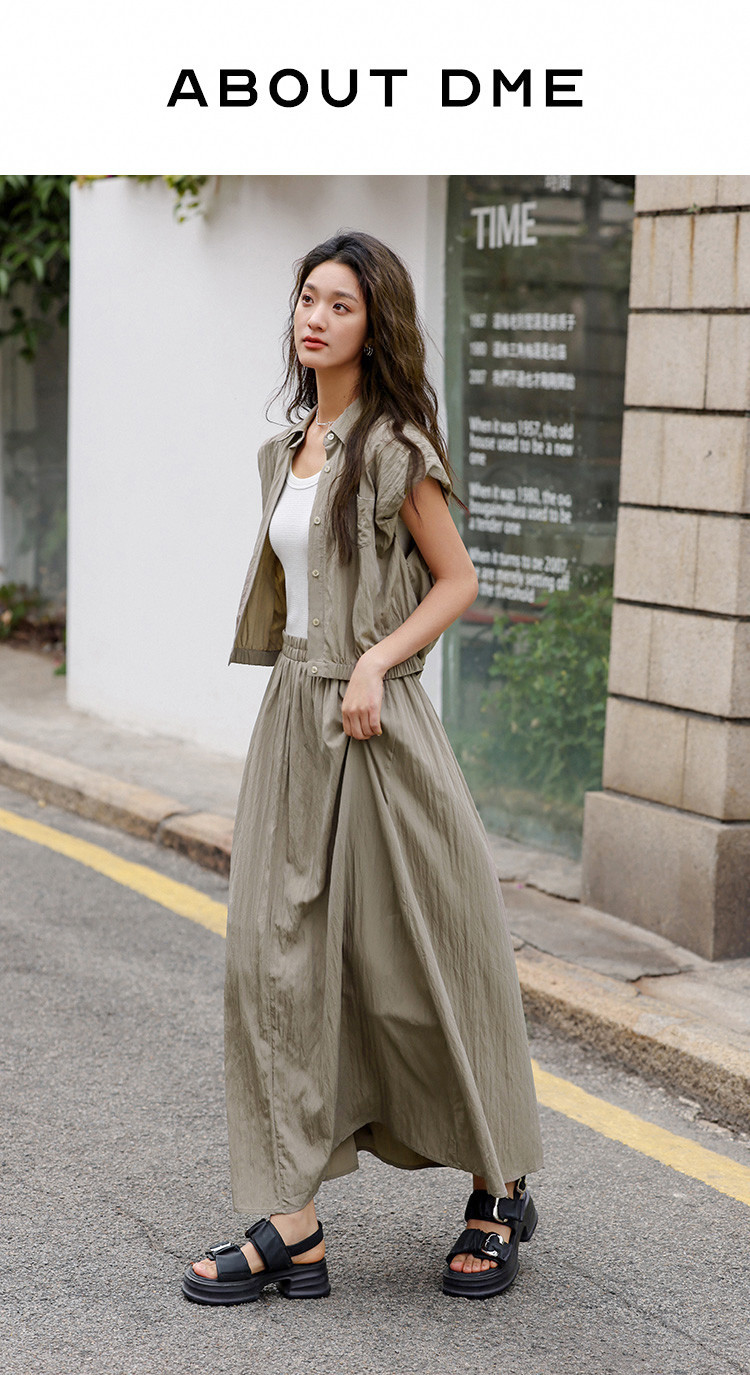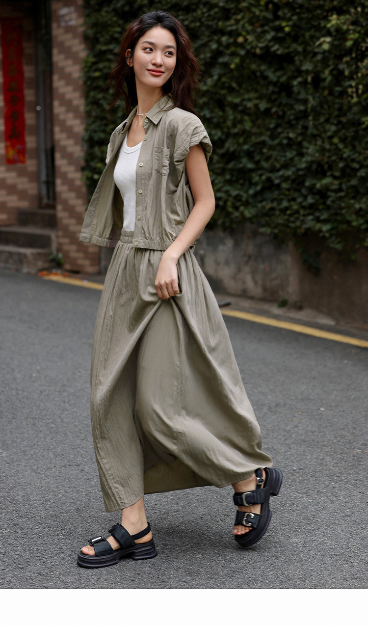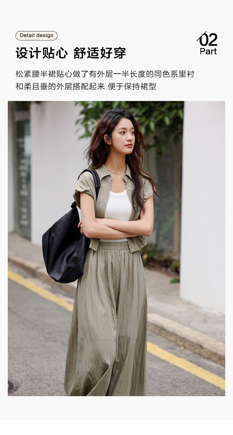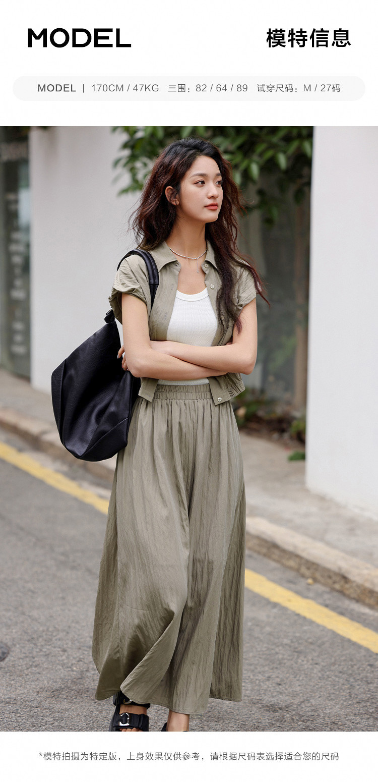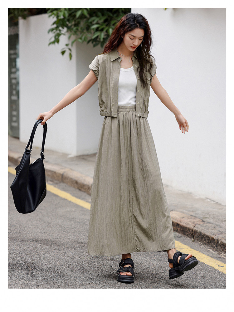 【气质卡其套装裙】艺术感褶皱通勤休闲风松弛感显瘦显高女士套装 871554