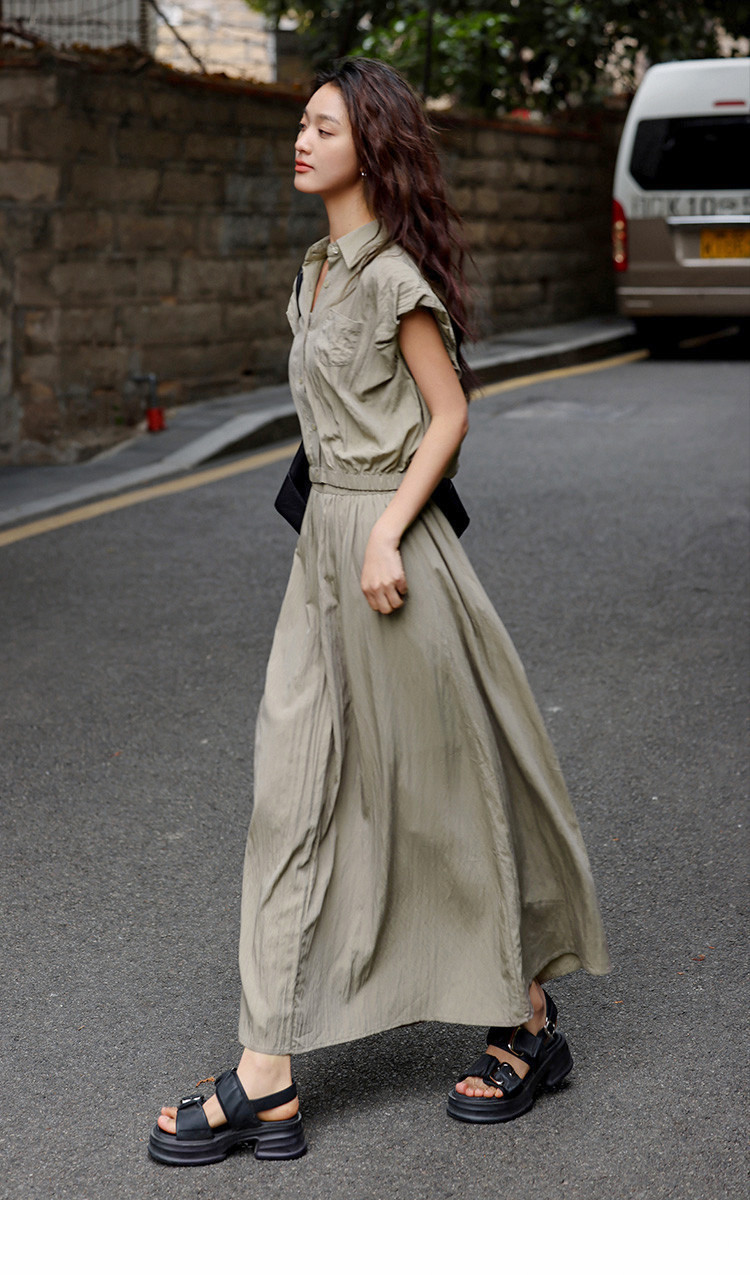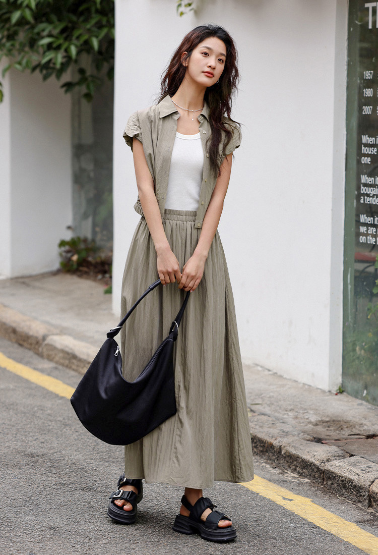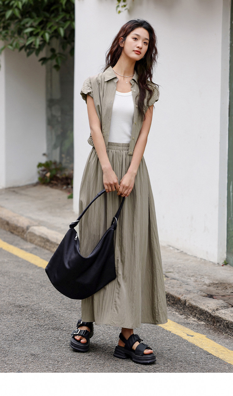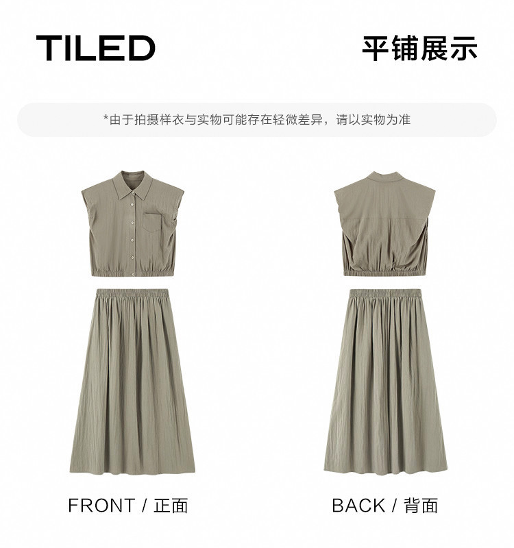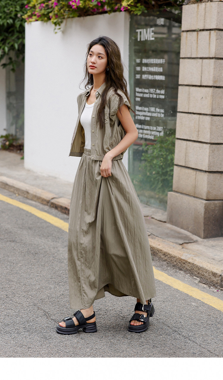 【气质卡其套装裙】艺术感褶皱通勤休闲风松弛感显瘦显高女士套装 871554