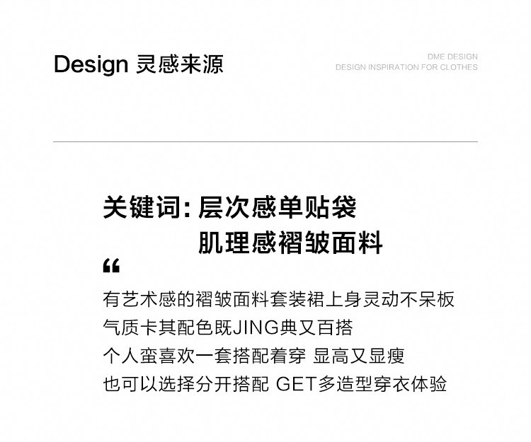 商品名称:【气质卡其套装裙】艺术感褶皱通勤休闲风松弛感显瘦显高女士套装 871554