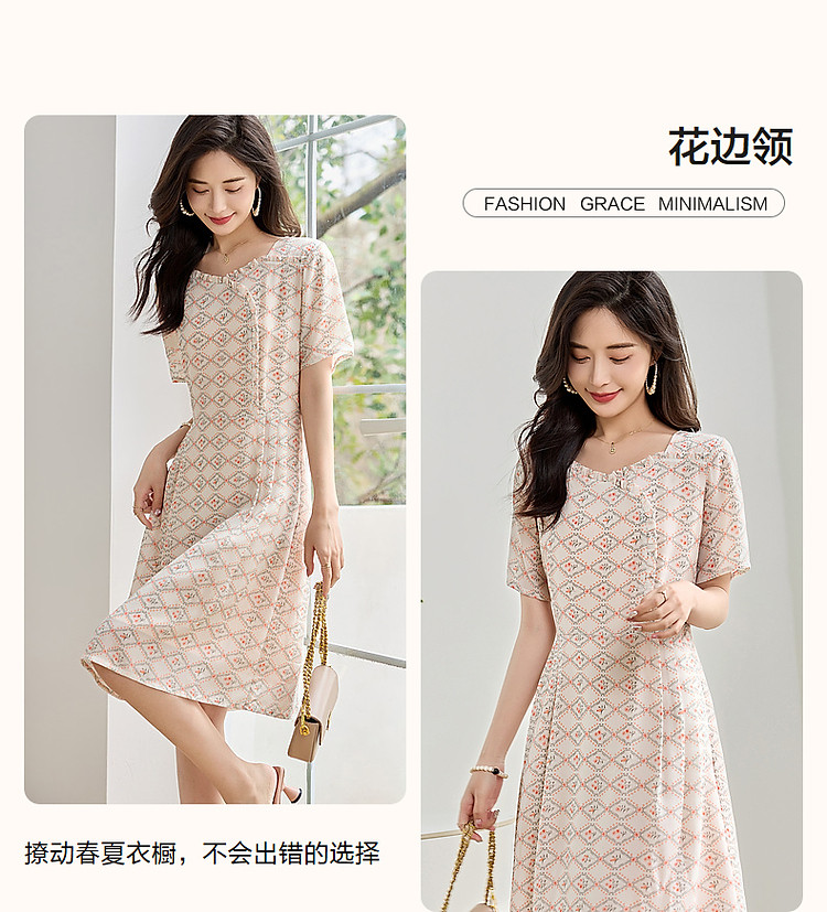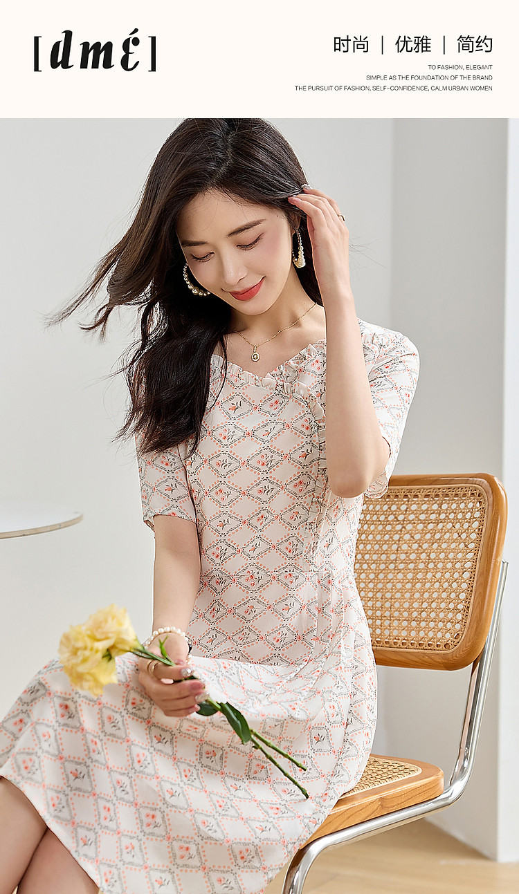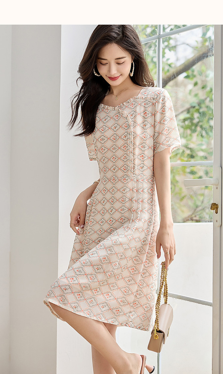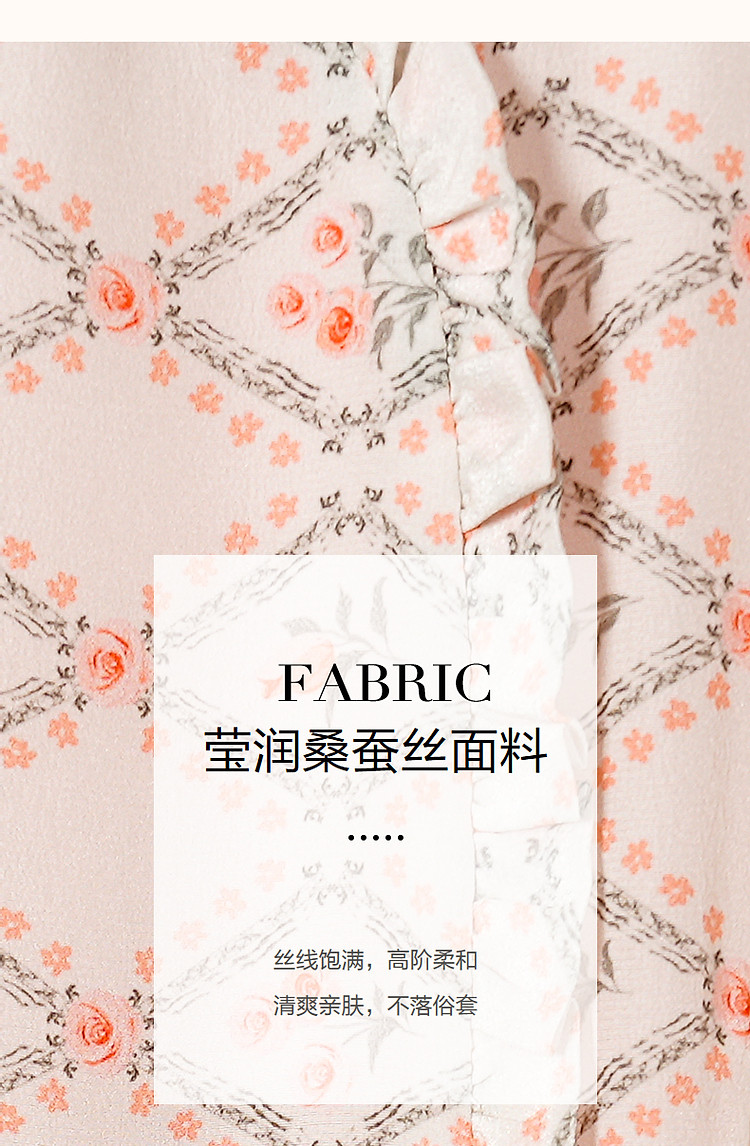 商品名称:【国风淡雅仙子】夏奢享桑蚕丝印花淑女花边领连衣裙 073217
