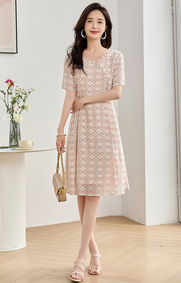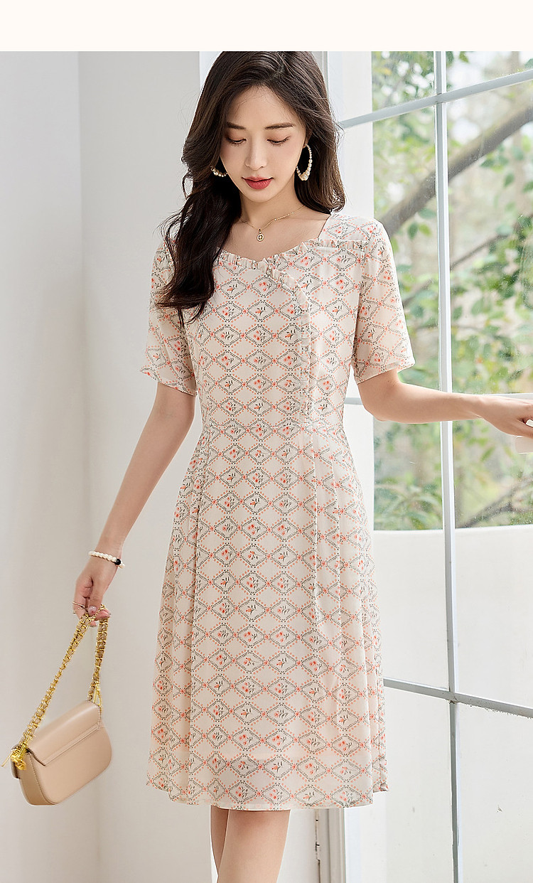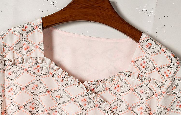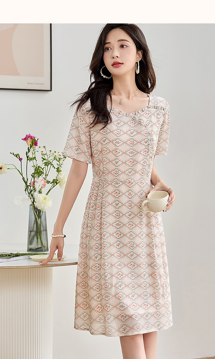商品名称:【国风淡雅仙子】夏奢享桑蚕丝印花淑女花边领连衣裙 073217