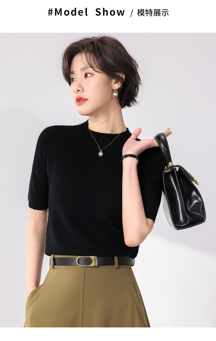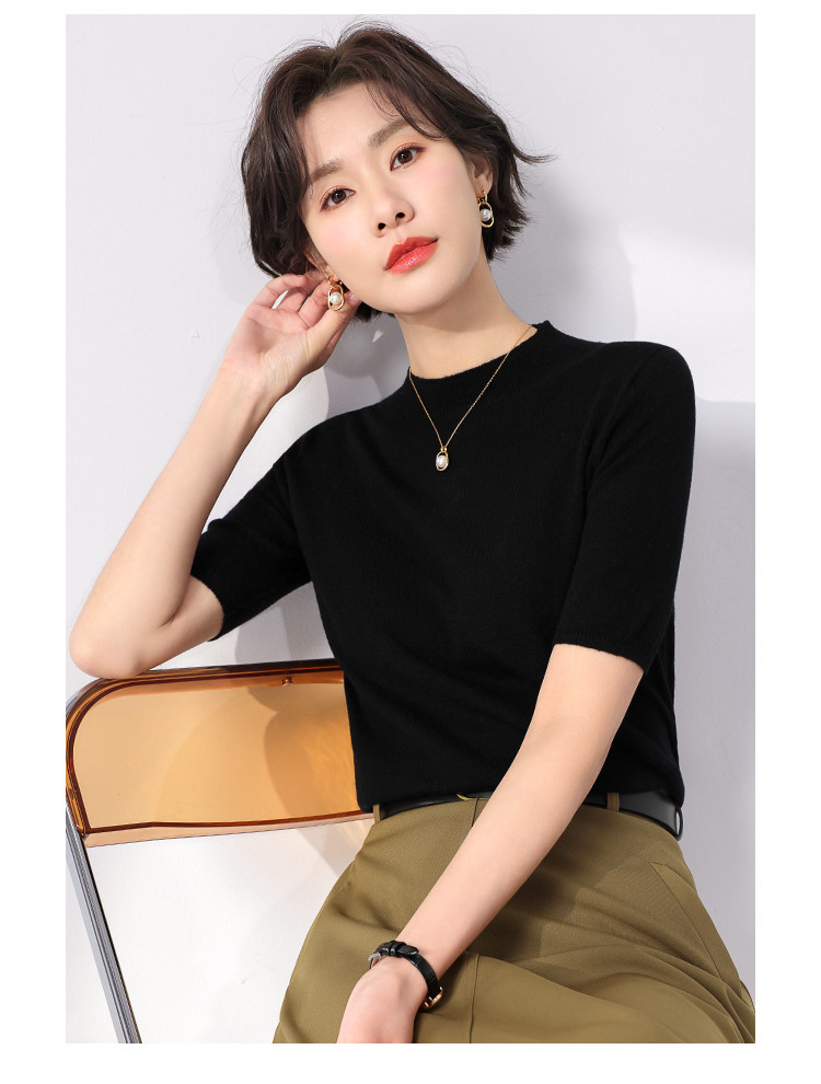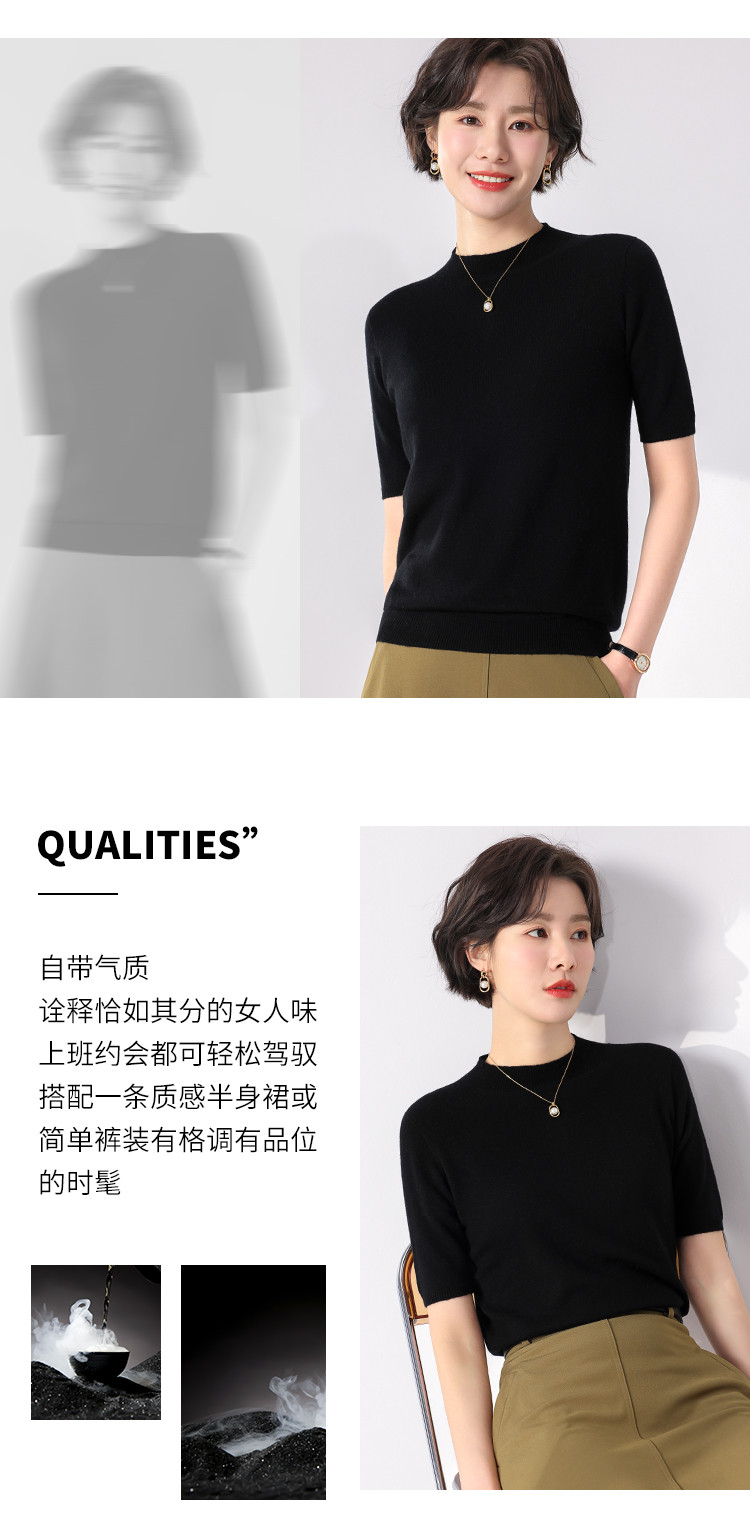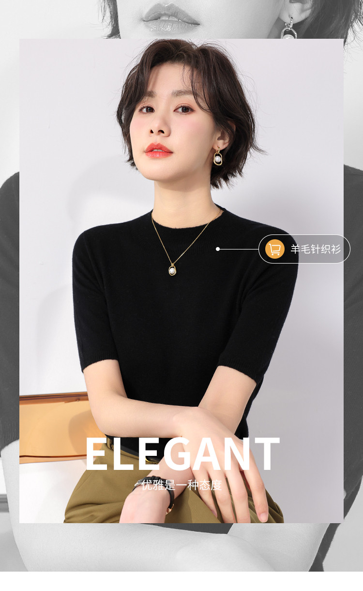 商品名称:【100%绵羊毛】无缝纯色半高领织衫修身短袖T恤女式羊毛衫春 944595