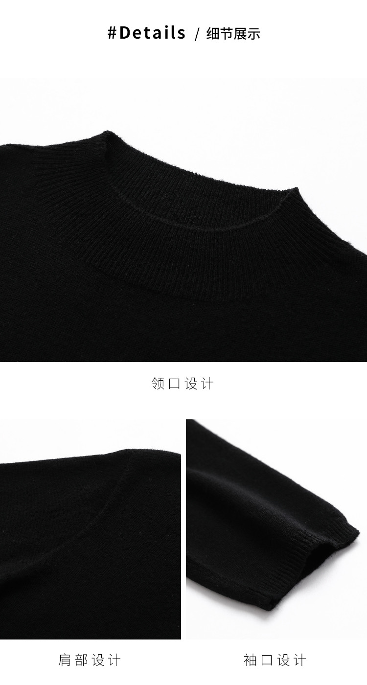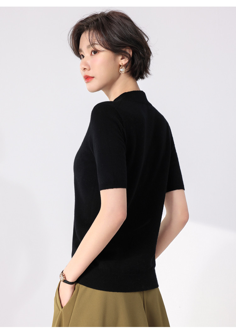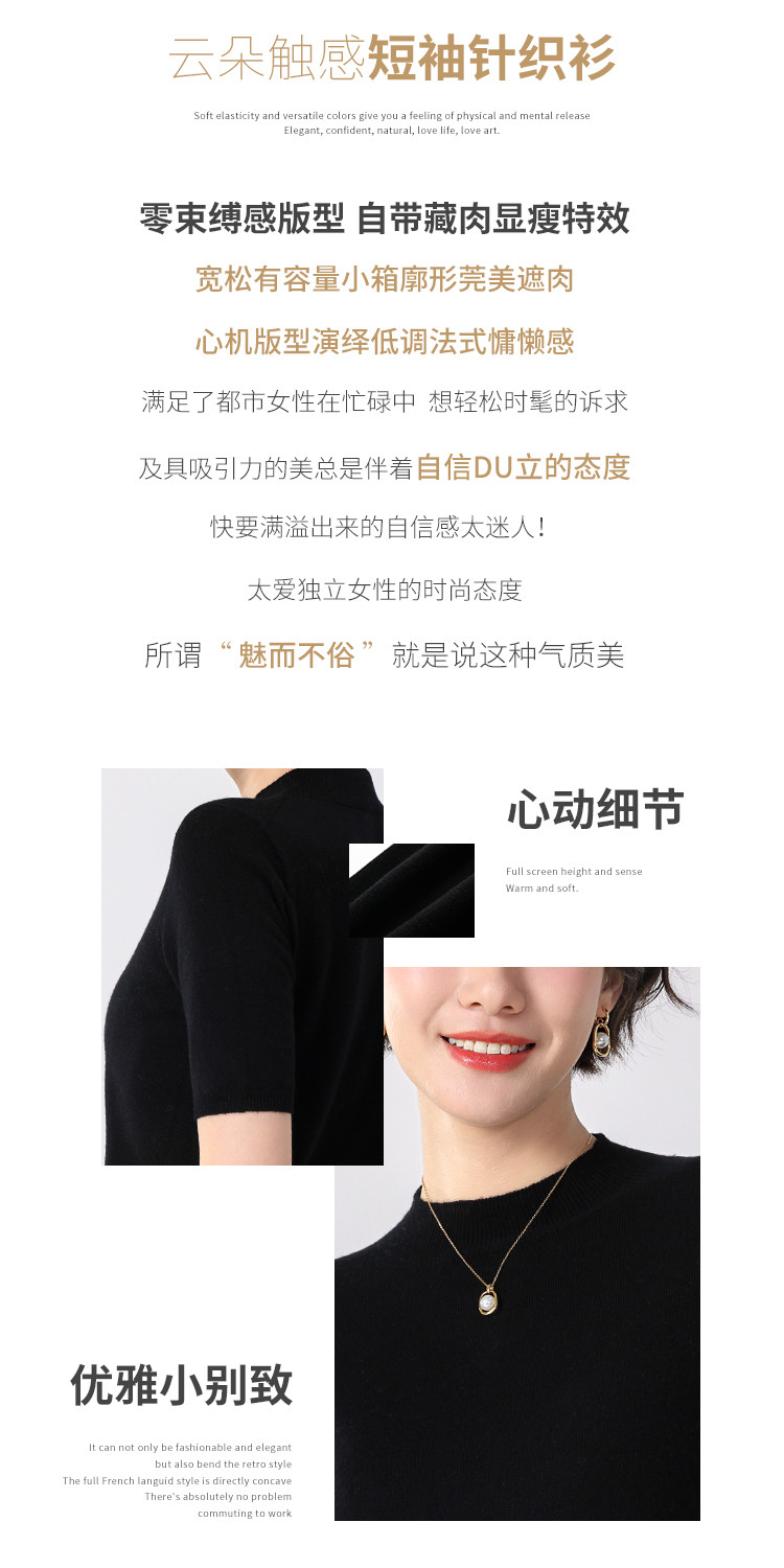 商品名称:【100%绵羊毛】无缝纯色半高领织衫修身短袖T恤女式羊毛衫春 944595