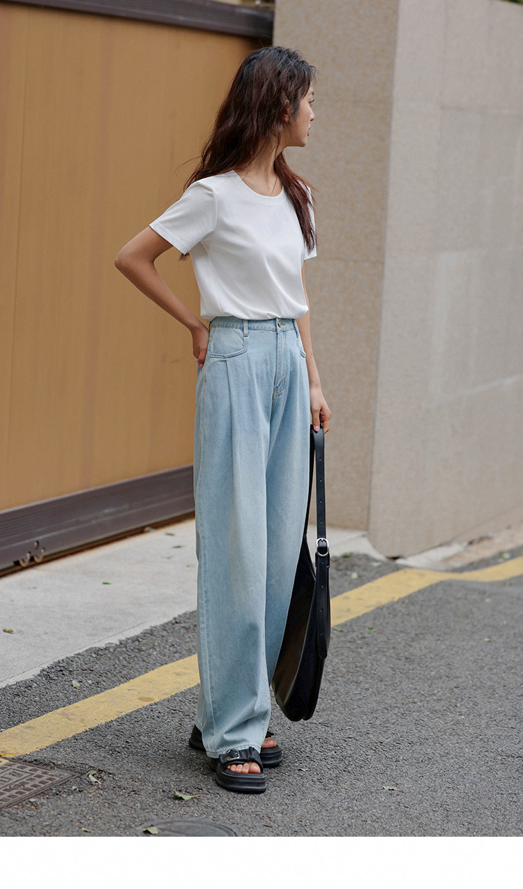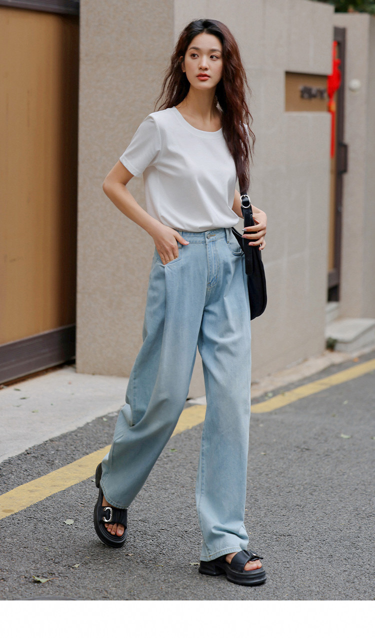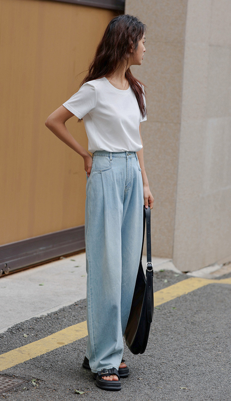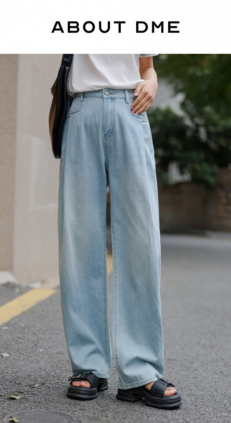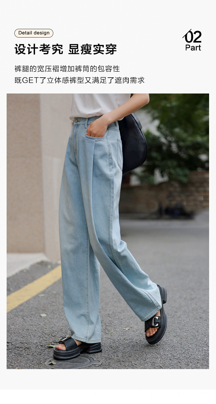 【浅蓝垂坠感牛仔裤】夏款方形口袋设计压褶牛仔裤女 164866