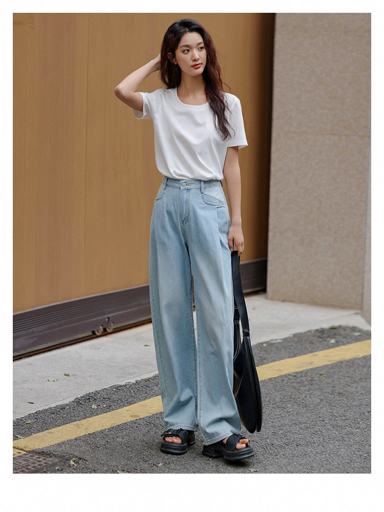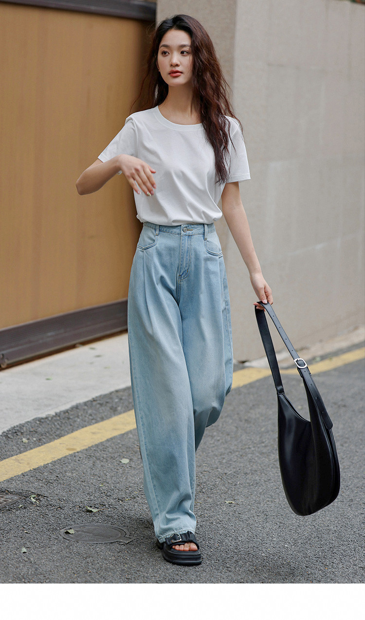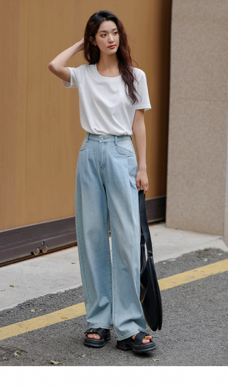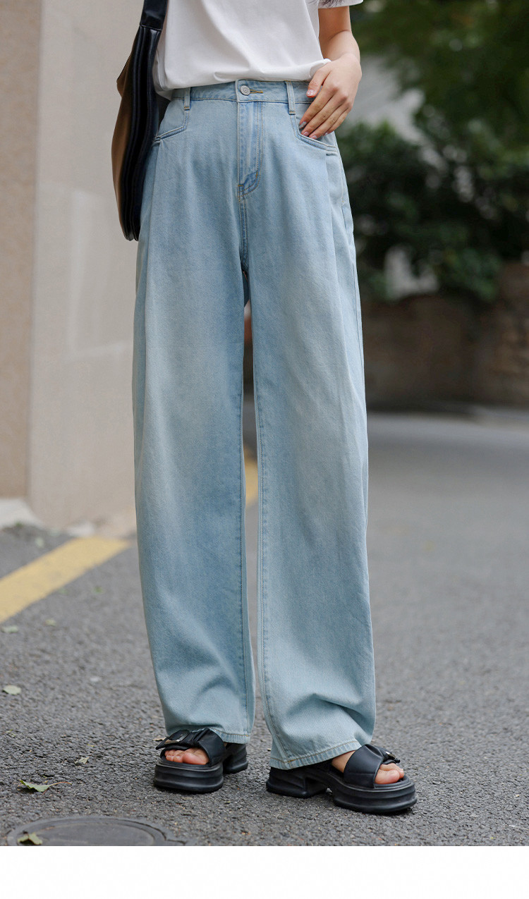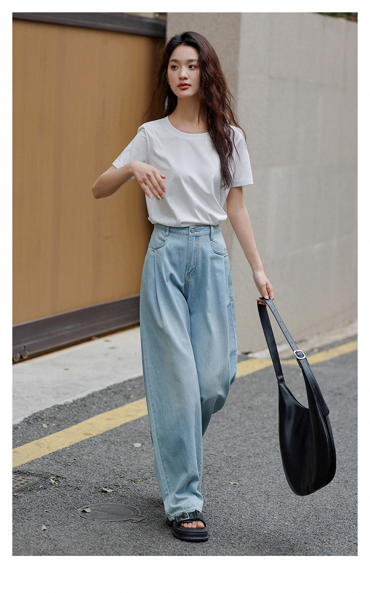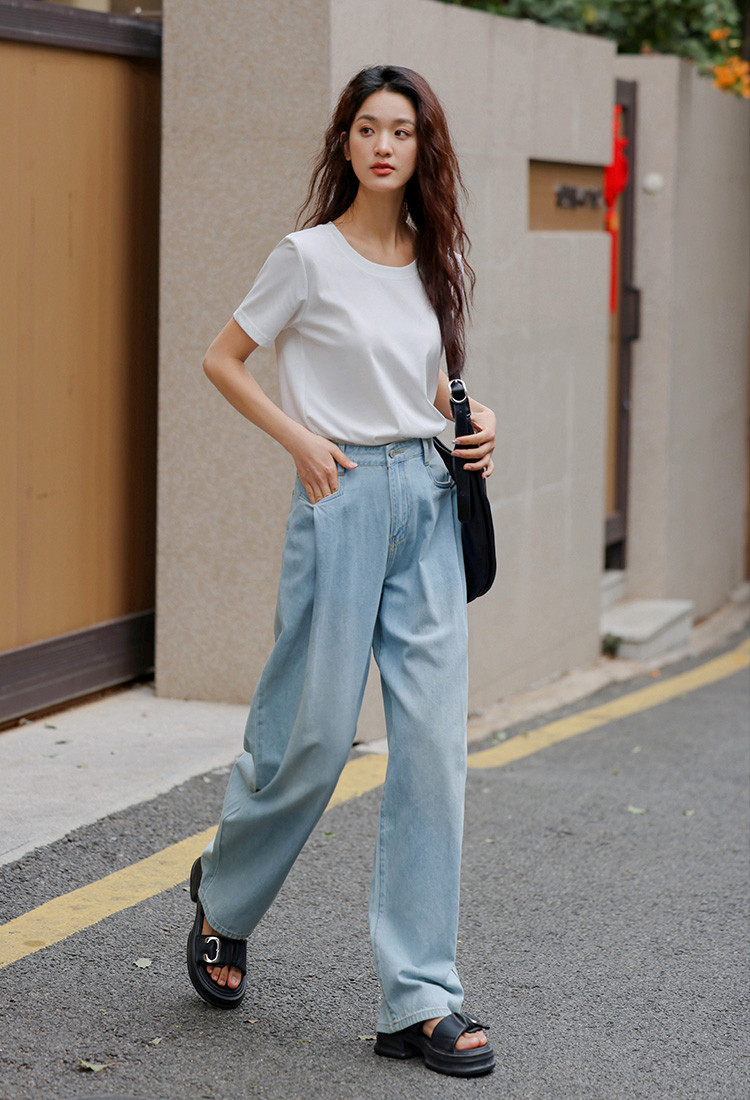 【浅蓝垂坠感牛仔裤】夏款方形口袋设计压褶牛仔裤女 164866