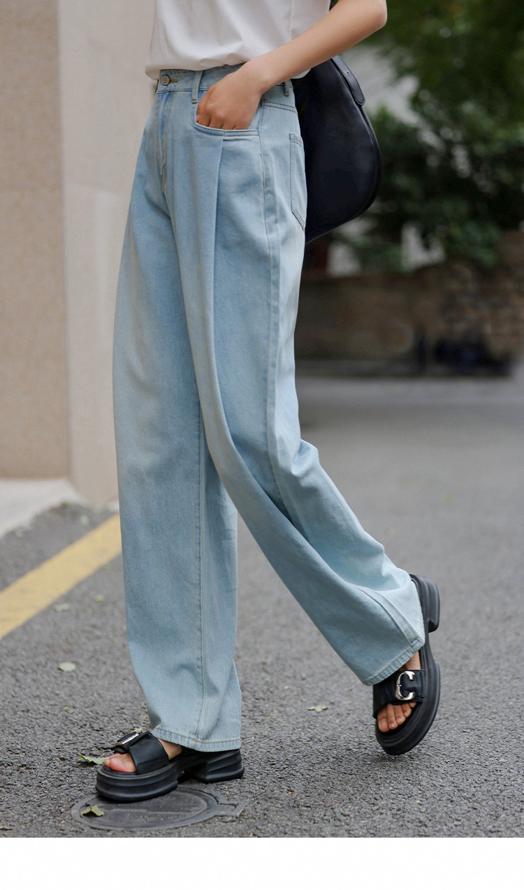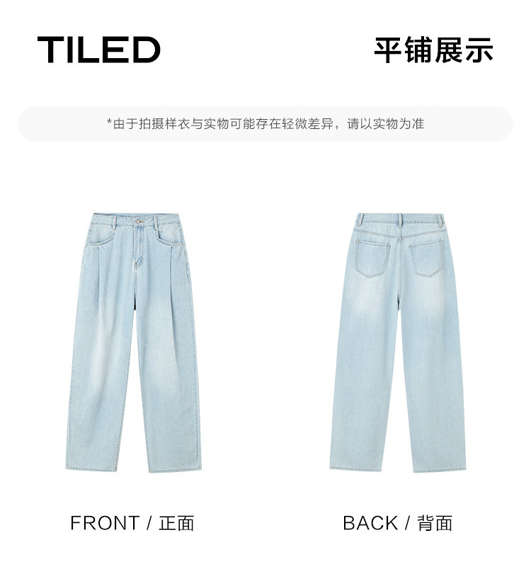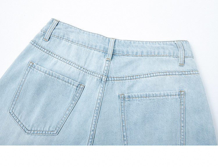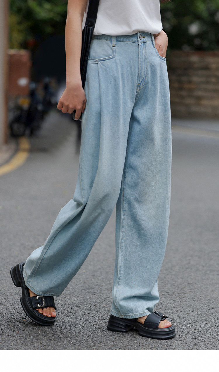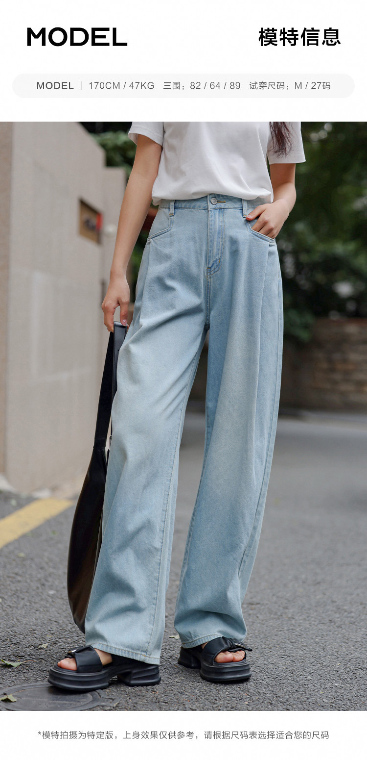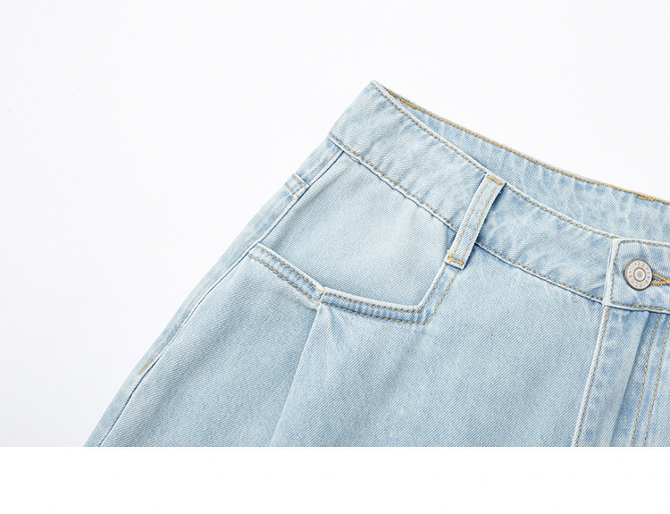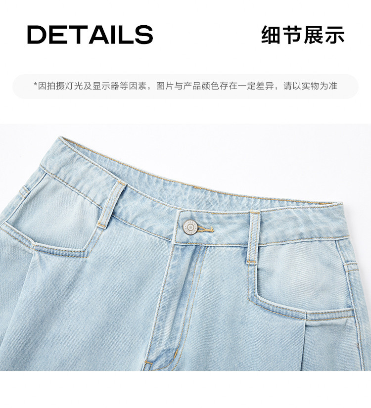 商品名称:【浅蓝垂坠感牛仔裤】夏款方形口袋设计压褶牛仔裤女 164866