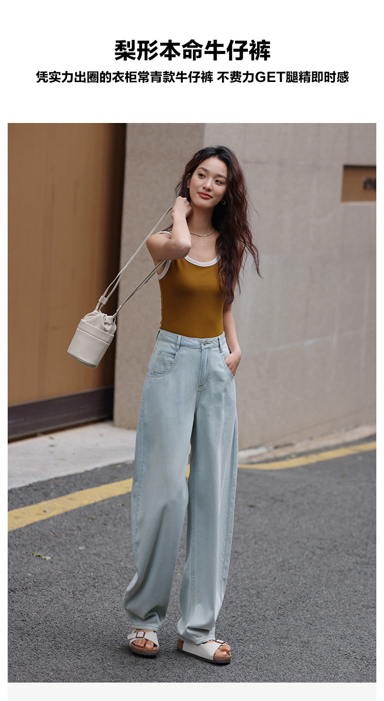 商品名称:【高腰堆堆牛仔裤】夏宽松显瘦灯笼造型哈伦牛仔裤女 691330