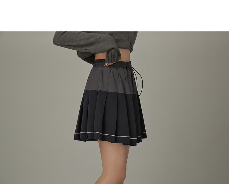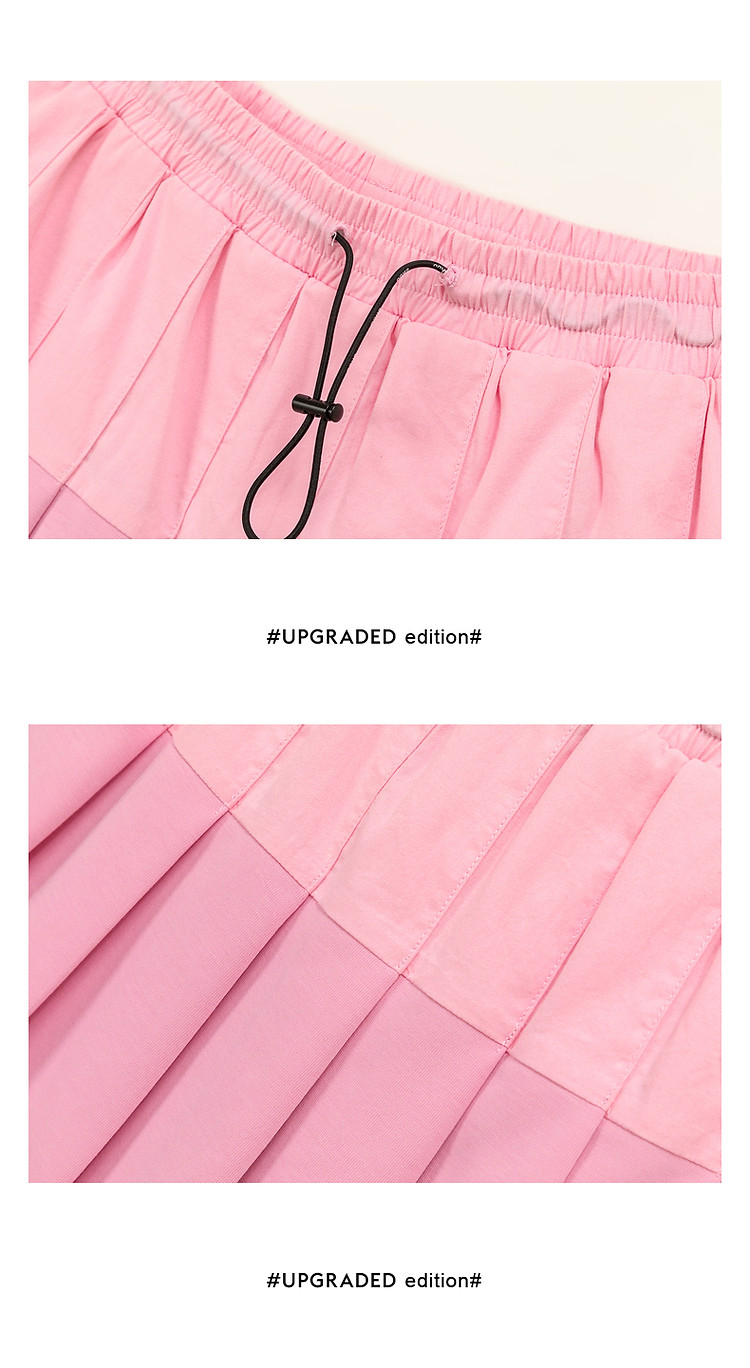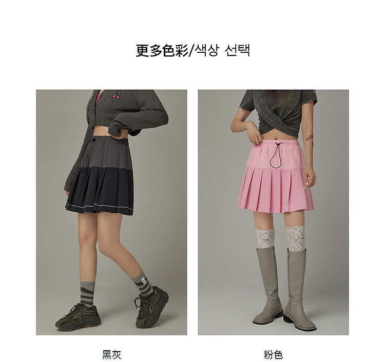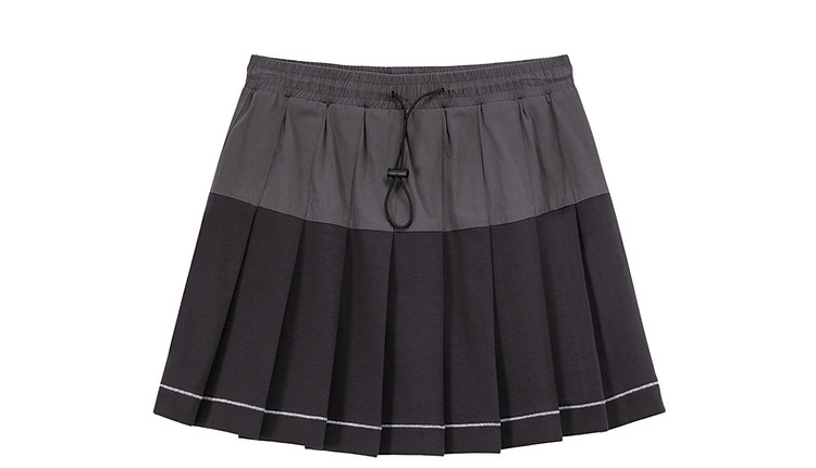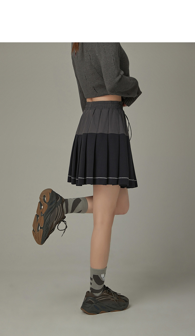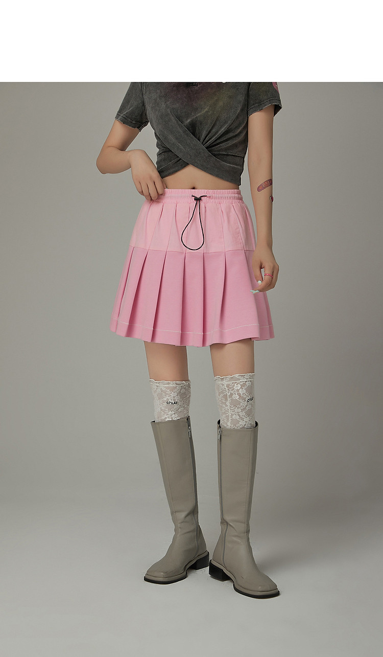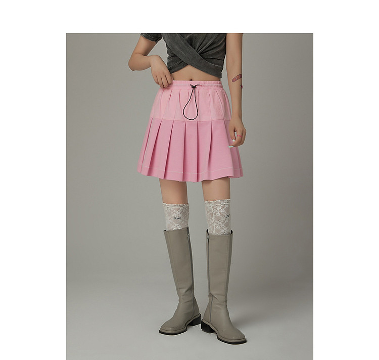 商品名称:百褶半身裙女春秋运动学院风抽绳松紧腰鸳鸯a字短裙 674835