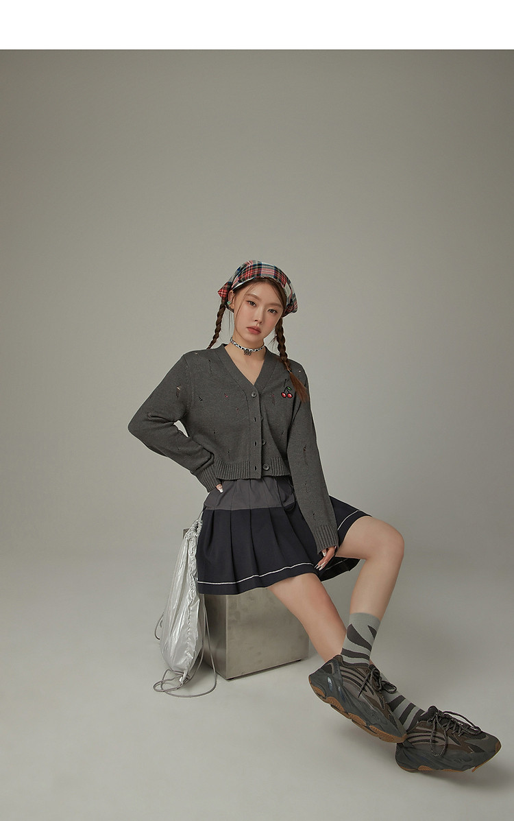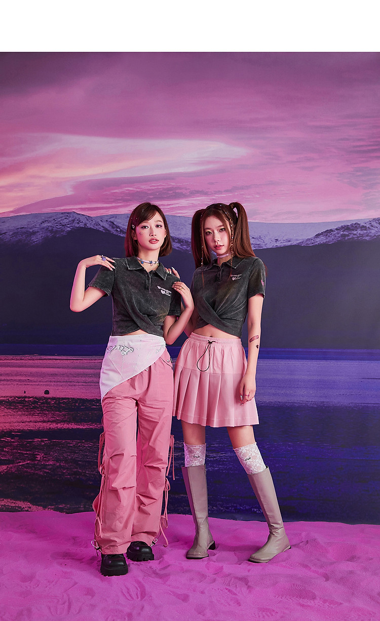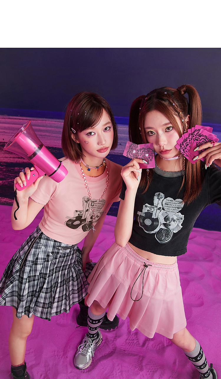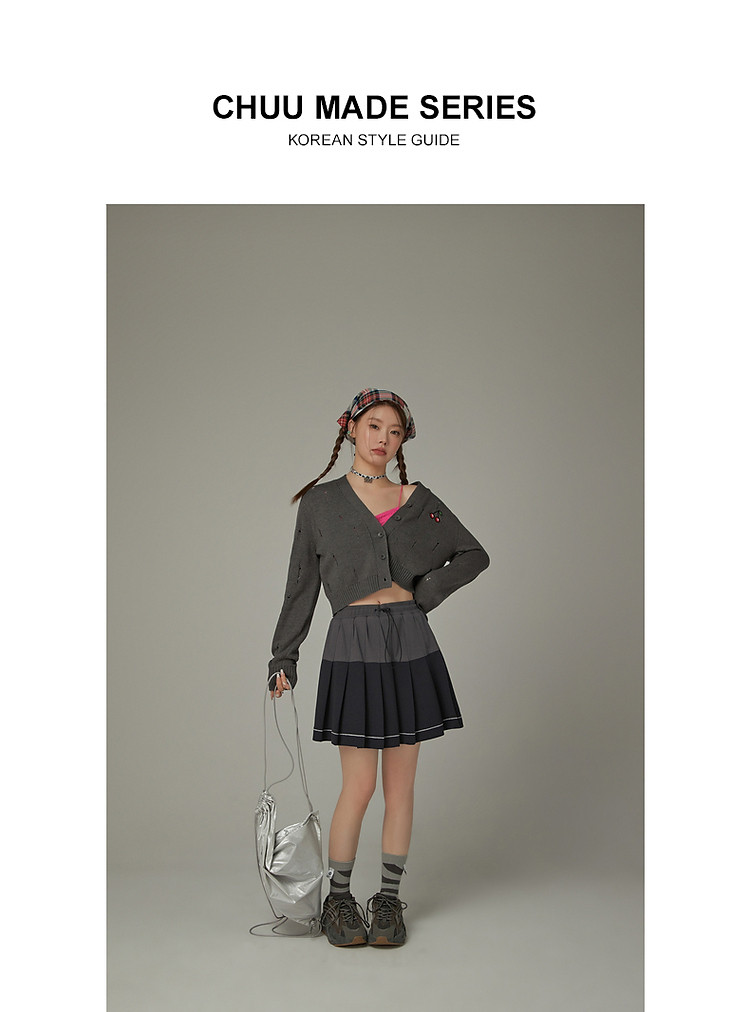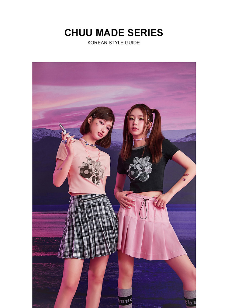 商品名称:百褶半身裙女春秋运动学院风抽绳松紧腰鸳鸯a字短裙 674835