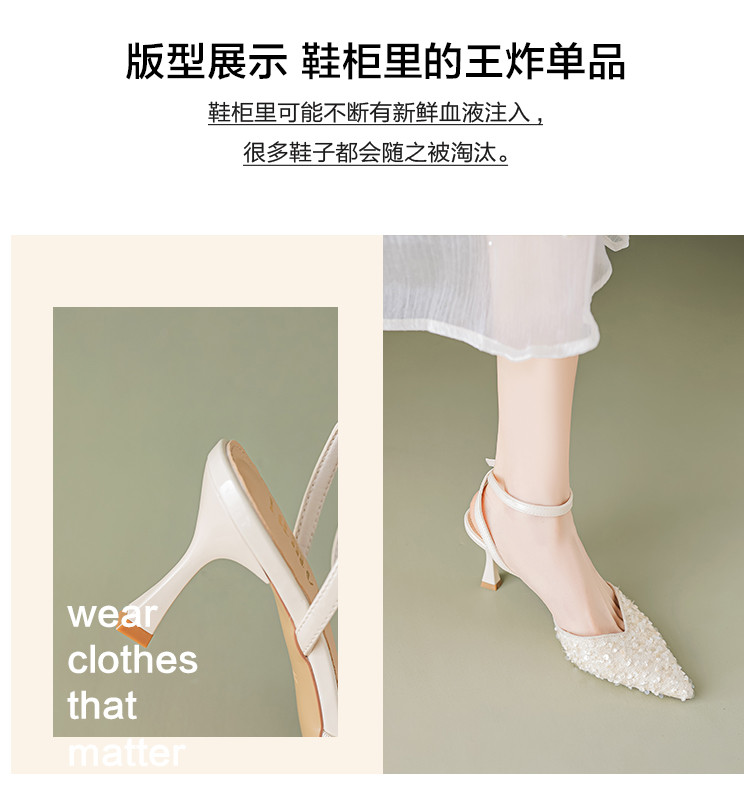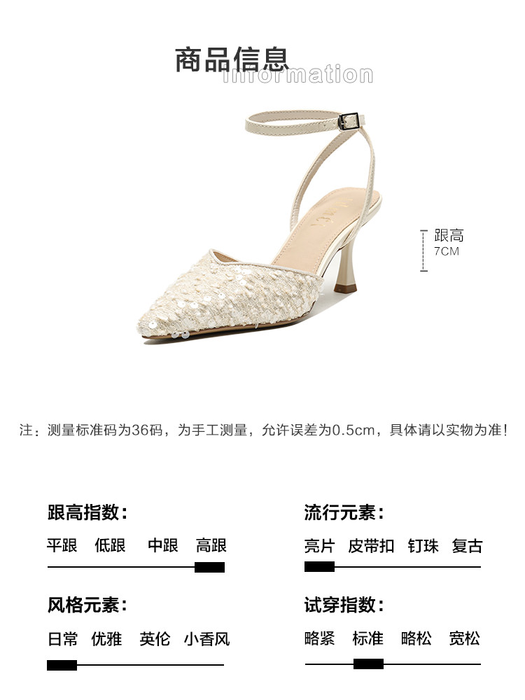 商品名称:夏季气质高级感亮片仙女风百搭尖头女凉鞋优雅礼服鞋 538881