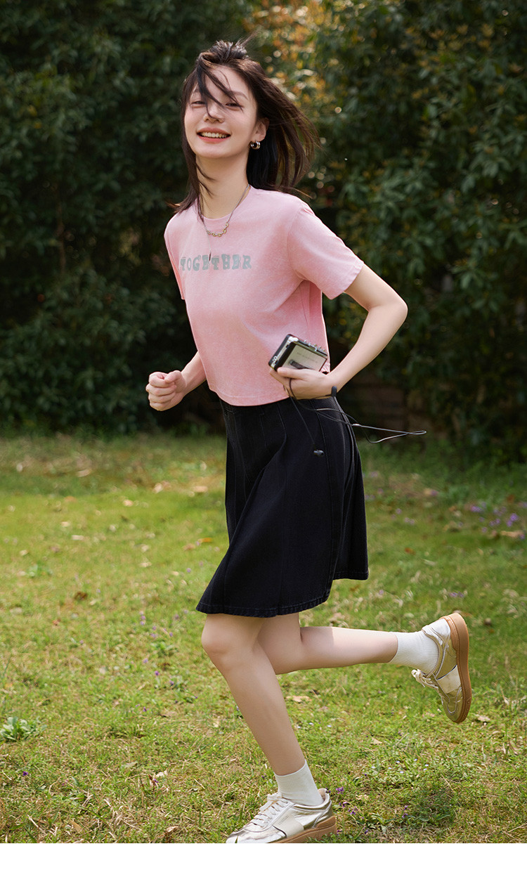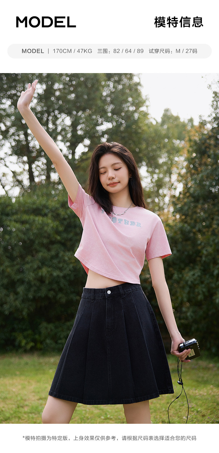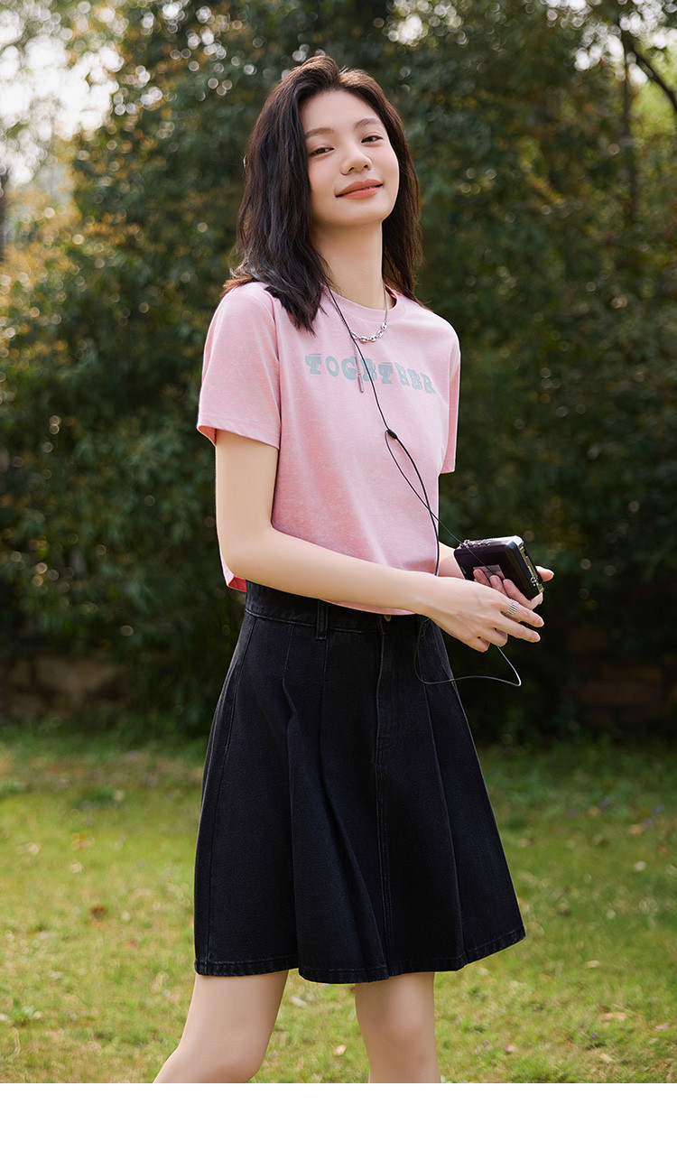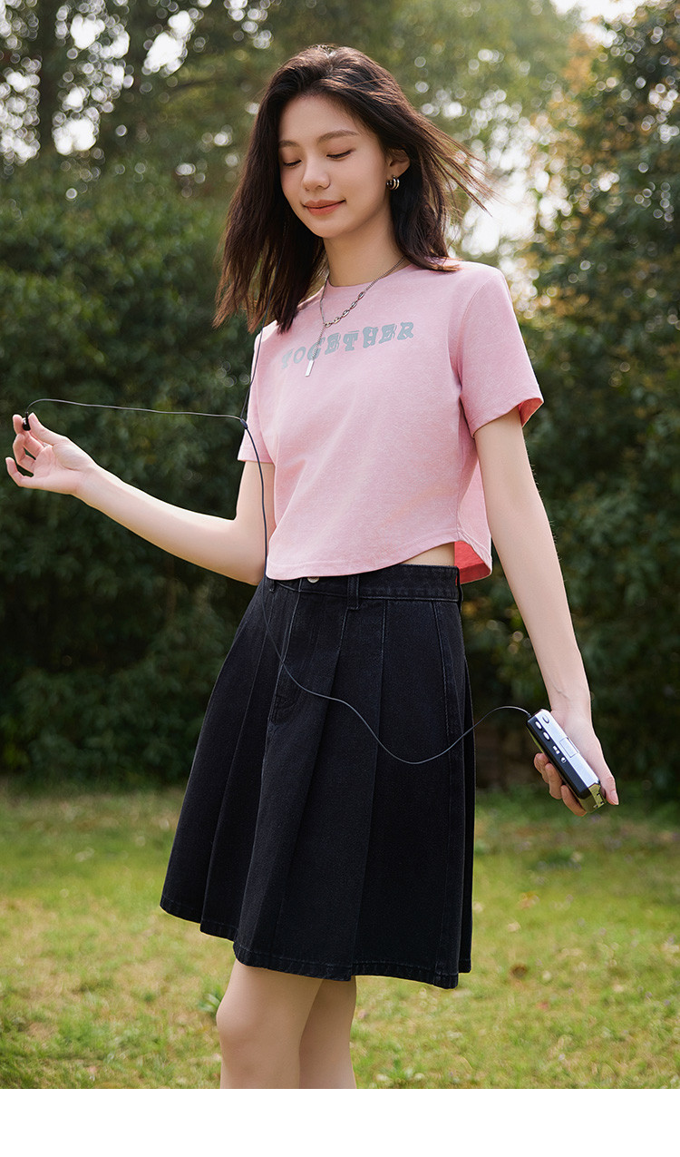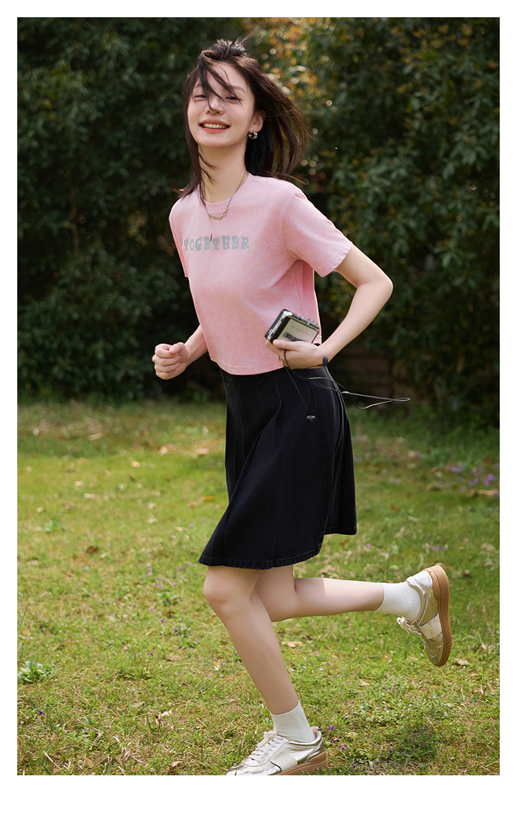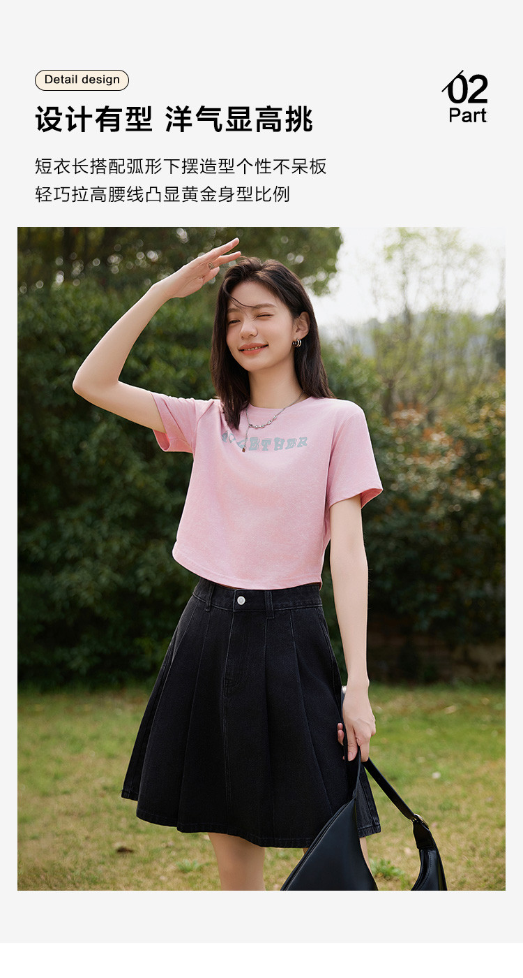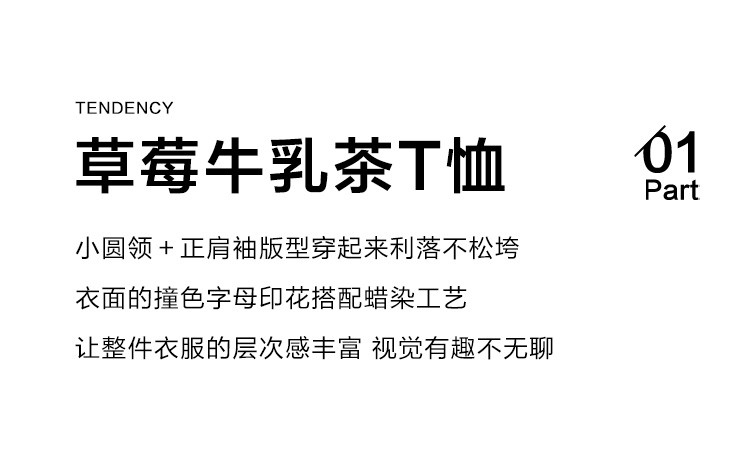 商品名称:【草莓牛乳字母印花T恤】夏款少女圆领不规则下摆短袖女 046978