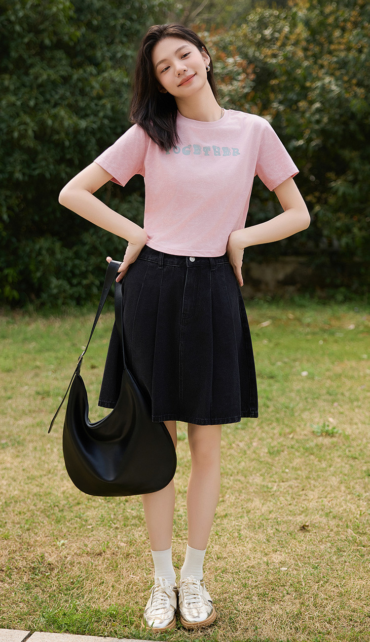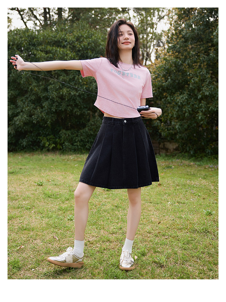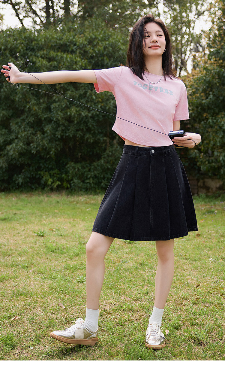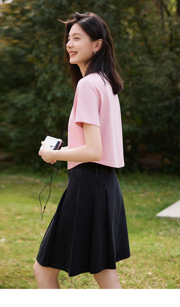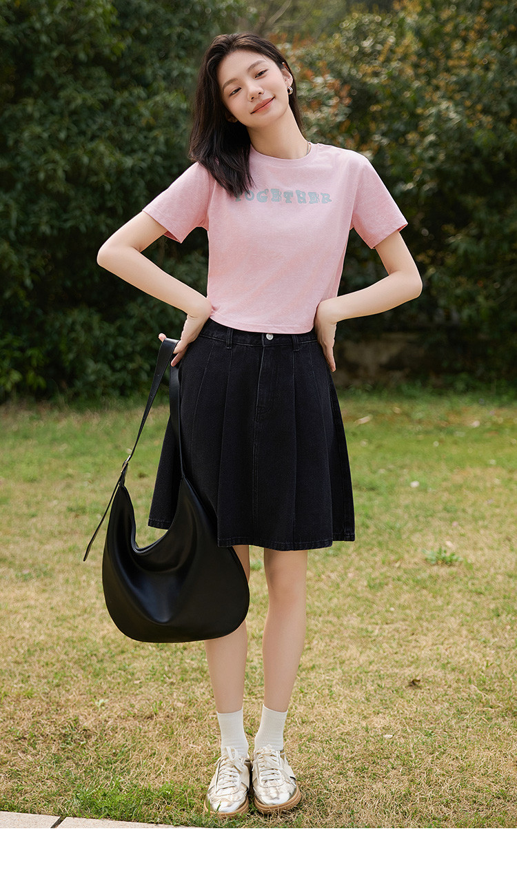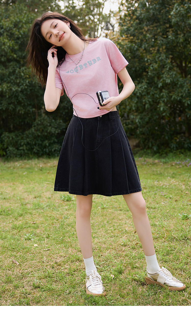 商品名称:【草莓牛乳字母印花T恤】夏款少女圆领不规则下摆短袖女 046978