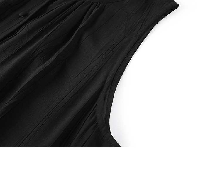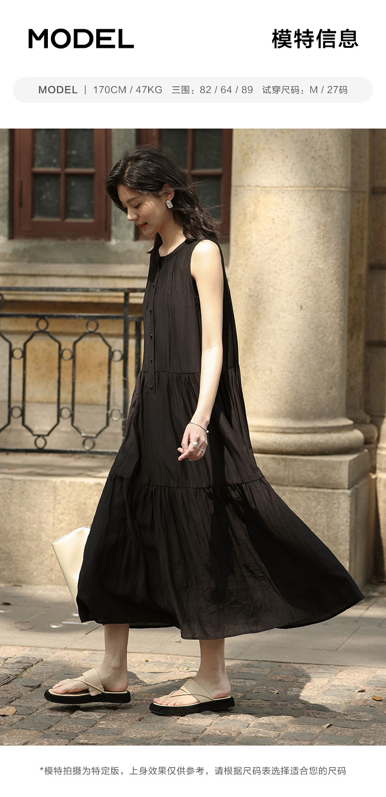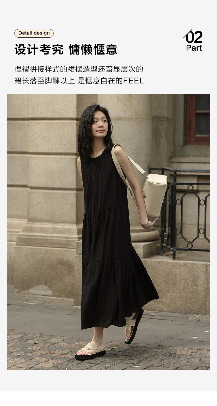 商品名称:【舒适简约小黑裙】夏款圆领半门襟无袖侧口袋长款连衣裙 063362