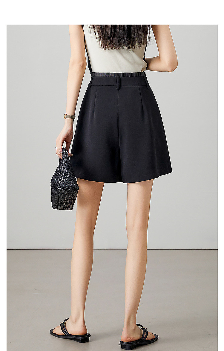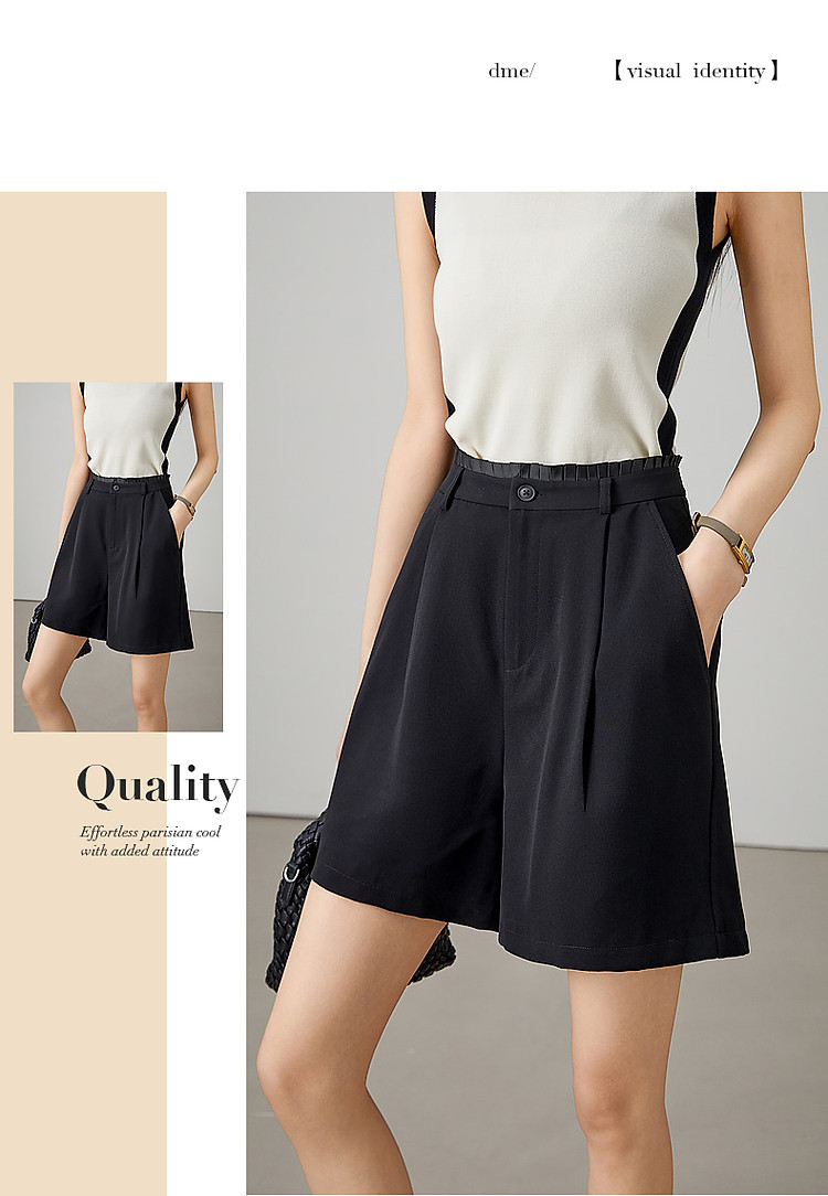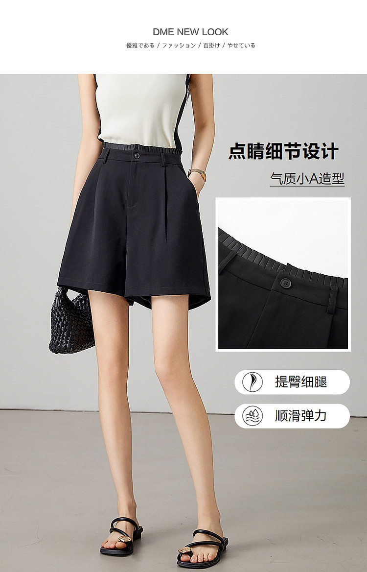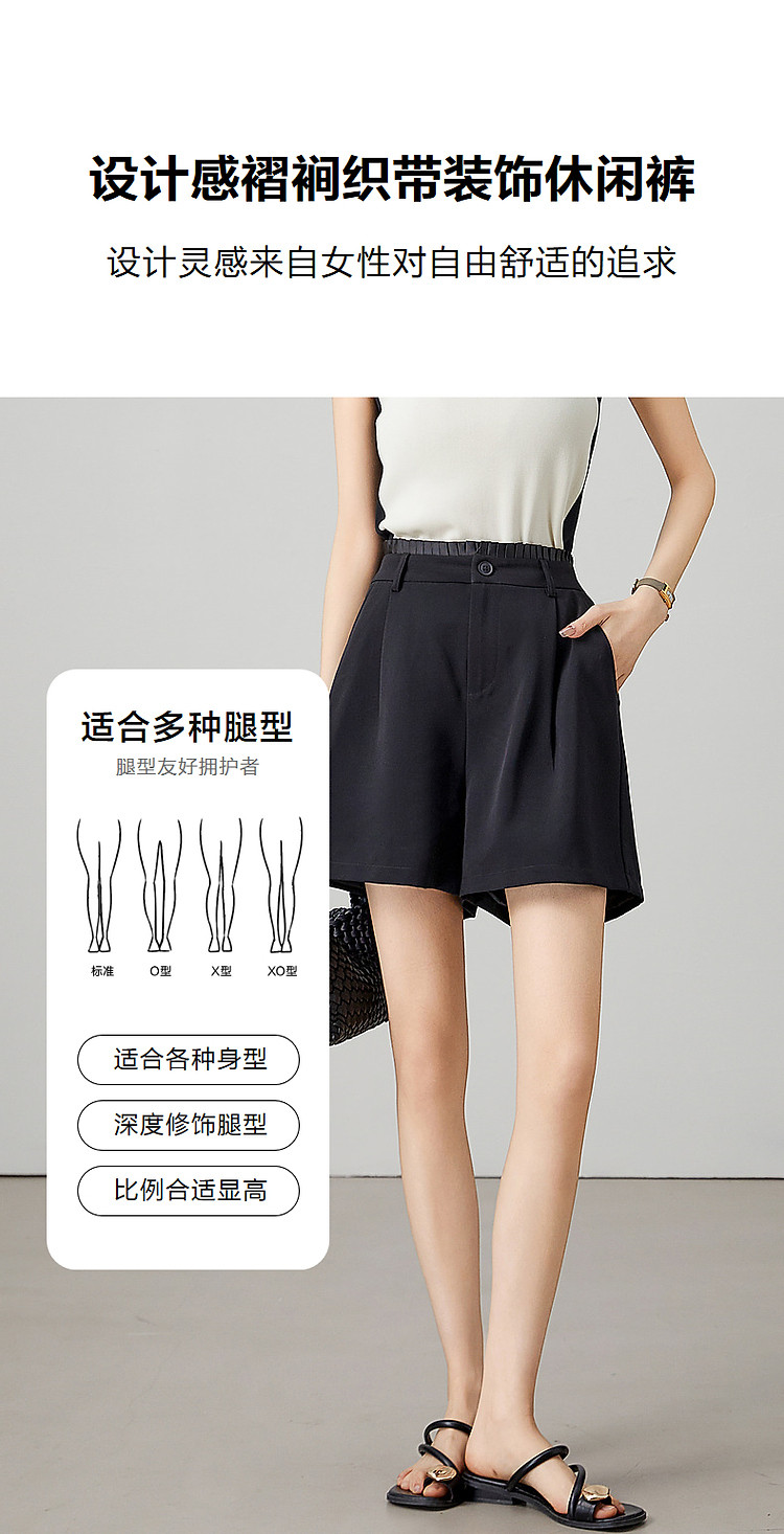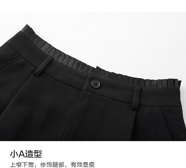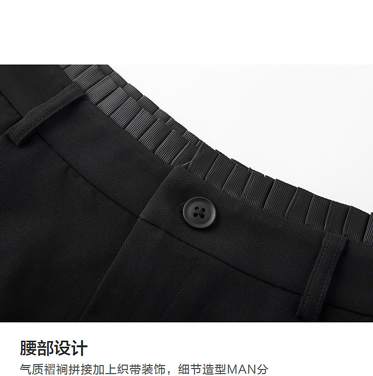 商品名称:【都市简约通勤】夏新腰部褶裥拼接织带显瘦乱麻四面弹小A休闲裤 184577