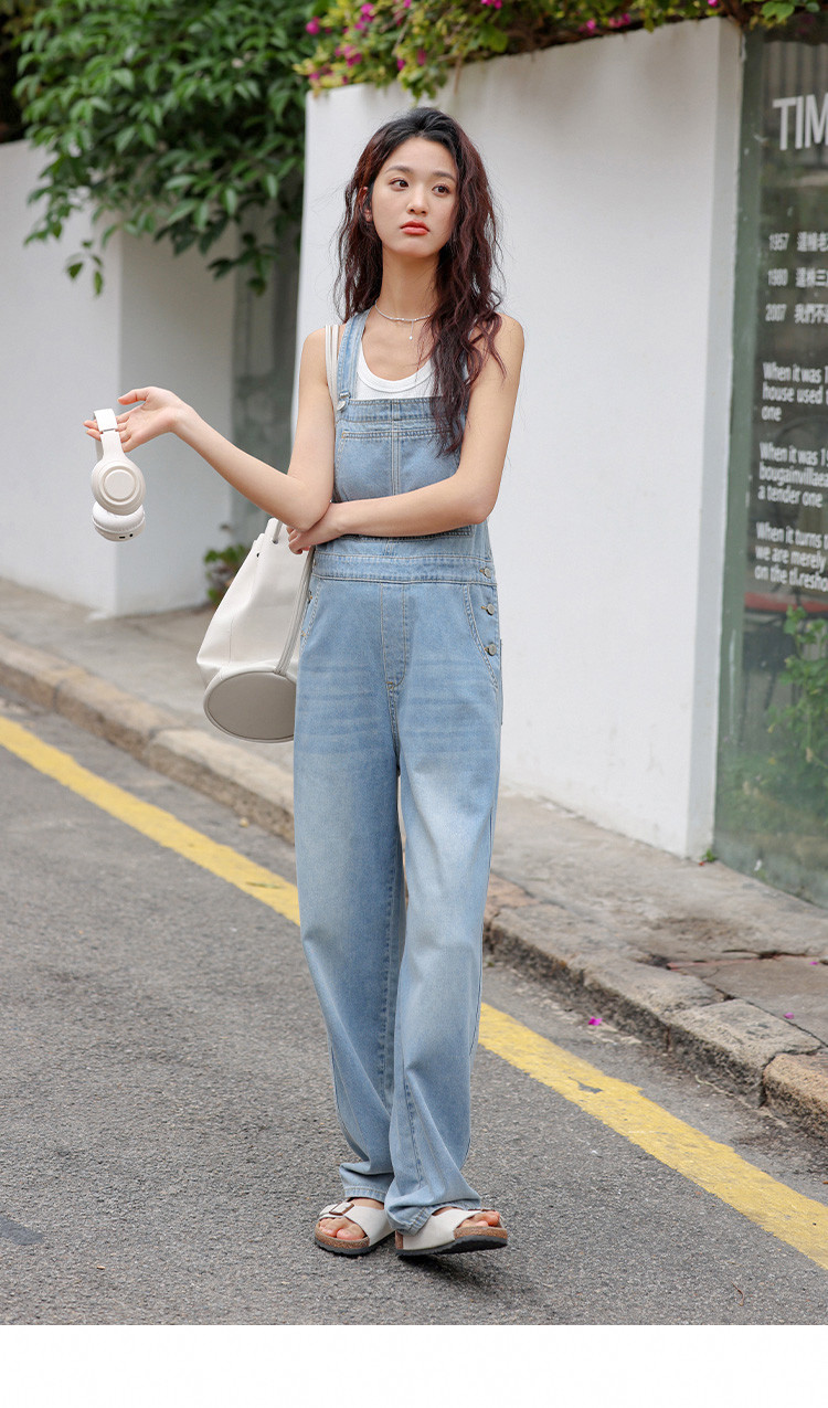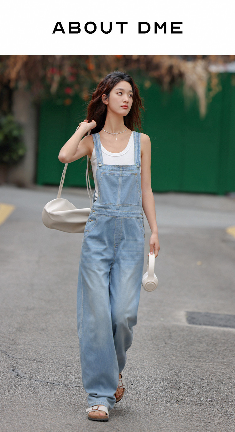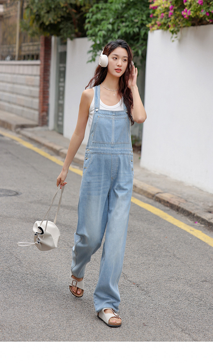 【清爽浅蓝背带牛仔裤】夏款学院风减龄单贴袋牛仔背带裤 633986