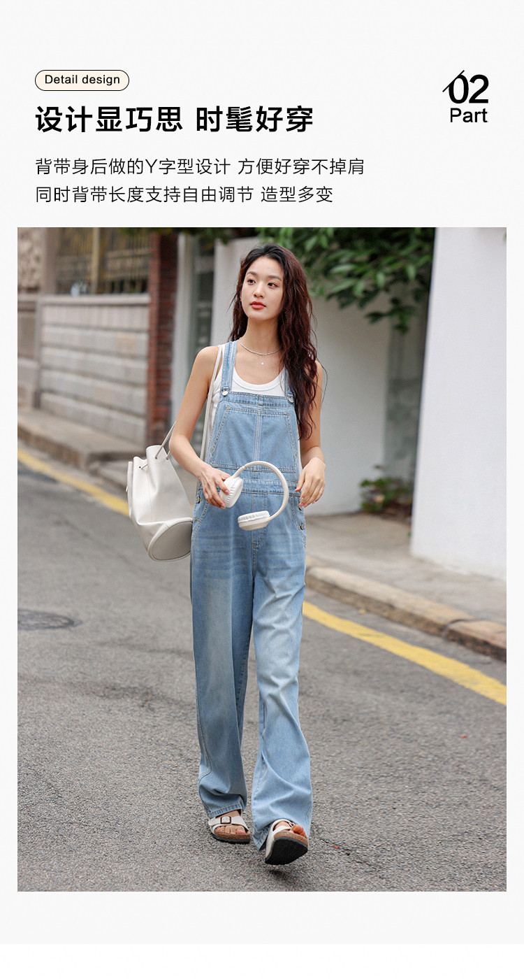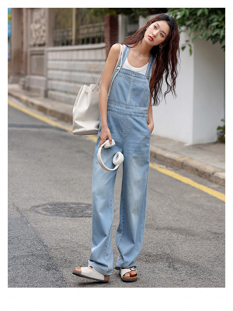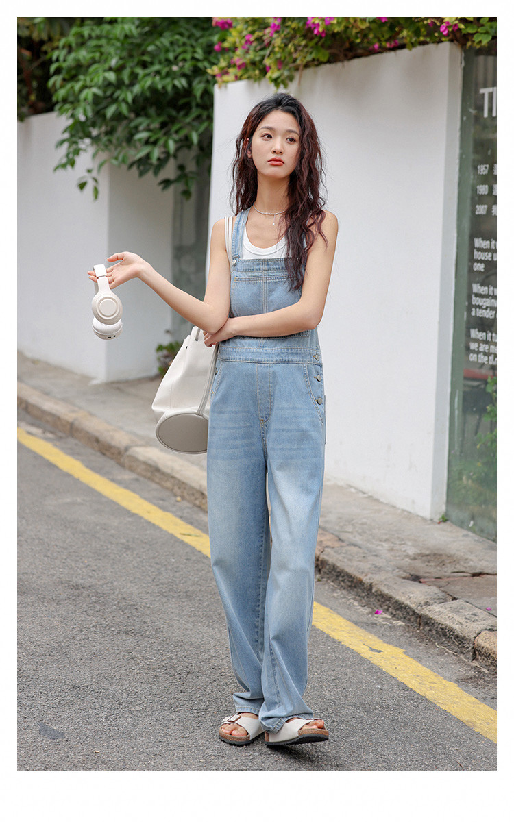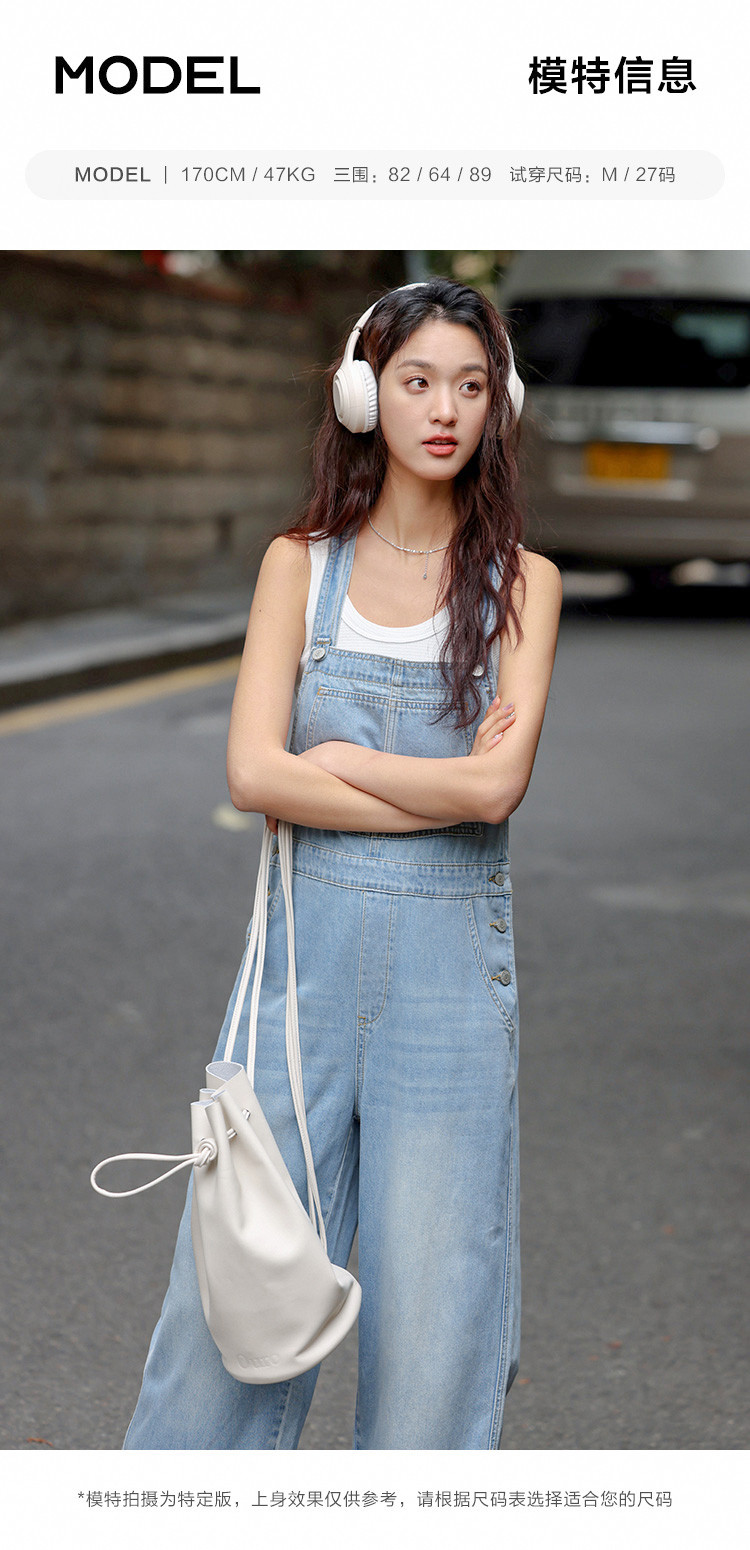 【清爽浅蓝背带牛仔裤】夏款学院风减龄单贴袋牛仔背带裤 633986
