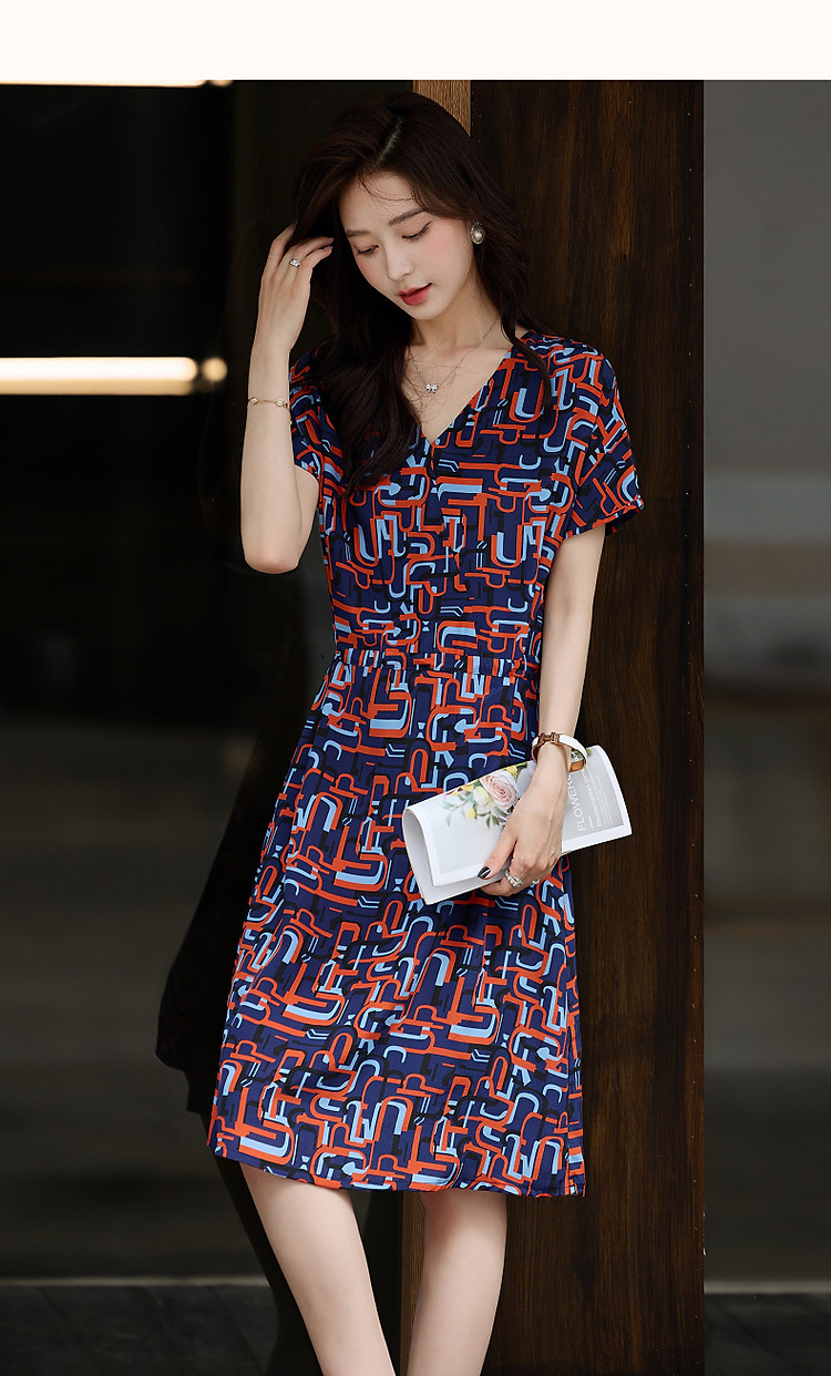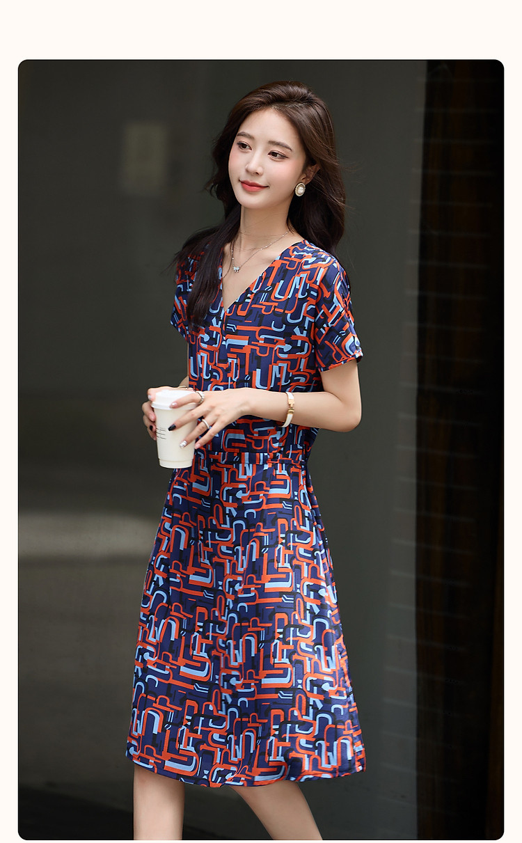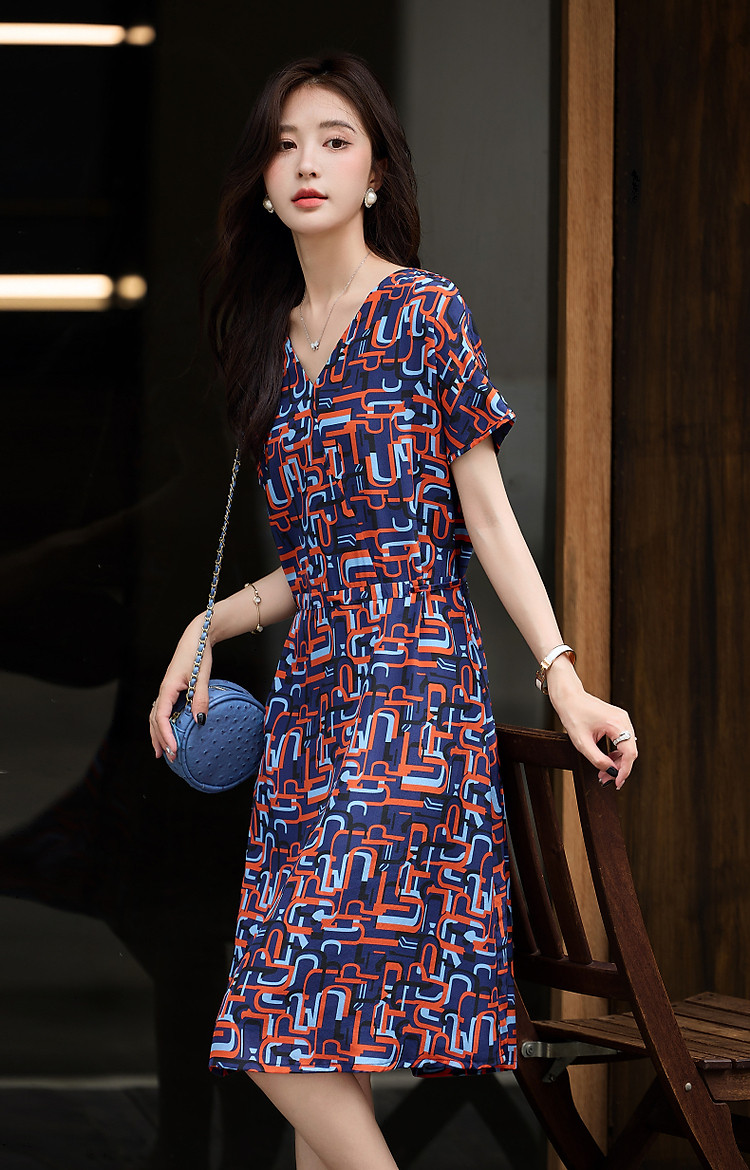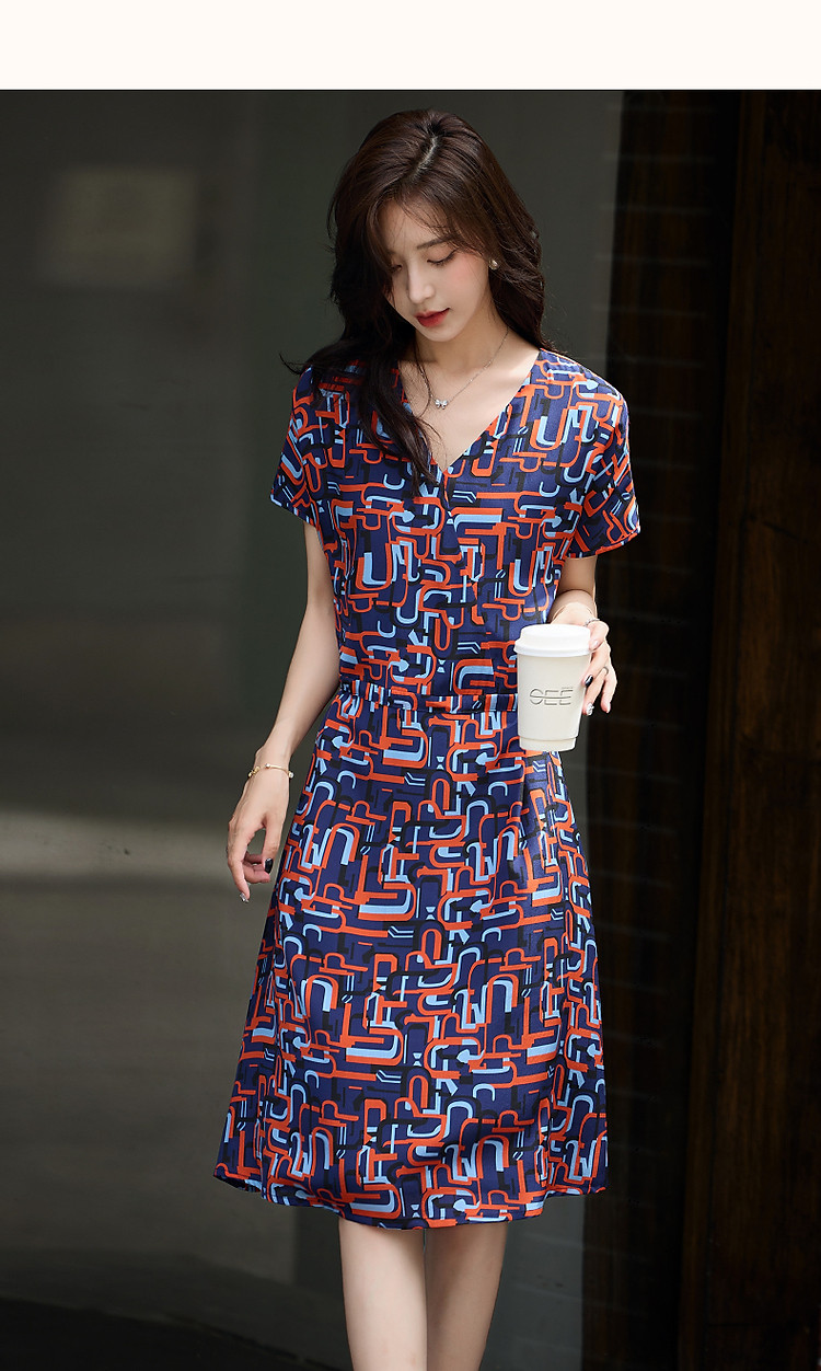 商品名称:【巴黎夜曲】夏奢享桑蚕丝碎花调节腰带a字连衣裙女 974273