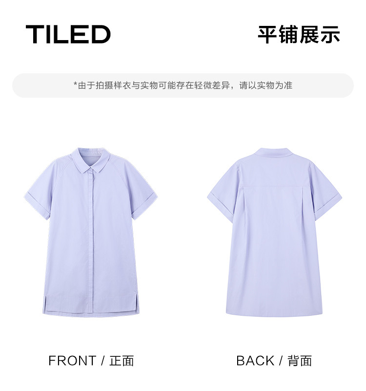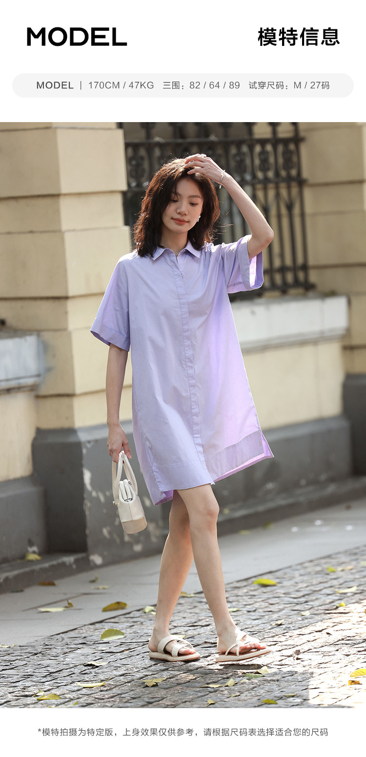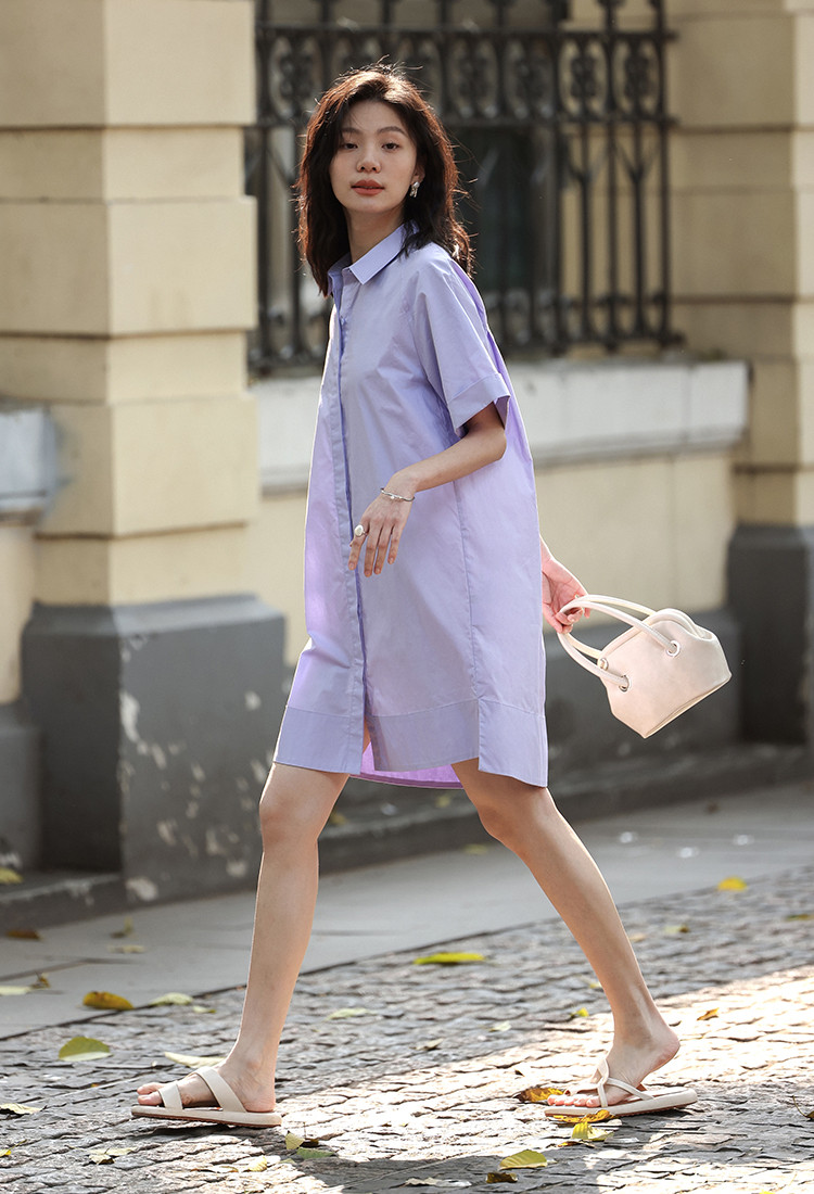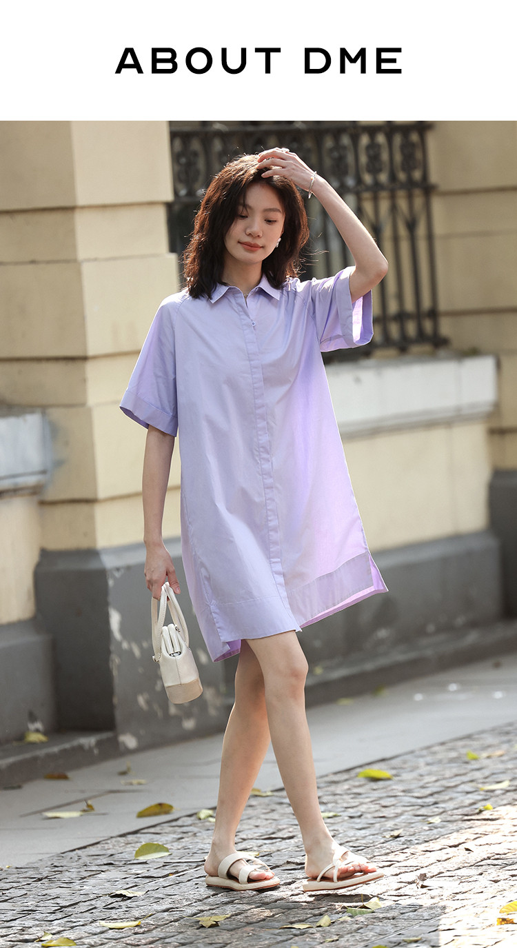 商品名称:【温柔浅紫翻领衬衫裙】夏翻边袖下摆开叉短款连衣裙 108418