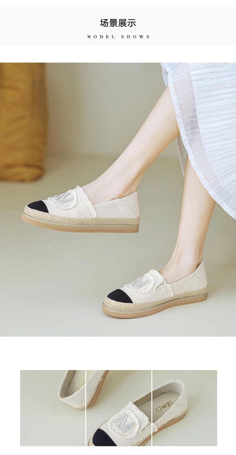 商品名称:春夏时尚百搭舒适透气撞色流苏烫钻渔夫鞋一脚蹬 900673