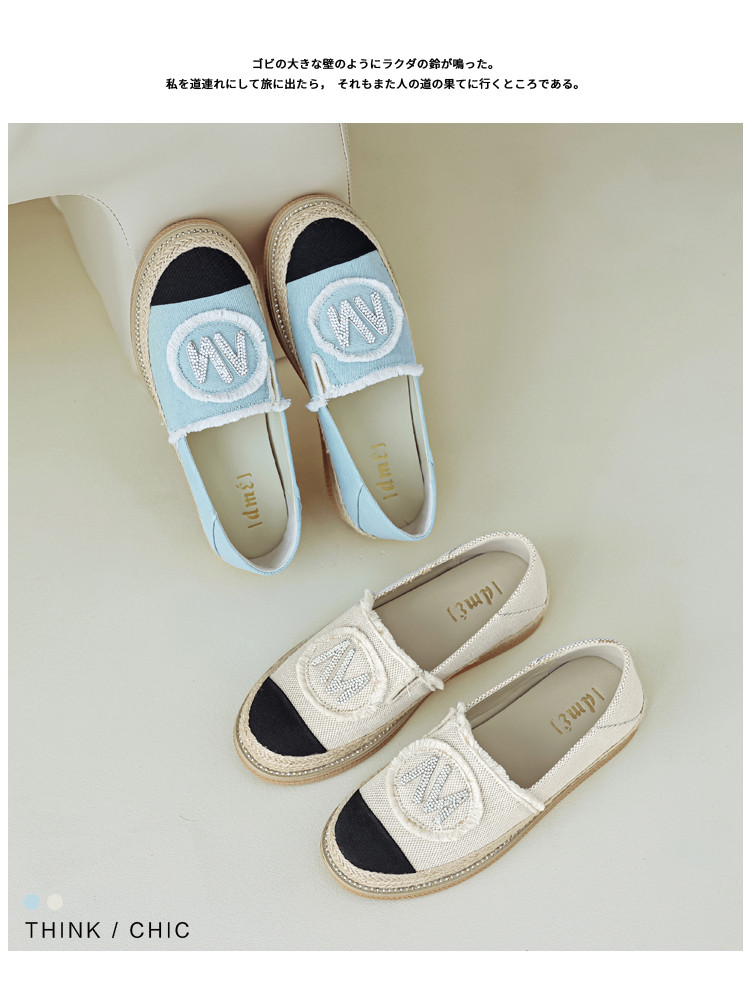 春夏时尚百搭舒适透气撞色流苏烫钻渔夫鞋一脚蹬 900673