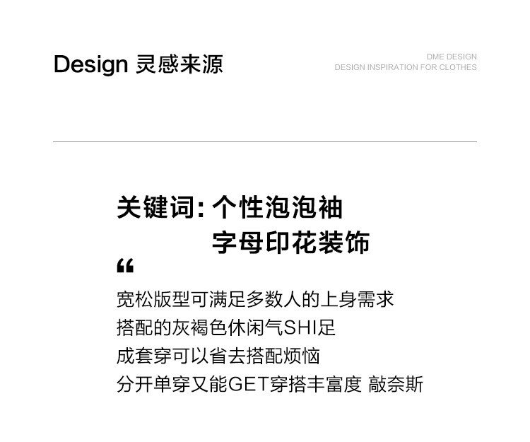 商品名称:【休闲风套装】夏款字母泡泡袖抽绳+松紧腰后开衩半裙 882242