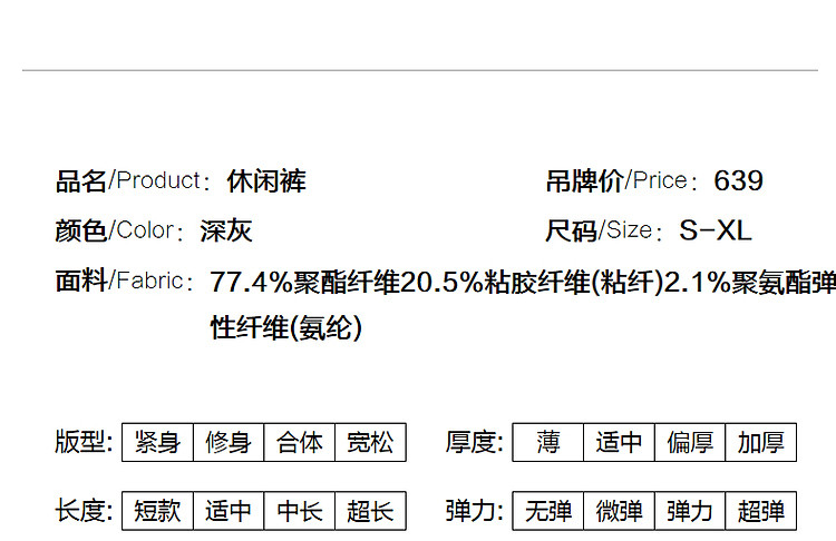 商品名称:【不挑腿型空气裤】春秋英伦风不对称拉链一粒扣直筒弹力休闲长裤 841601