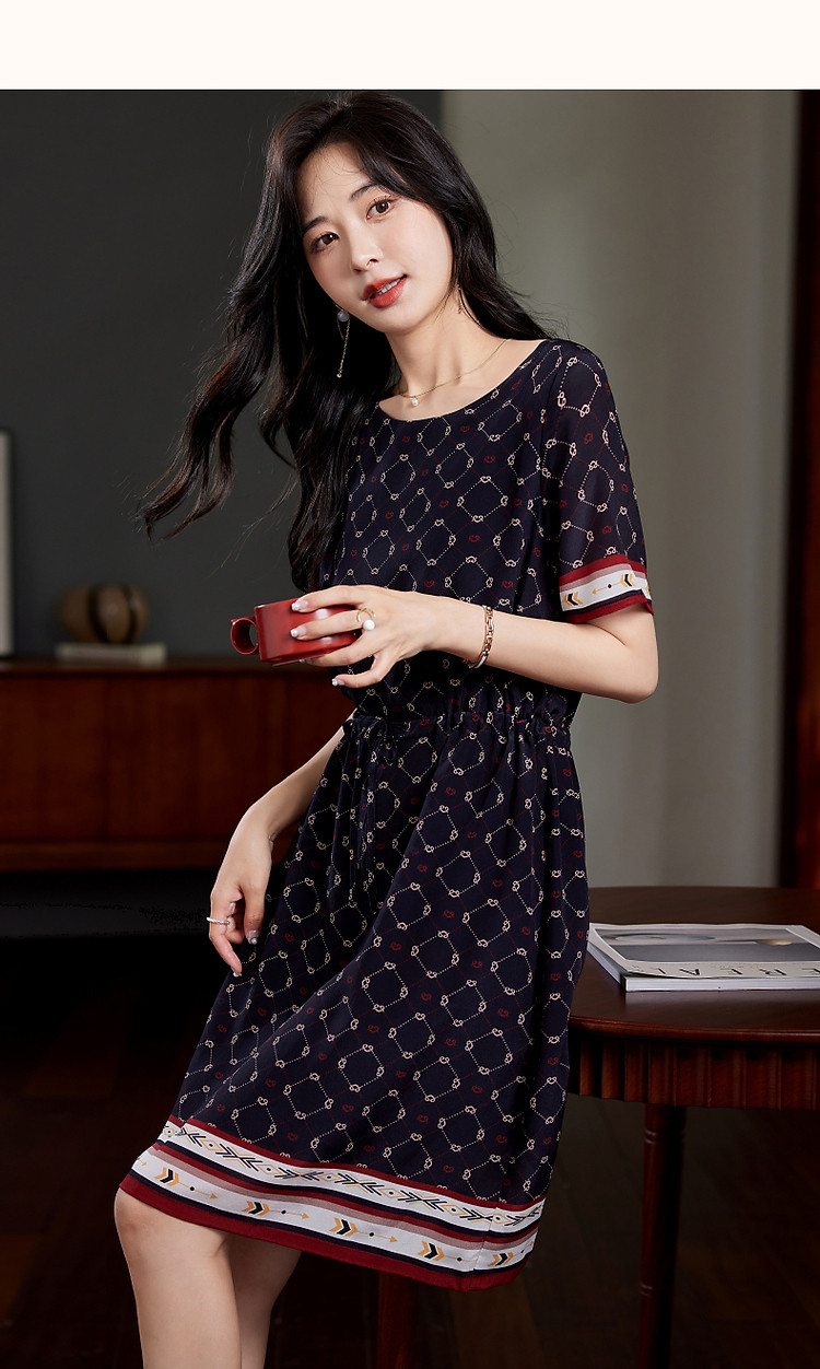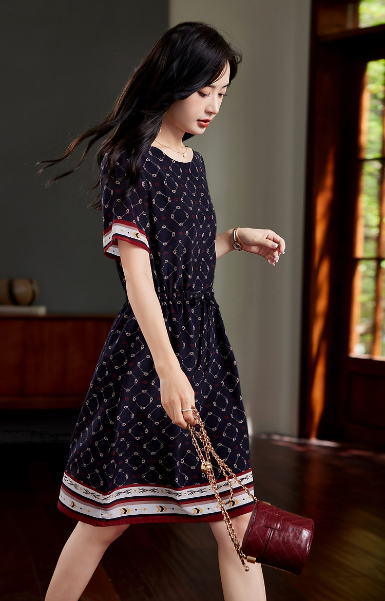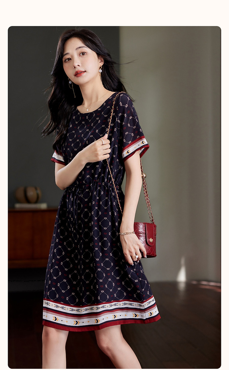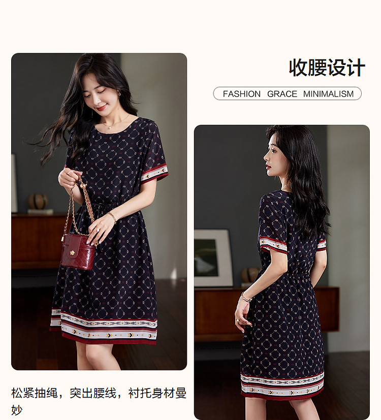 商品名称:【惜华年】春国风新中式高阶桑蚕丝真丝印花抽绳连衣裙女 580353