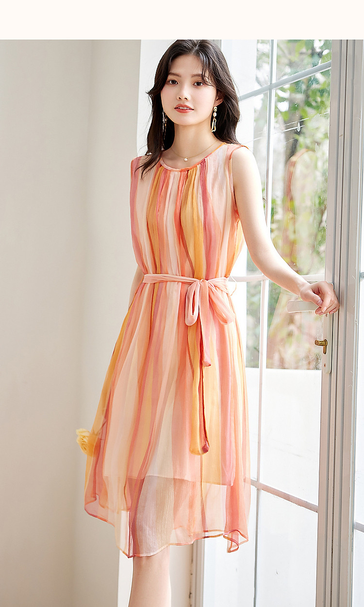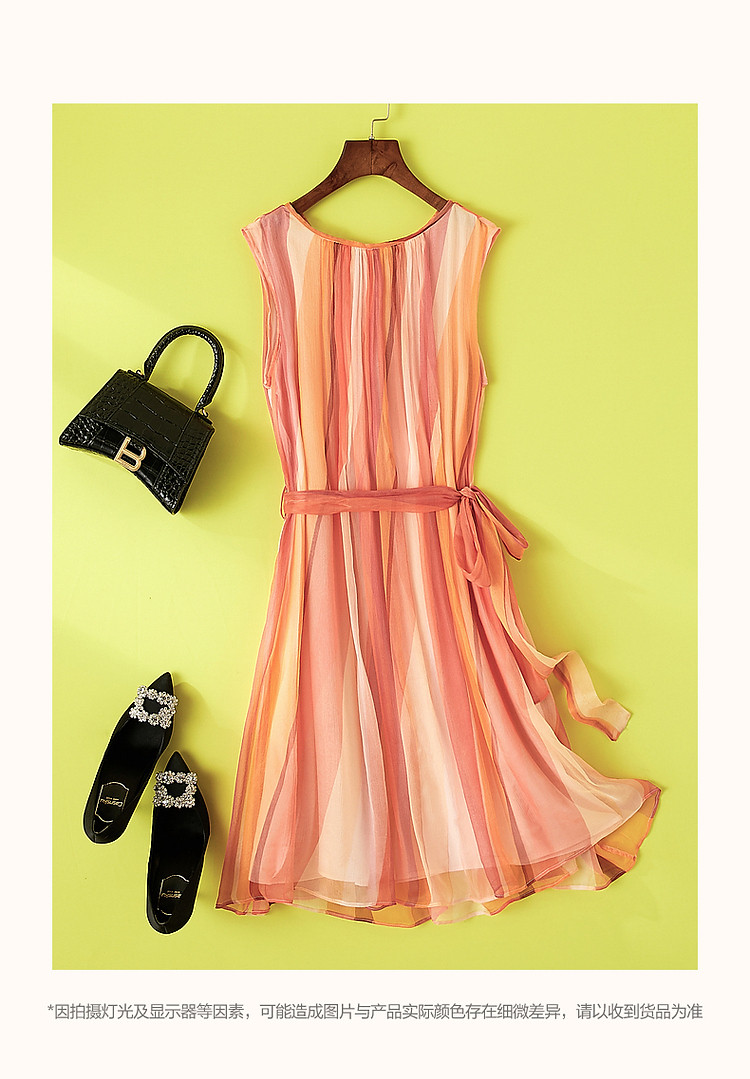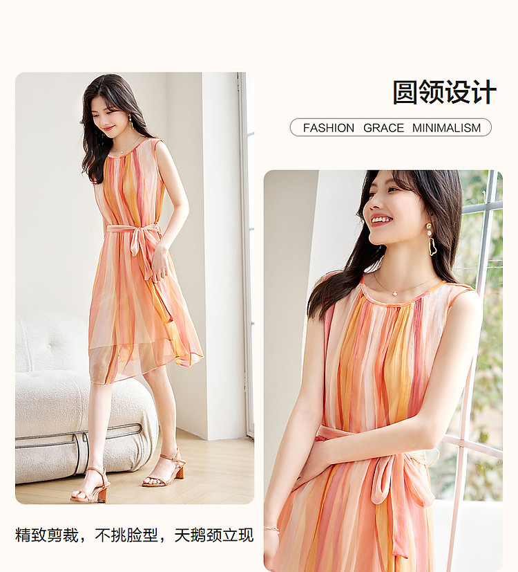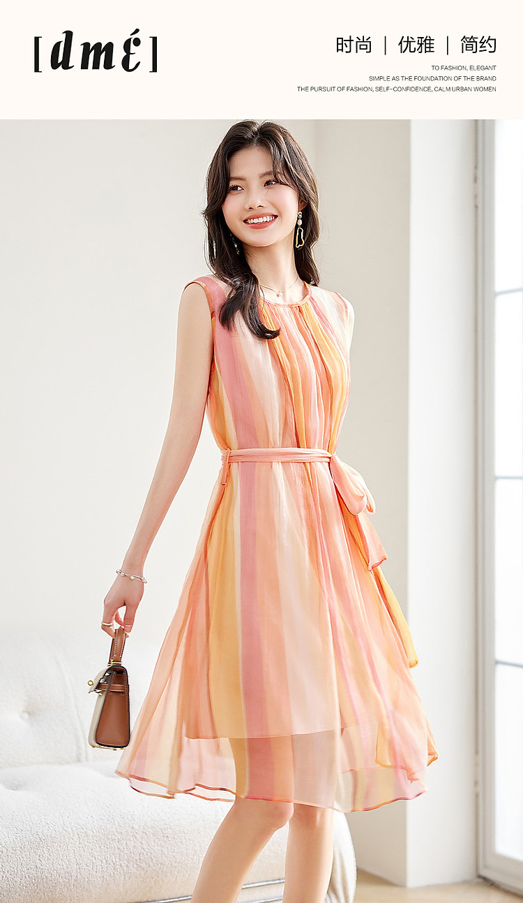 【温柔甜美日常】夏圆领桑蚕丝无袖系带a字无腰线连衣裙 583233