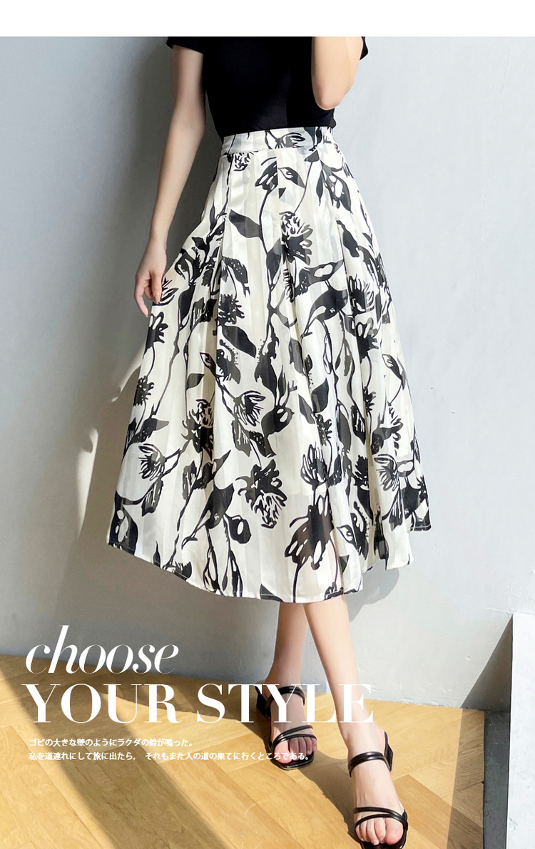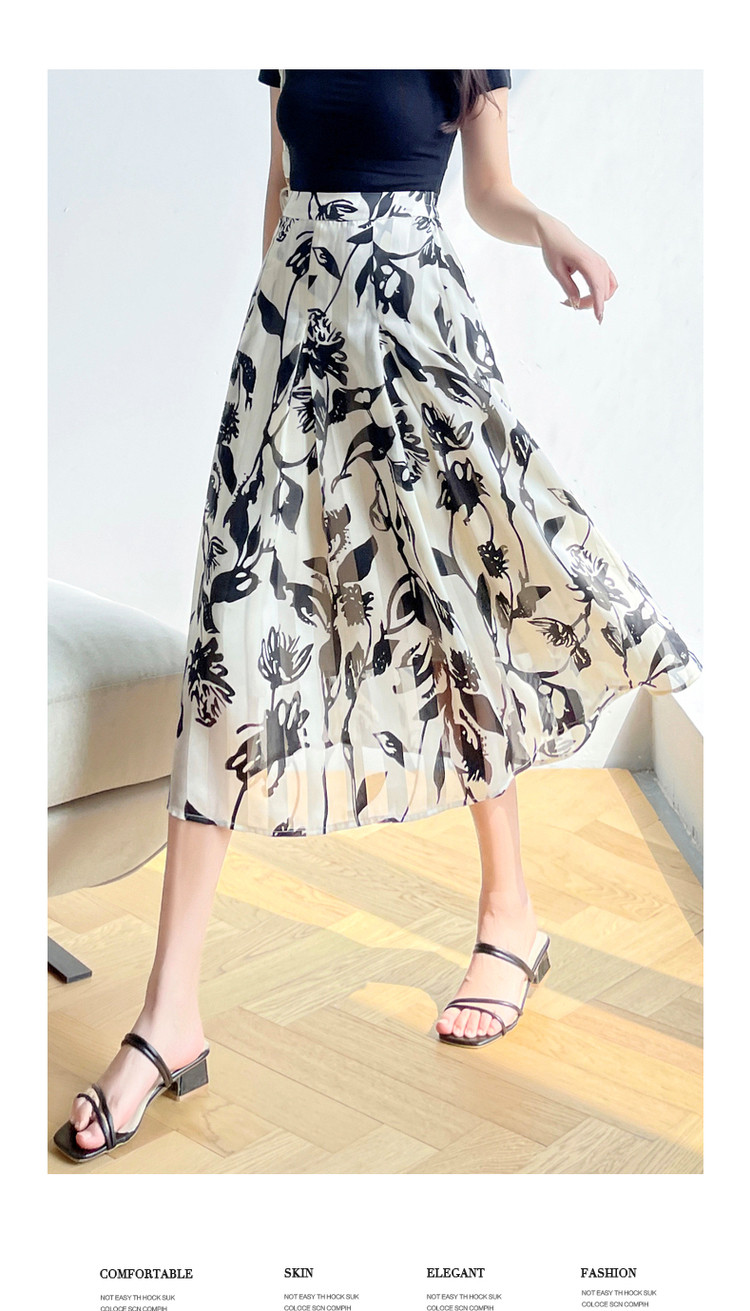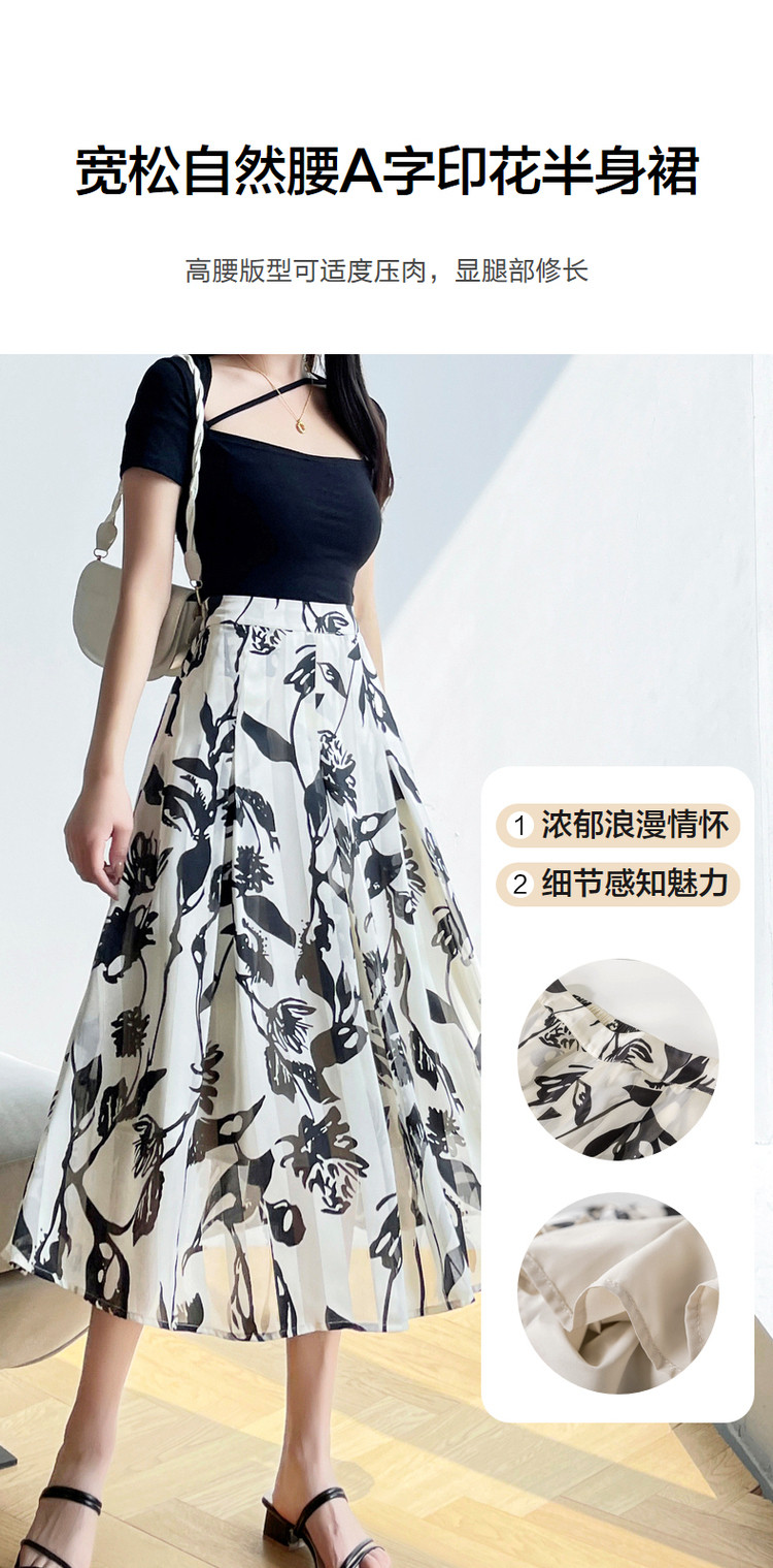 商品名称:【文艺花藤印花半裙】夏季中腰宽松伞裙a字半身裙女长款 121793