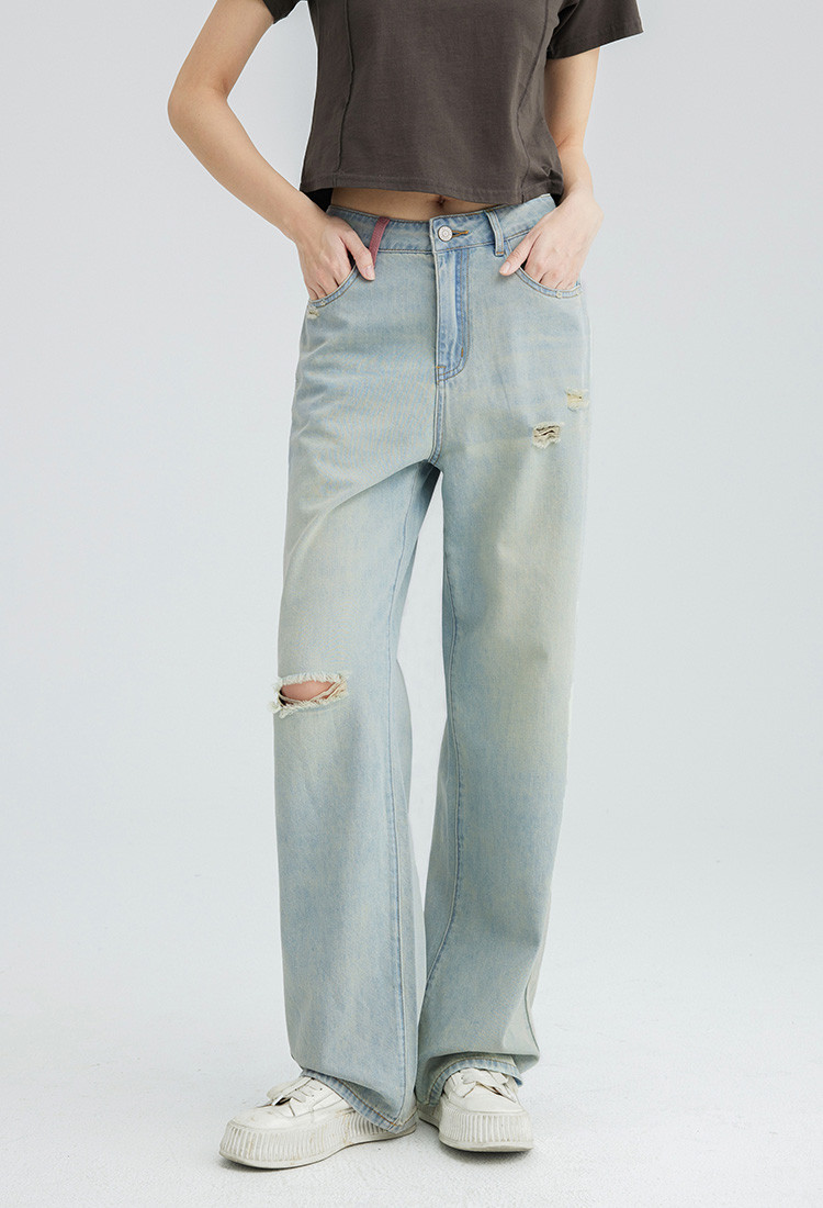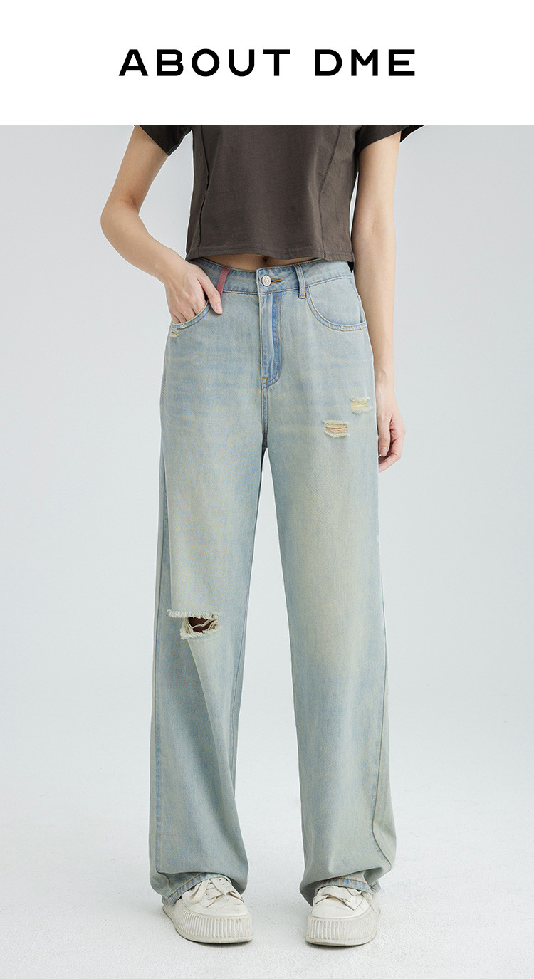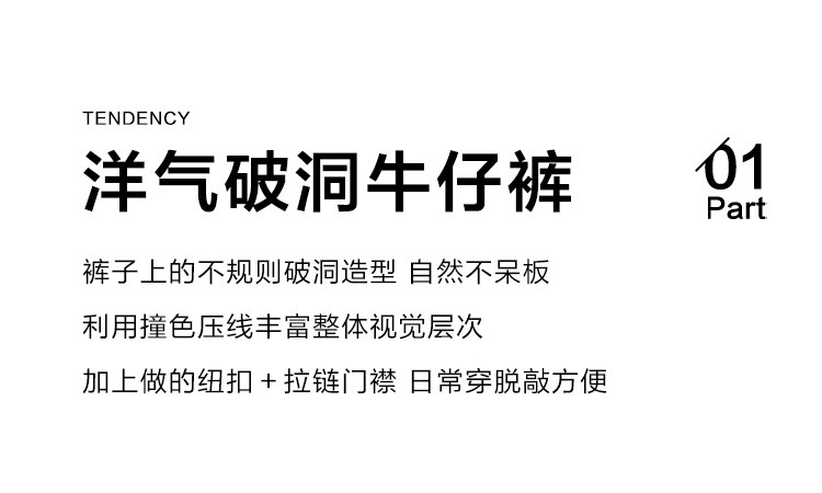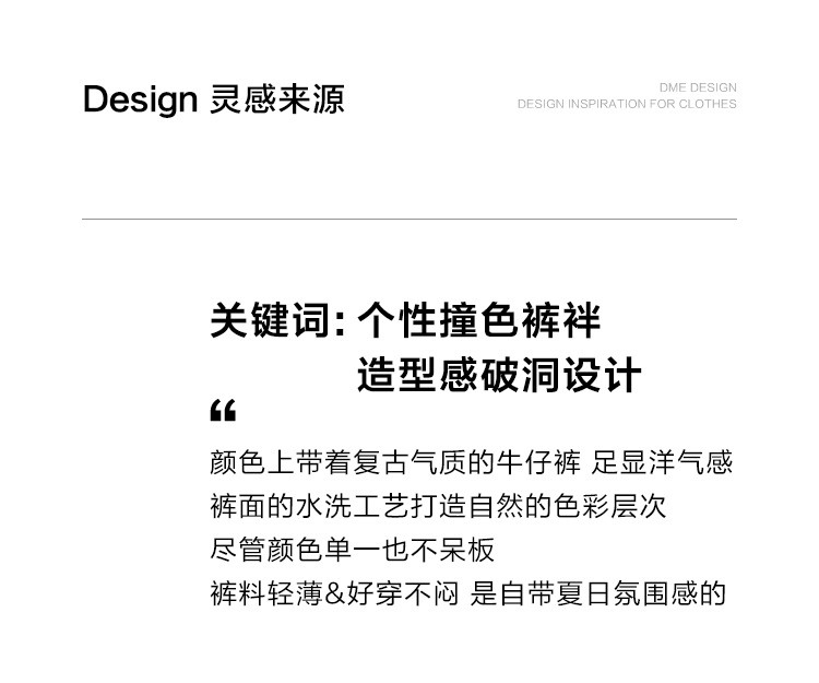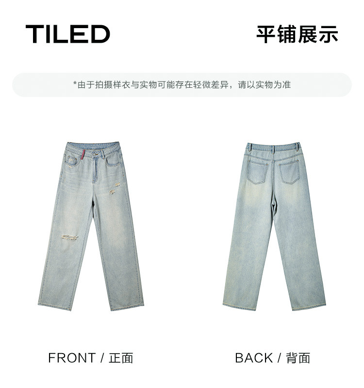商品名称:【个性破洞牛仔裤】水洗工艺个性撞色裤袢造型感牛仔裤 994434