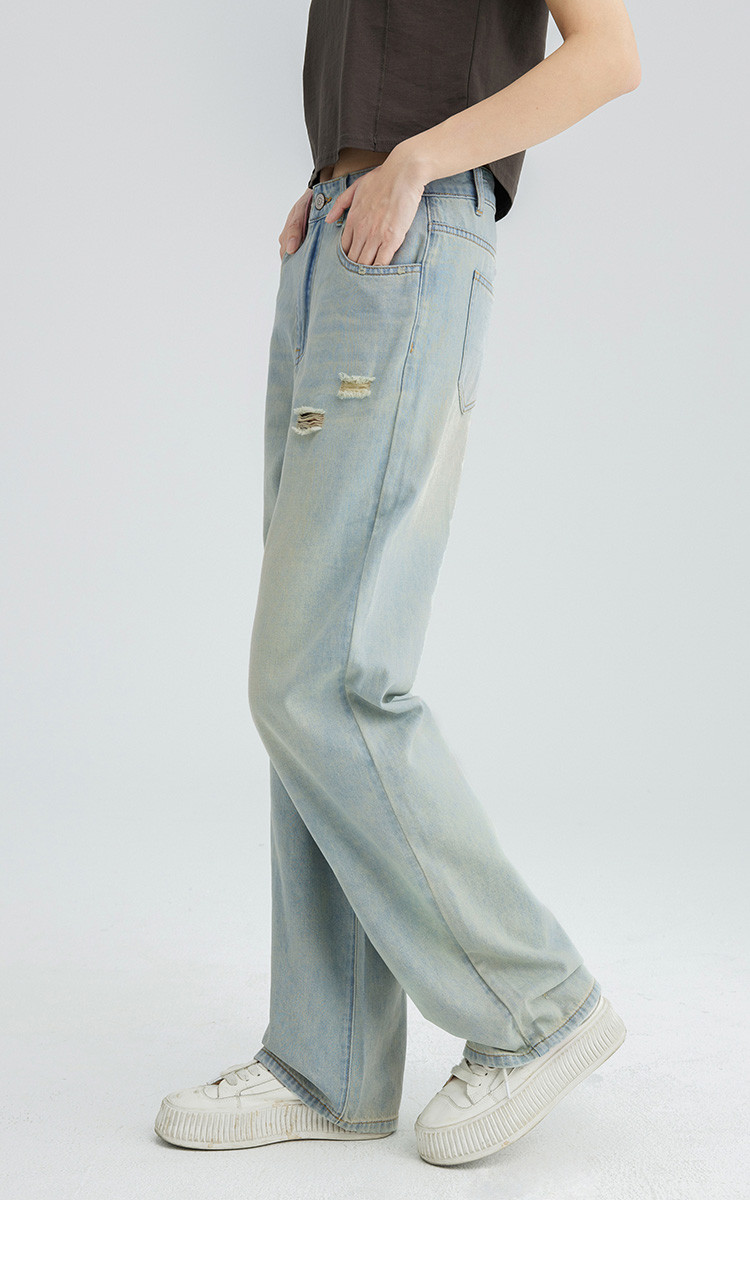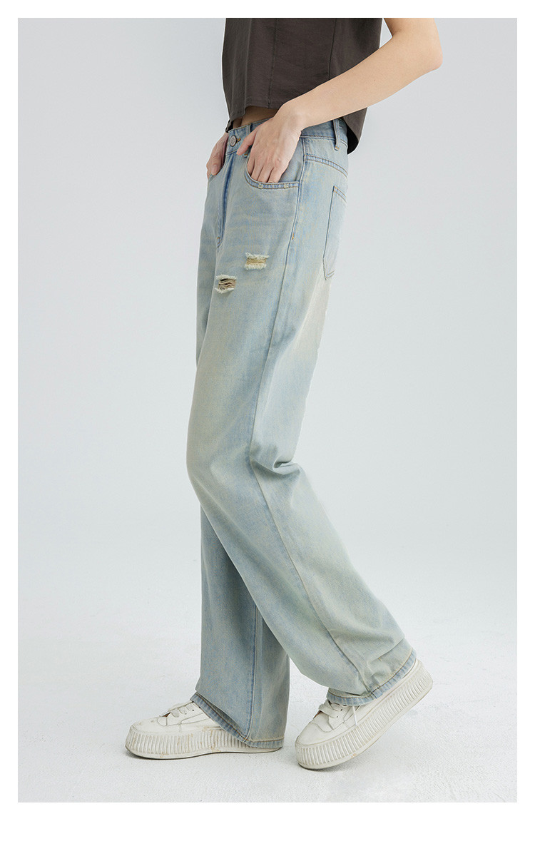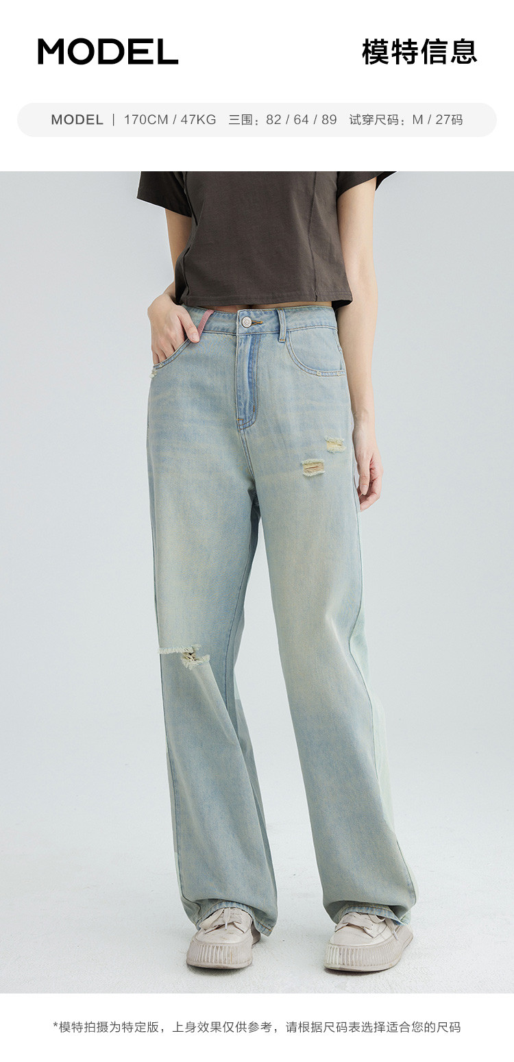 商品名称:【个性破洞牛仔裤】水洗工艺个性撞色裤袢造型感牛仔裤 994434