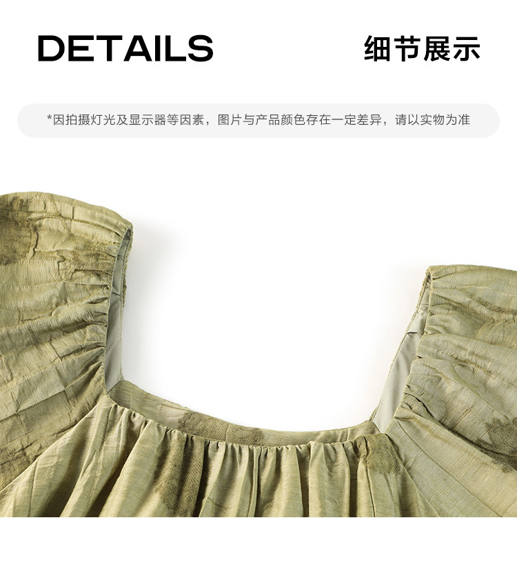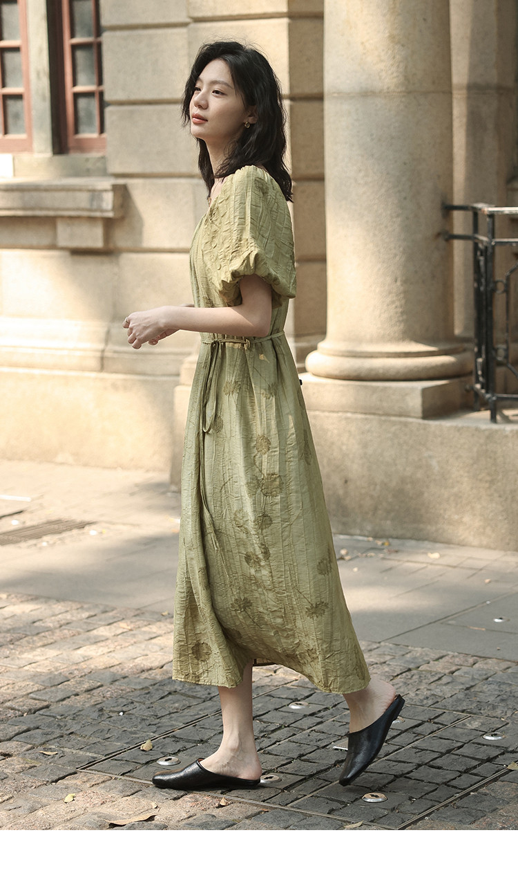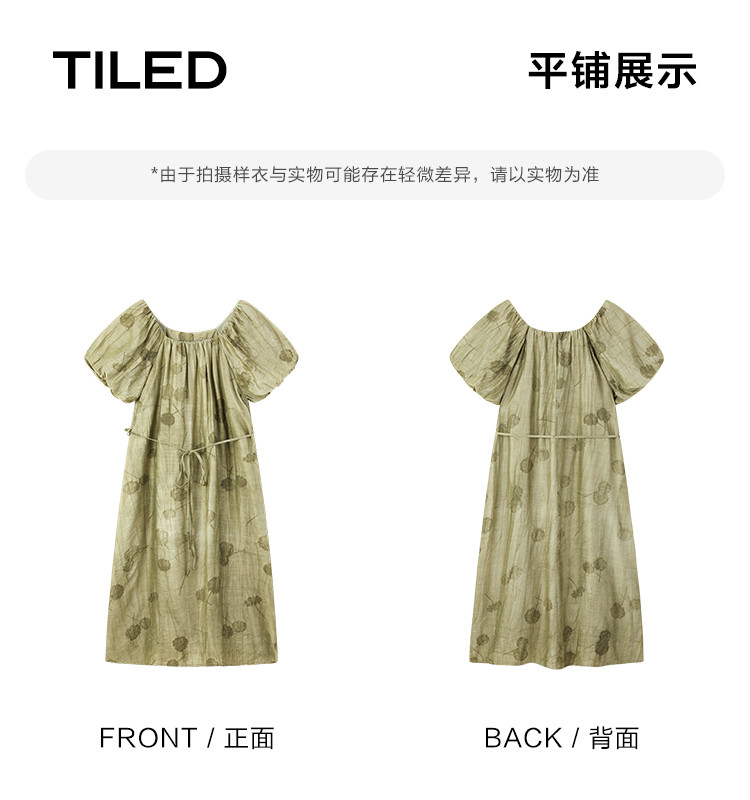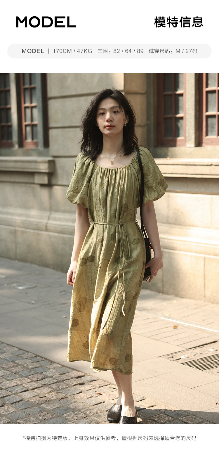 商品名称:【复古方领印花连衣裙】202灯笼袖可卸腰带中长款连衣裙 120706
