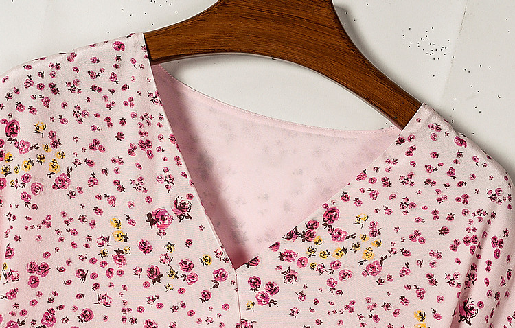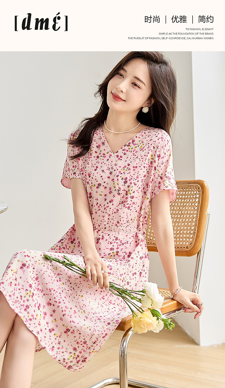 商品名称:【都市佳人系列】夏奢享桑蚕丝碎花a字浪漫连衣裙女 005505