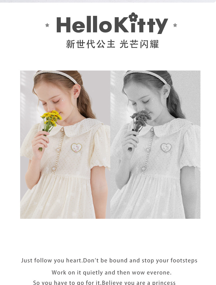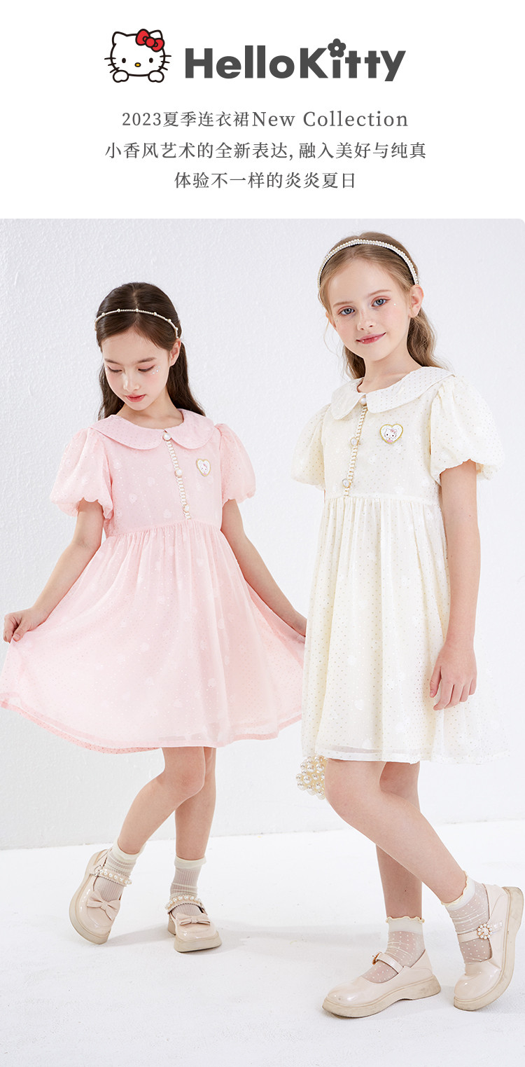 凯蒂猫女童连衣裙儿童夏季公主裙洋气夏装新款中大童网纱裙公主裙 176321